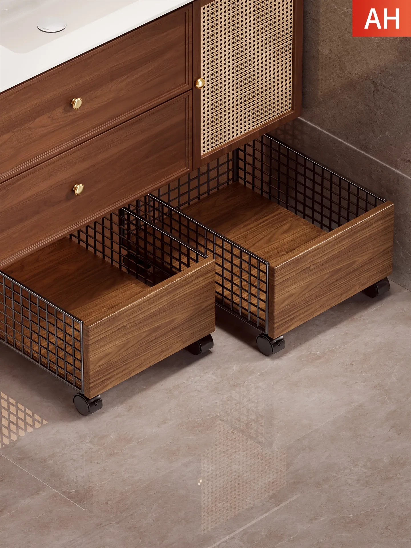 Bathroom Cabinet Under-Sink Storage Shelf with Laundry Basket - Portable Organizing Bin for Home, Ideal for Laundry Room and Bathroom Sink, Perfect for Storing Detergents and Essentials