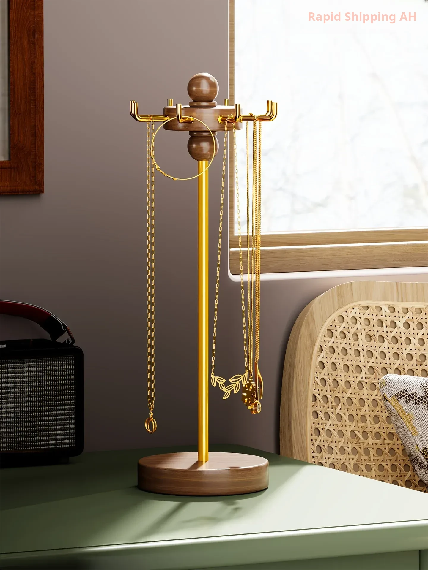 Rotating Necklace Display Stand - Wooden Desktop Bracelet Holder for Jewelry, Crafts, and Gold Accessories - Stylish and Functional Organizer for Your Treasures