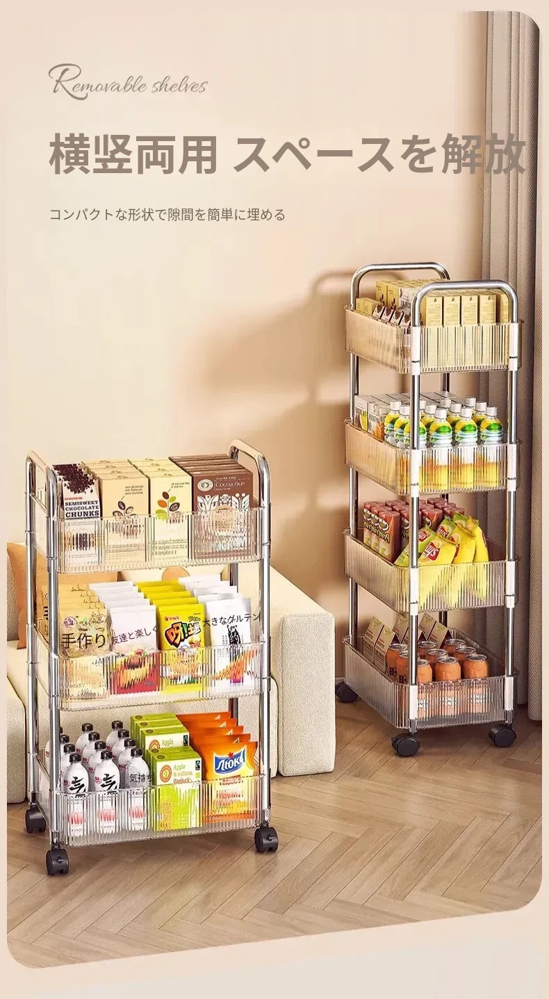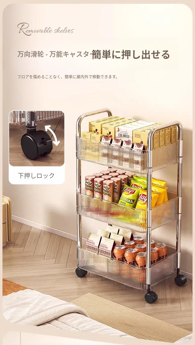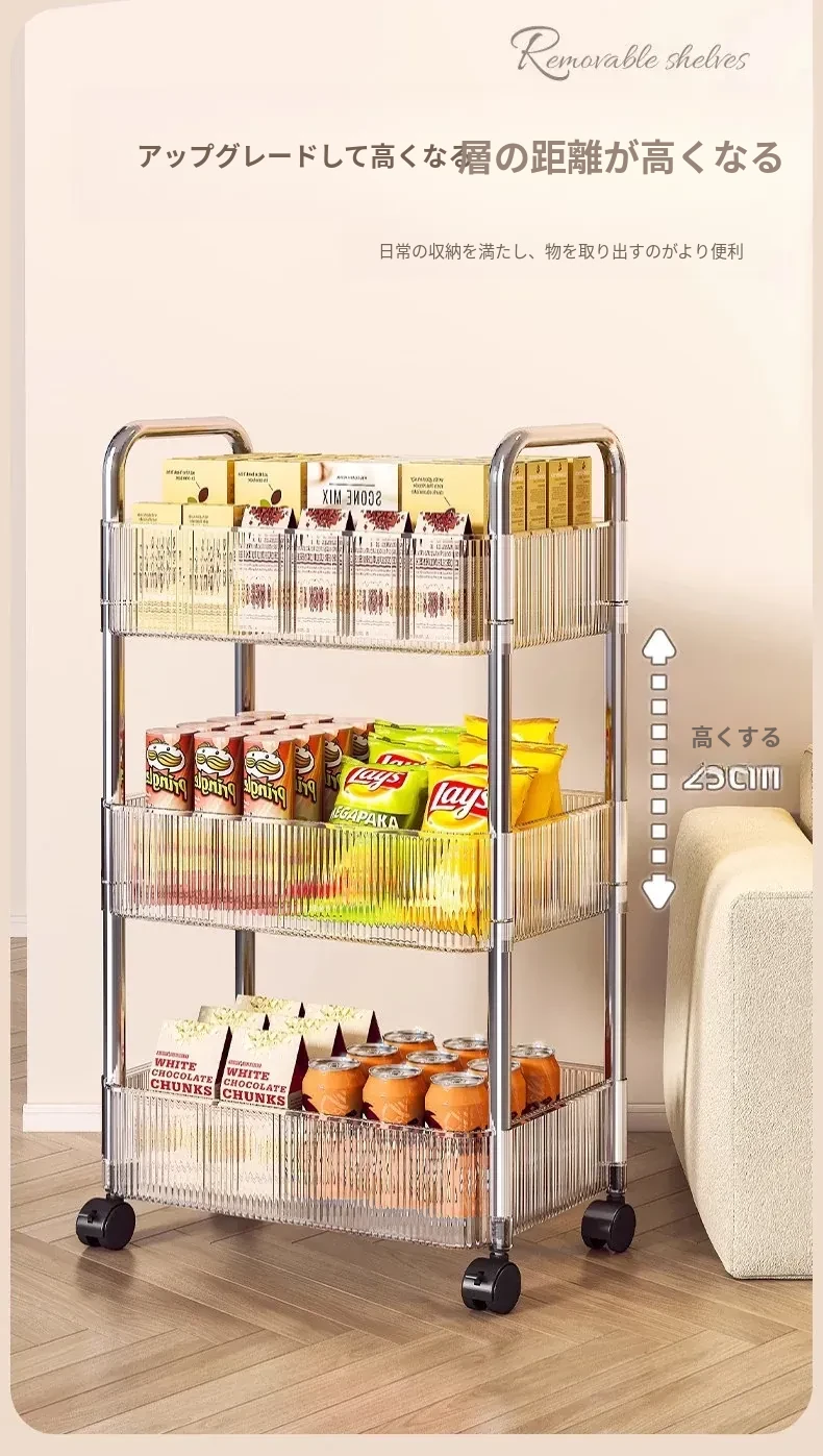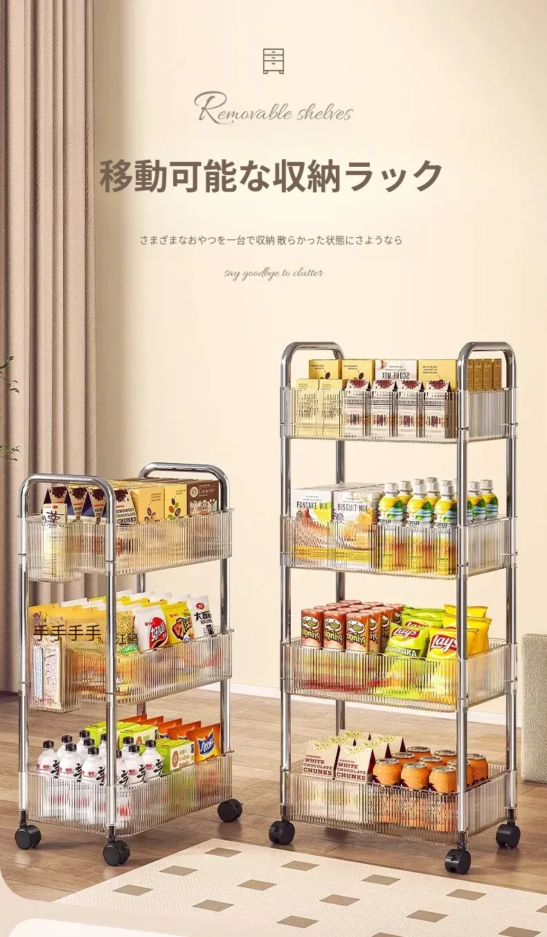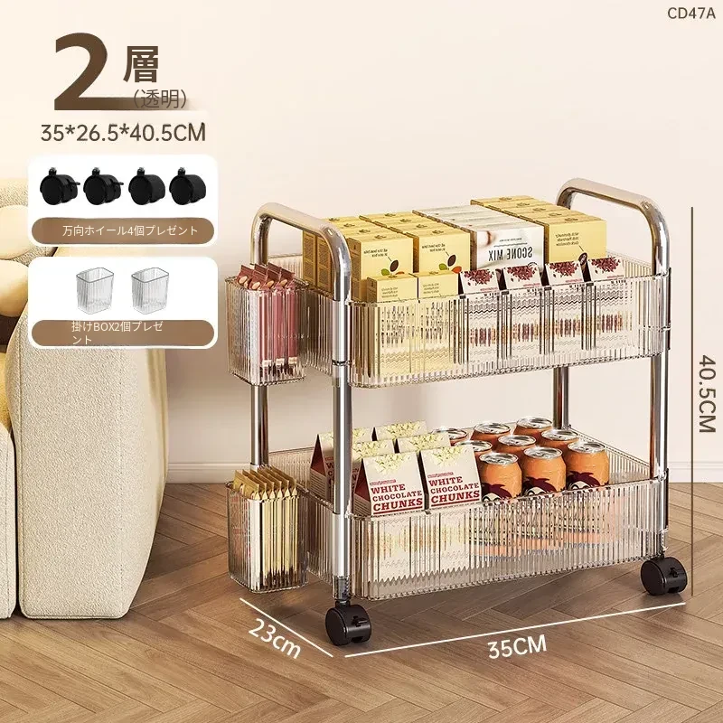 おしゃれなスナックカート!アクリル製の可動式収納ラック - 寮や寝室、リビングに最適な多層化粧品収納棚!使いやすくて、インテリアにもぴったり!