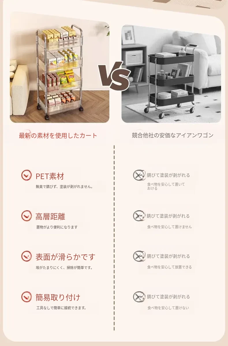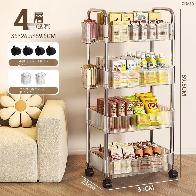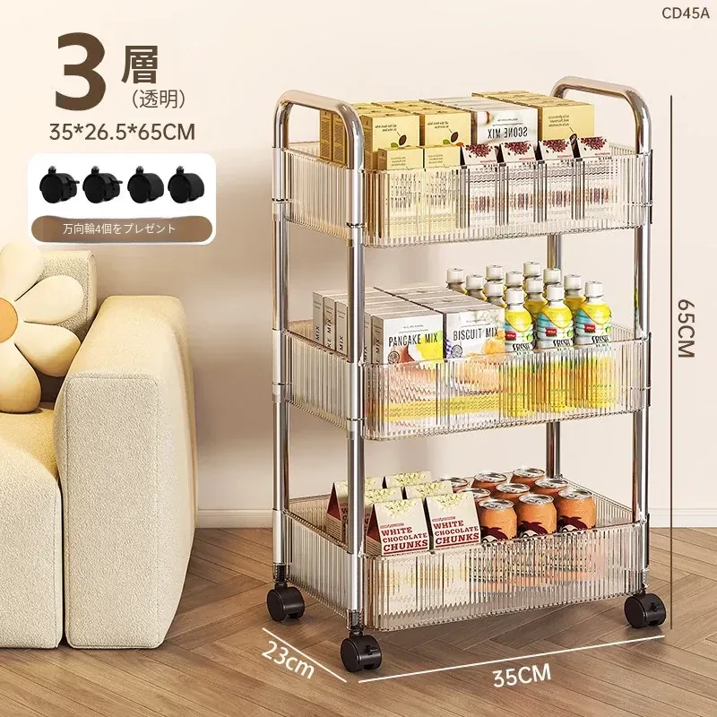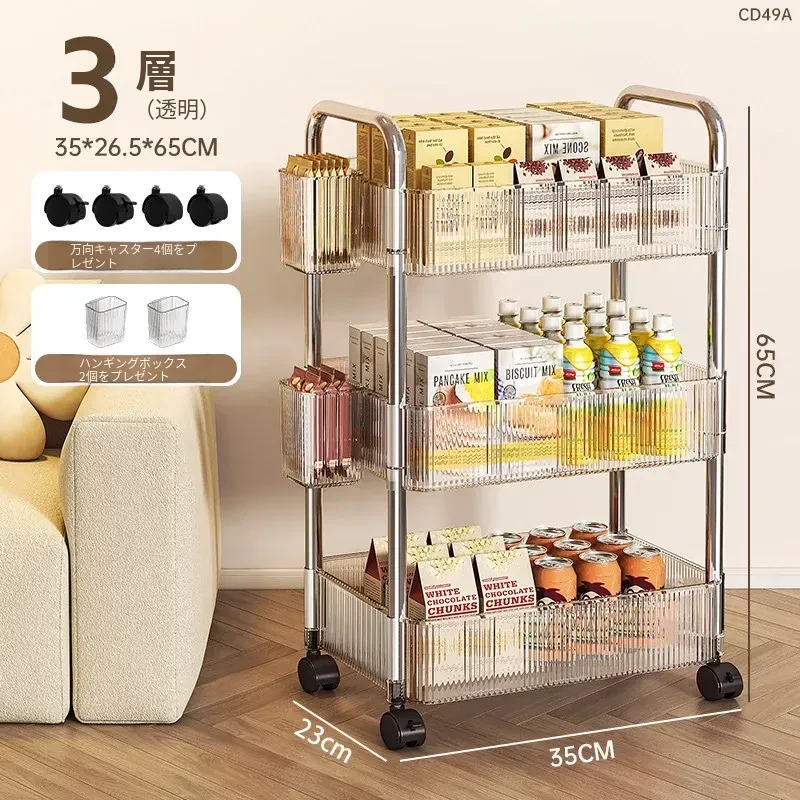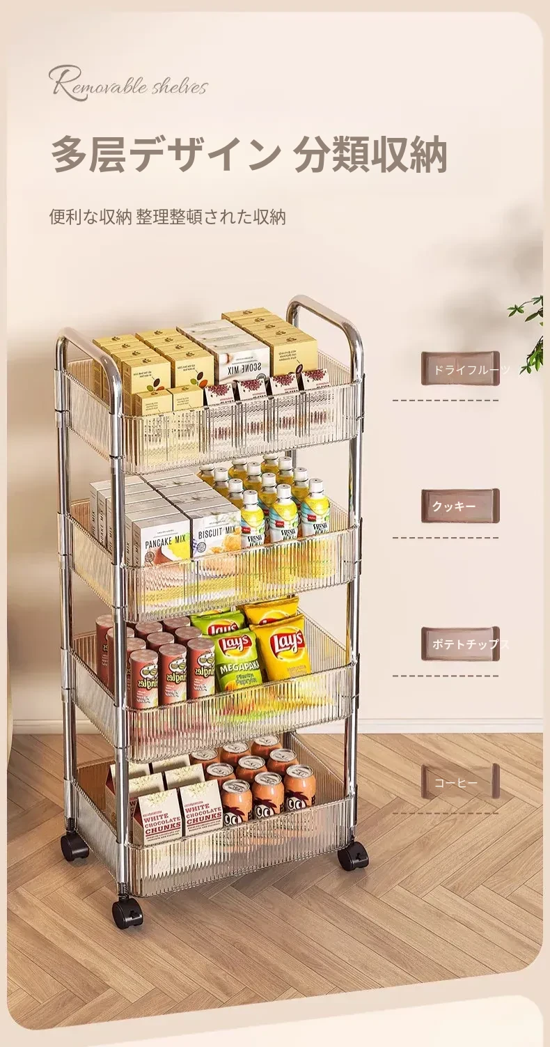 おしゃれなスナックカート!アクリル製の可動式収納ラック - 寮や寝室、リビングに最適な多層化粧品収納棚!使いやすくて、インテリアにもぴったり!