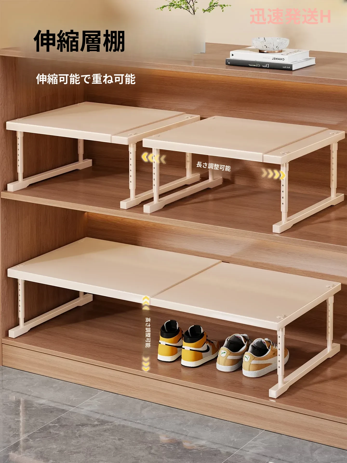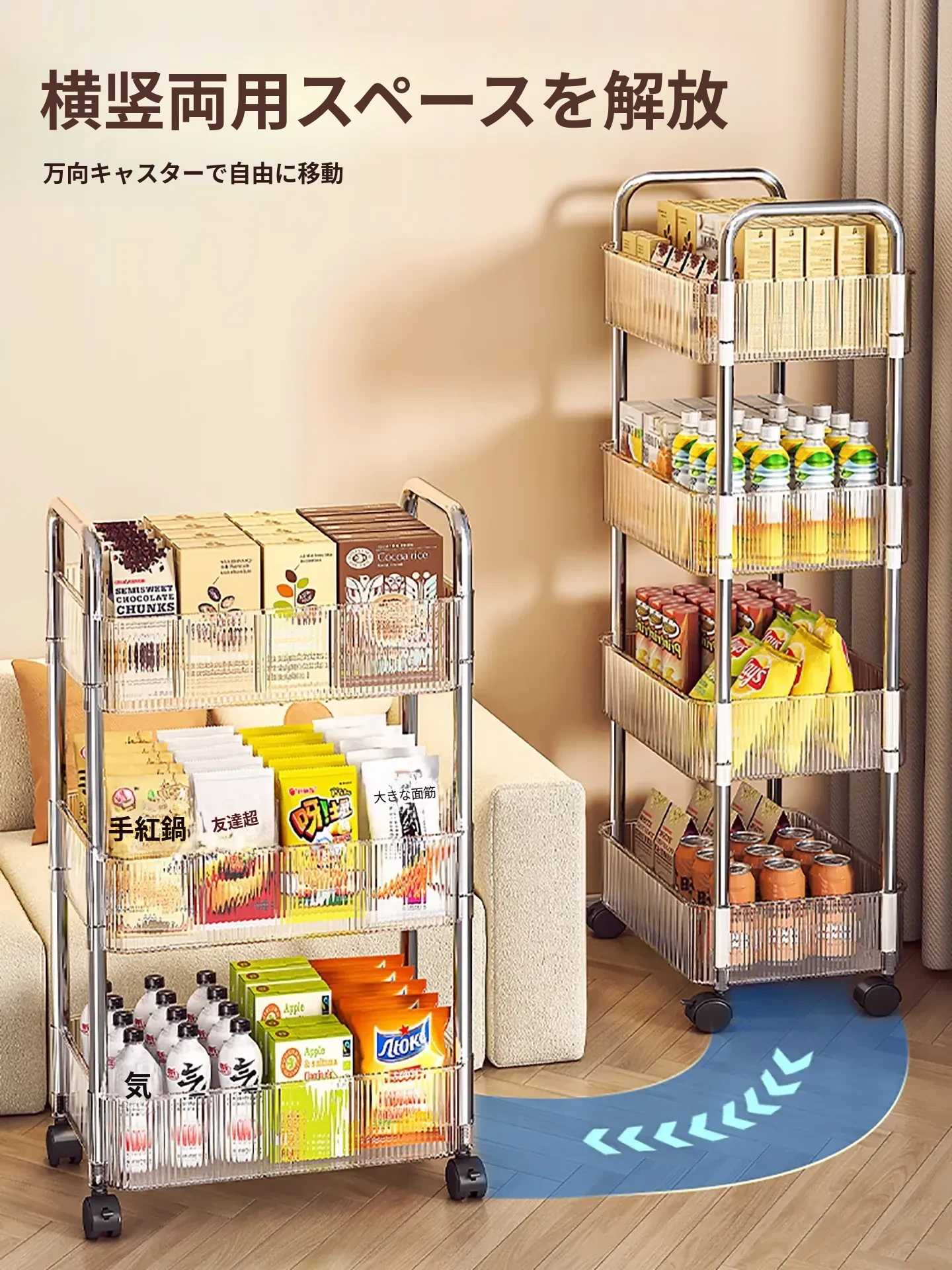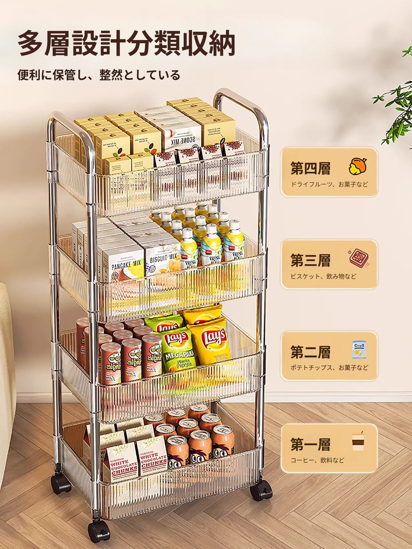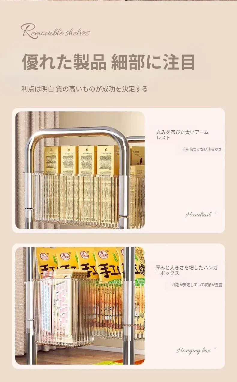 4段【透明】キャスター付き+2つのフックボックス