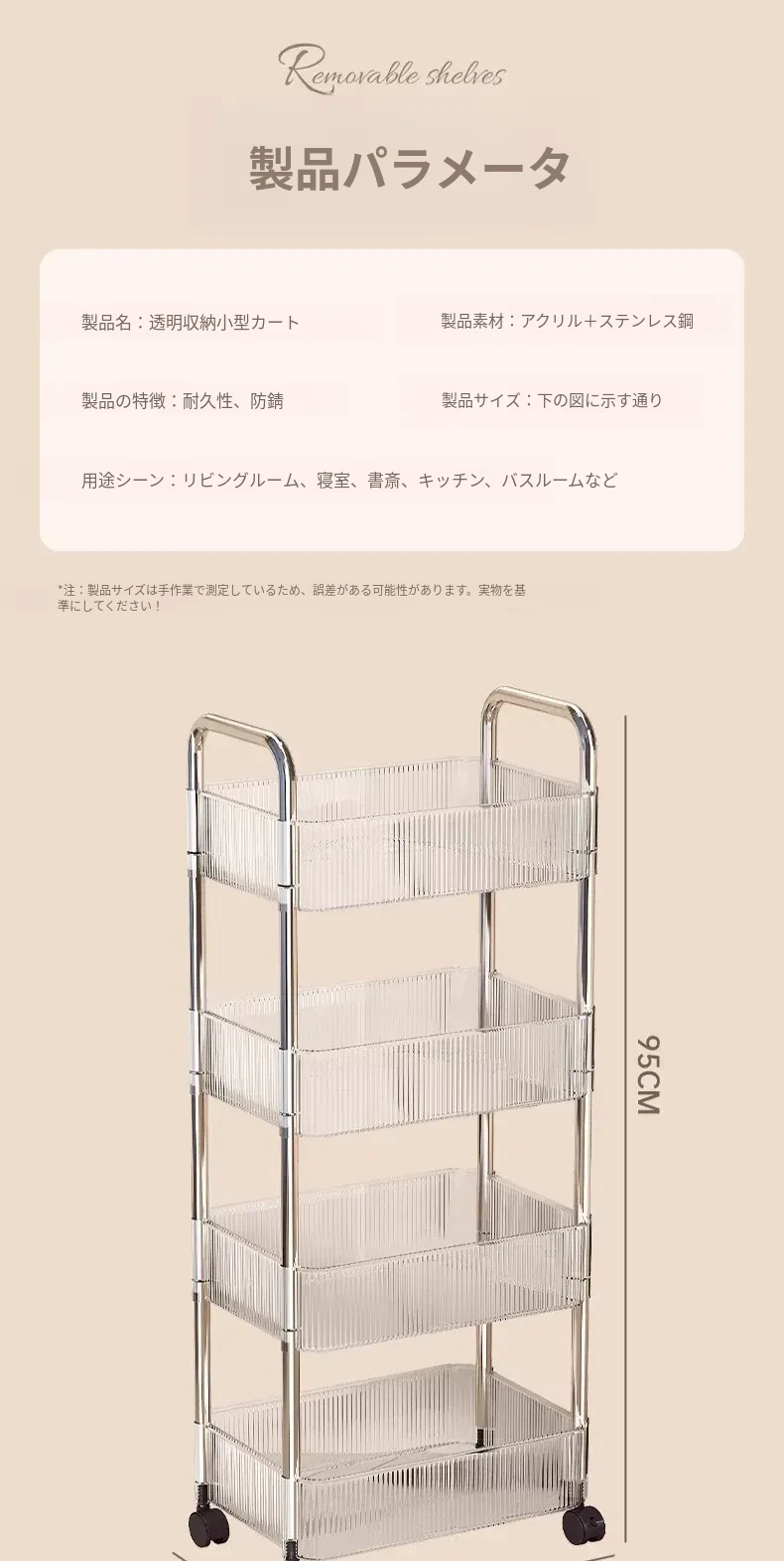 4段【透明】キャスター付き