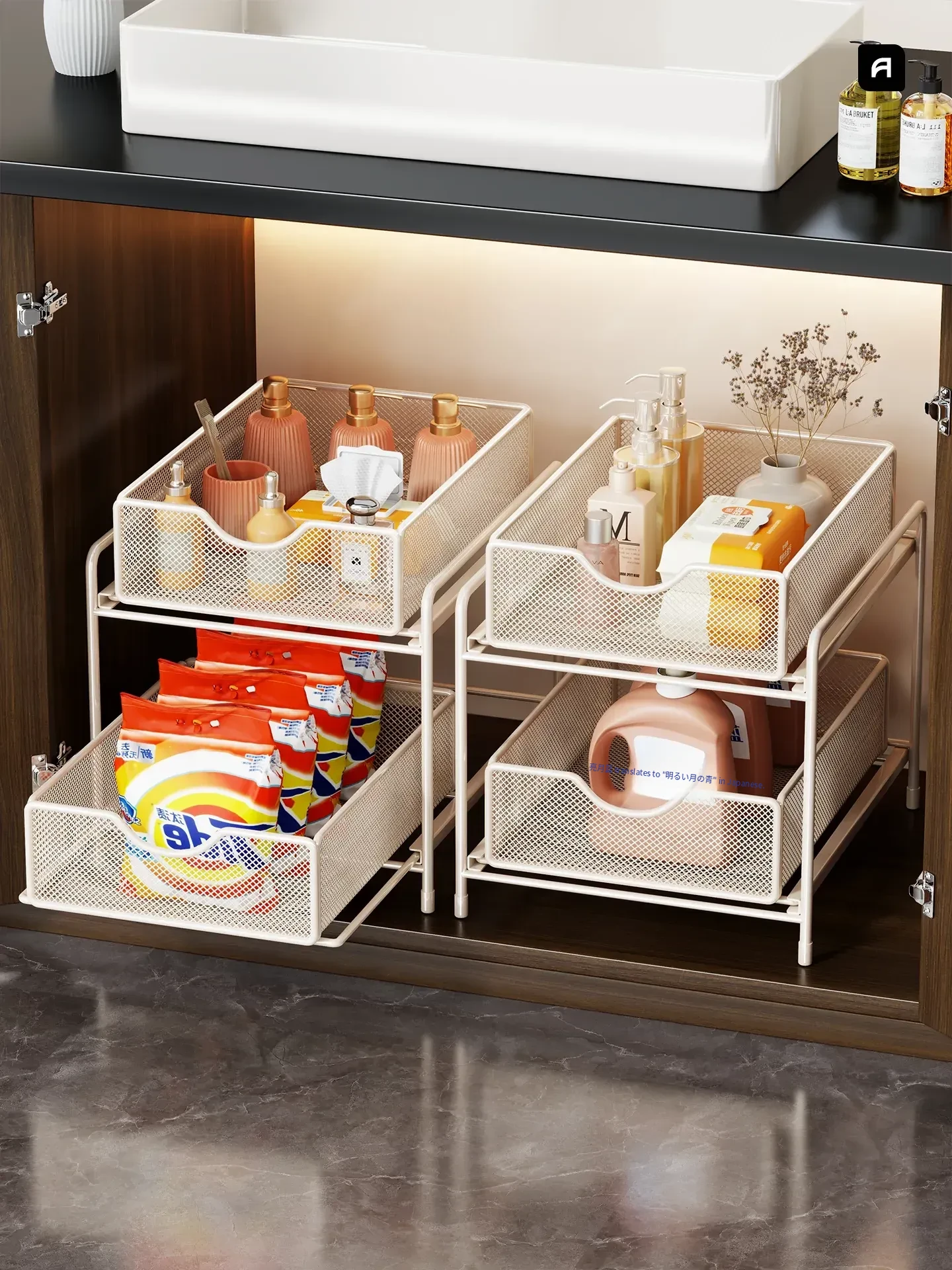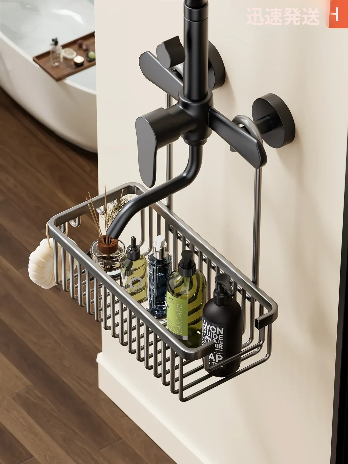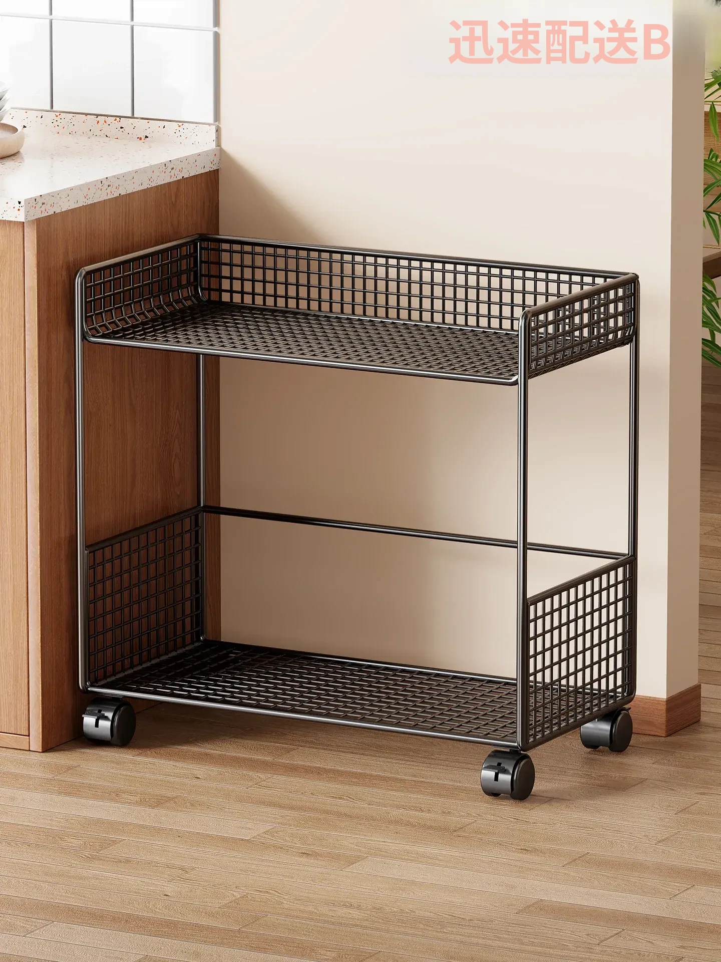 2段【透明】キャスター付き+2つのフックボックス