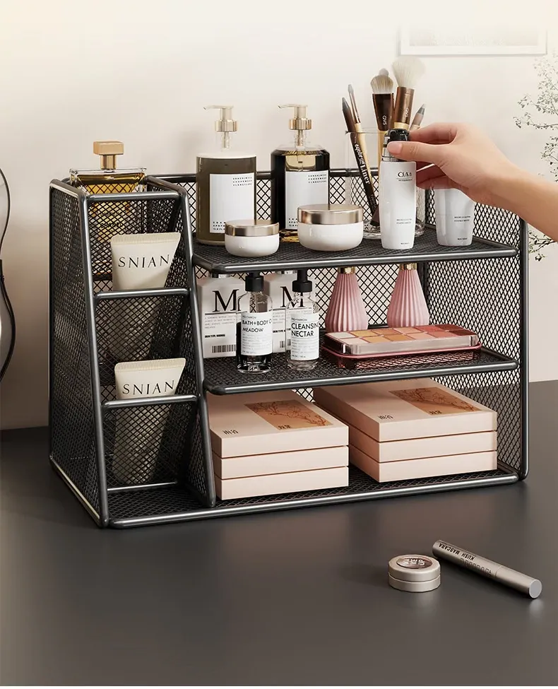 メイクアップ収納ボックス - リップやスキンケアをすっきり整理!学生寮やドレッサーにぴったりの便利な収納ケース。おしゃれで機能的、あなたのビューティータイムをもっと楽しく!