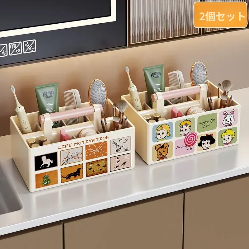 デスク収納ボックス メイク道具用仕切り収納ケース 家庭用雑貨・お菓子収納バスケット 寮・キッチン整理ボックス - 整理整頓でスッキリ!おしゃれなデザインでインテリアにも最適!