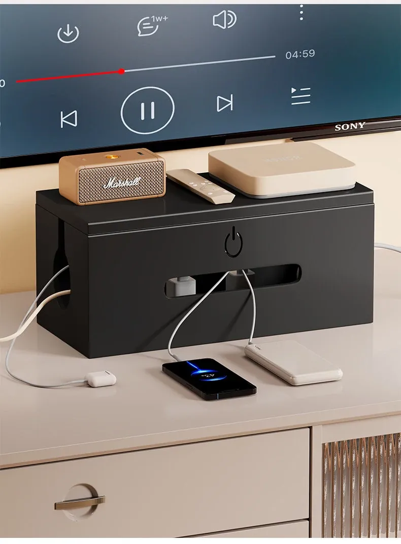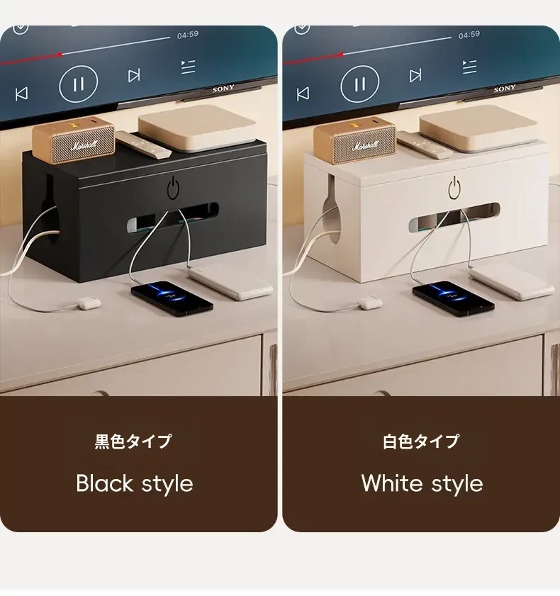デスク上の電源をすっきり整理!便利なコード収納ボックス 充電器・データケーブルも一緒に整理できる家庭用電源タップ すっきりしたデザインでお部屋を美しく!