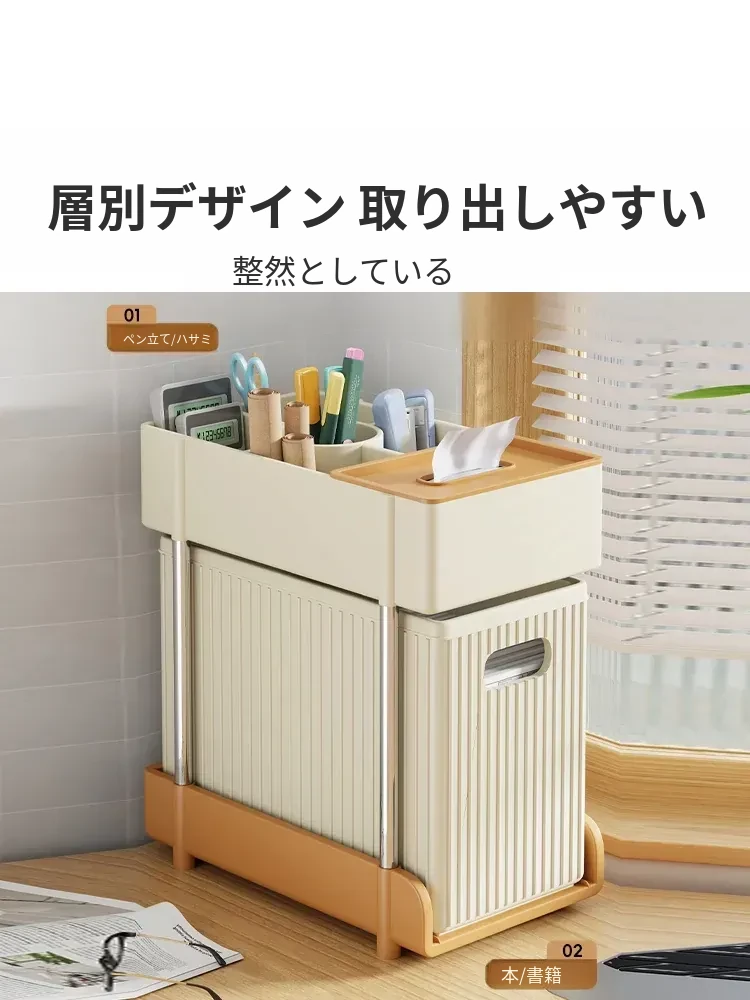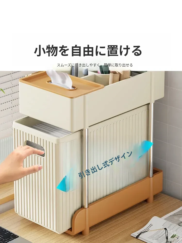 デスク上の整理整頓に最適!書籍や書類をスマートに収納できるデスクオーガナイザー。オフィスやホームオフィスにぴったりな収納ボックスで、スペースを有効活用し、作業効率をアップさせましょう!