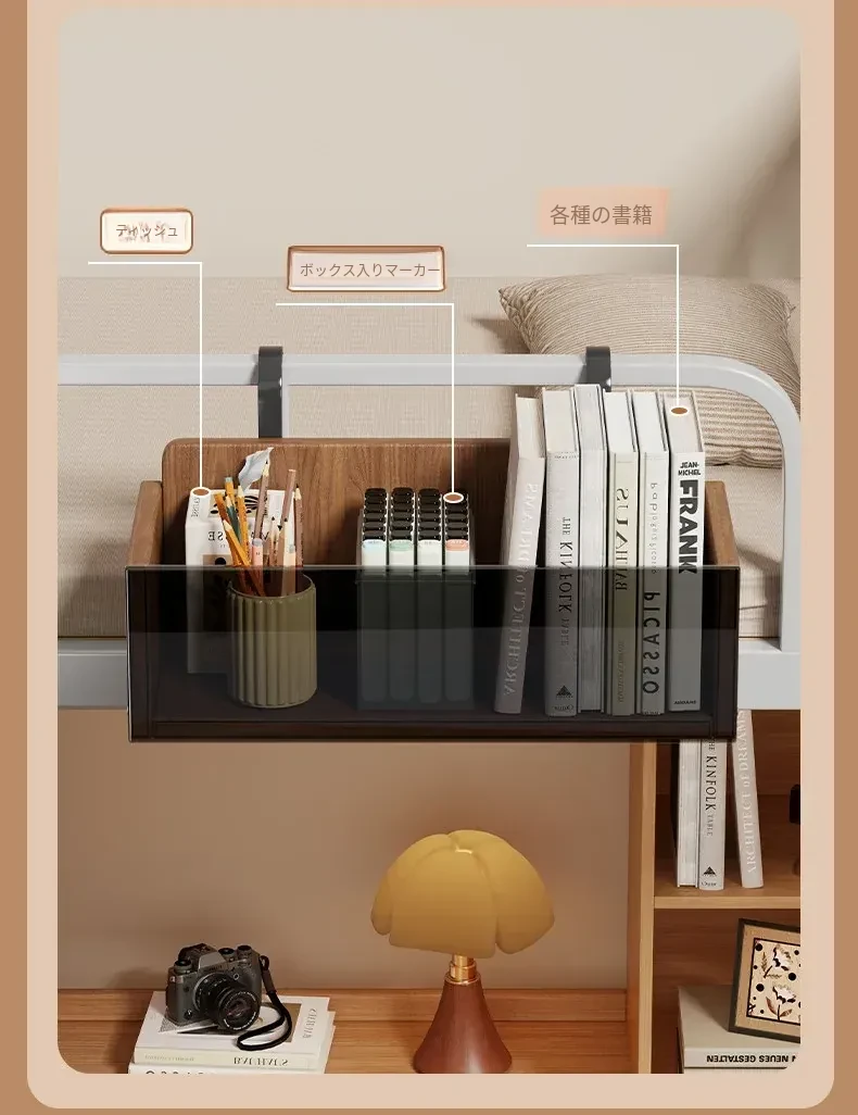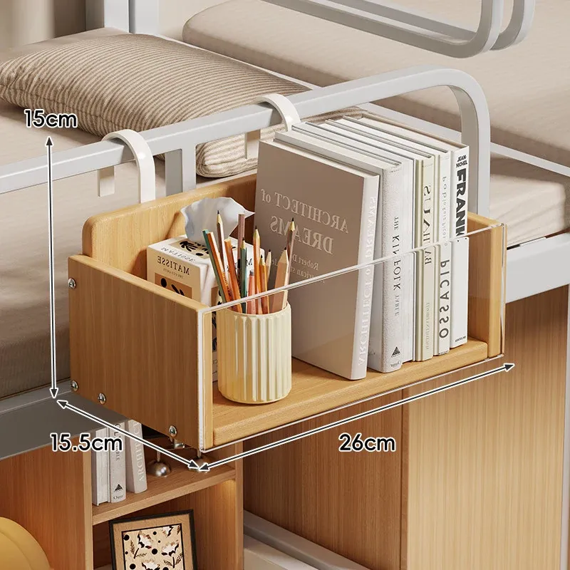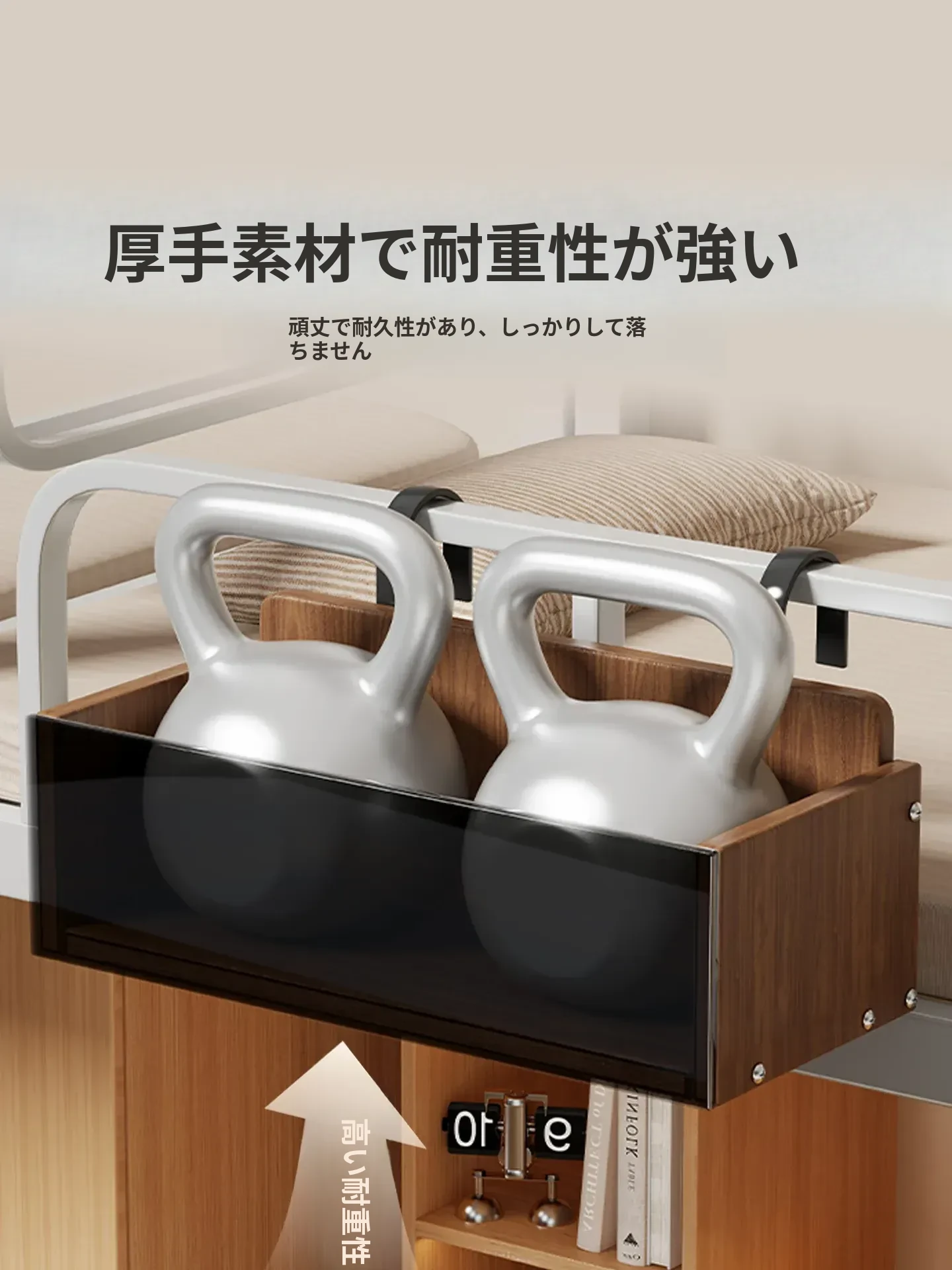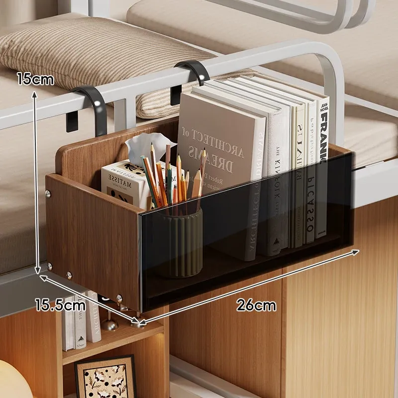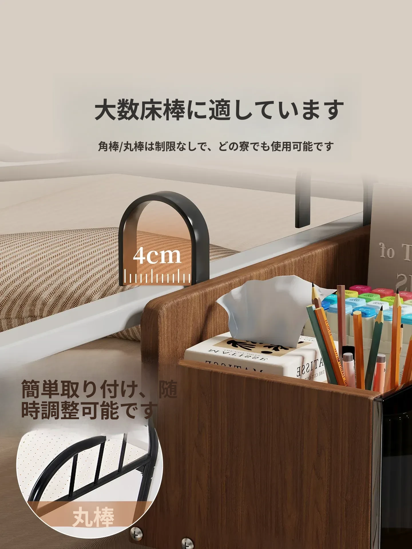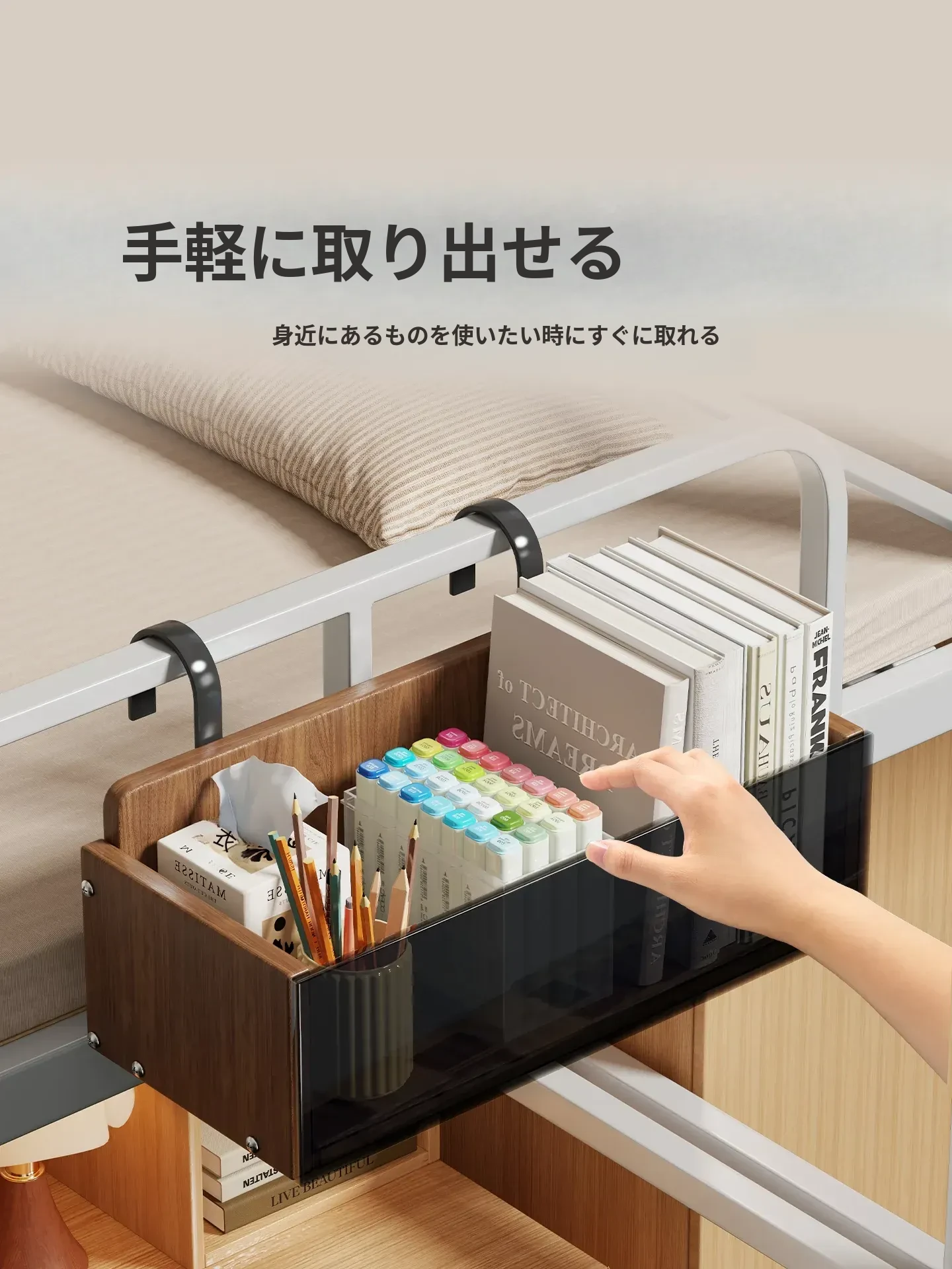 学生必見!寮のベッドサイド掛けバスケット - お菓子収納に最適な便利アイテム!上段ベッド用の収納ラックで、寝室をスッキリ整理。快適な学生生活をサポートします!