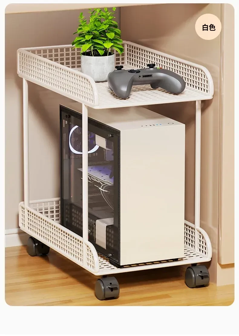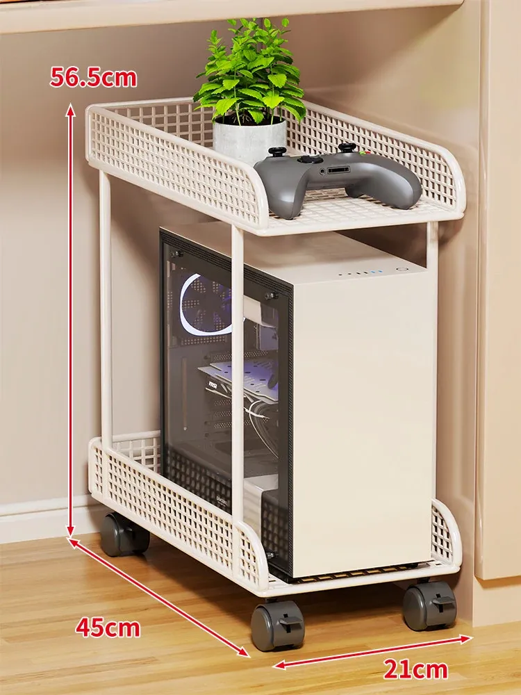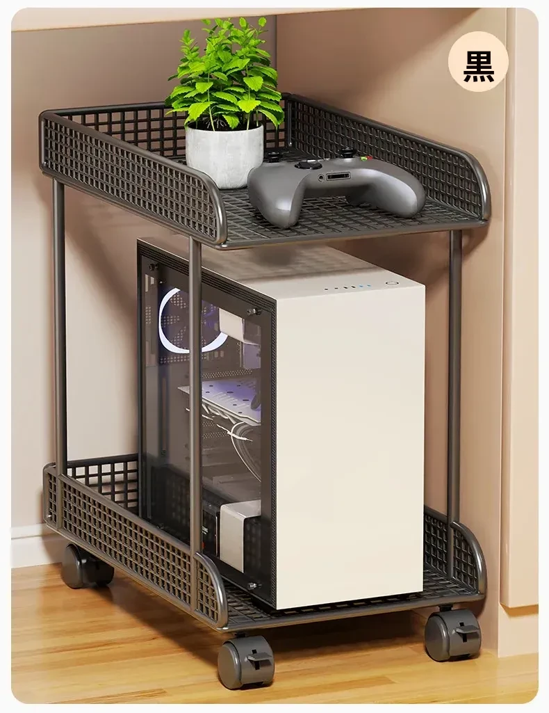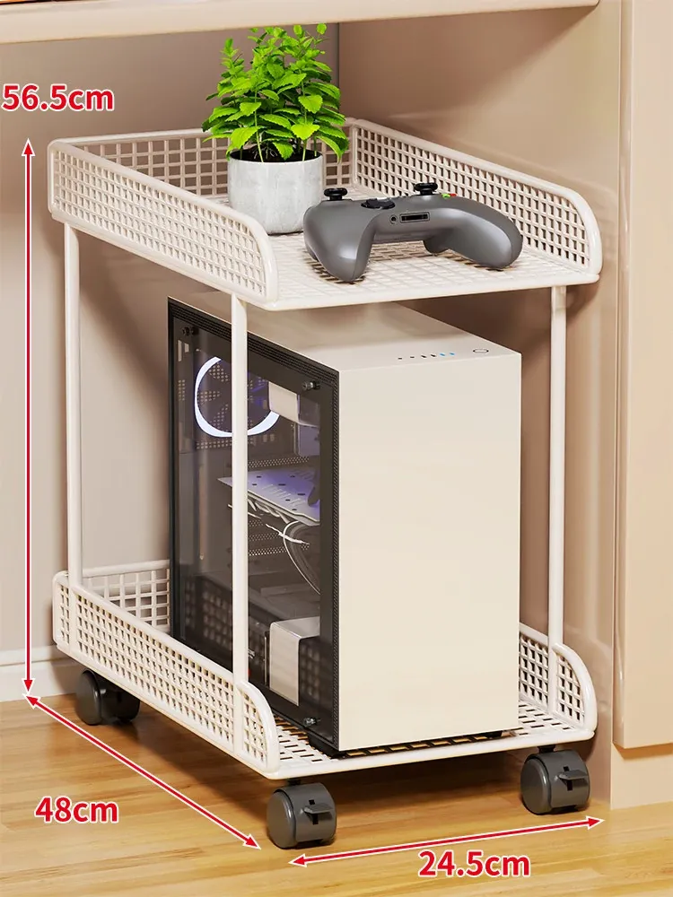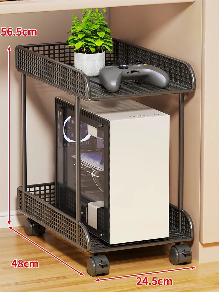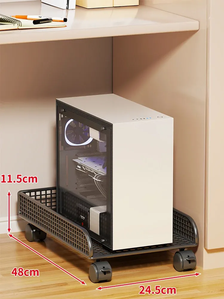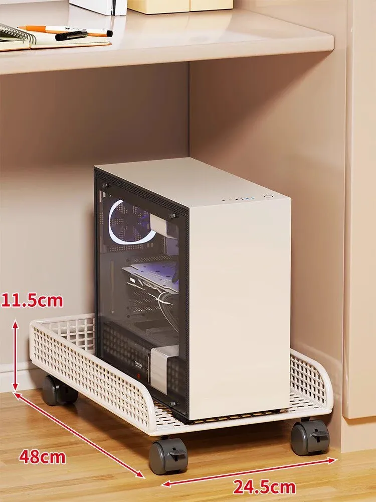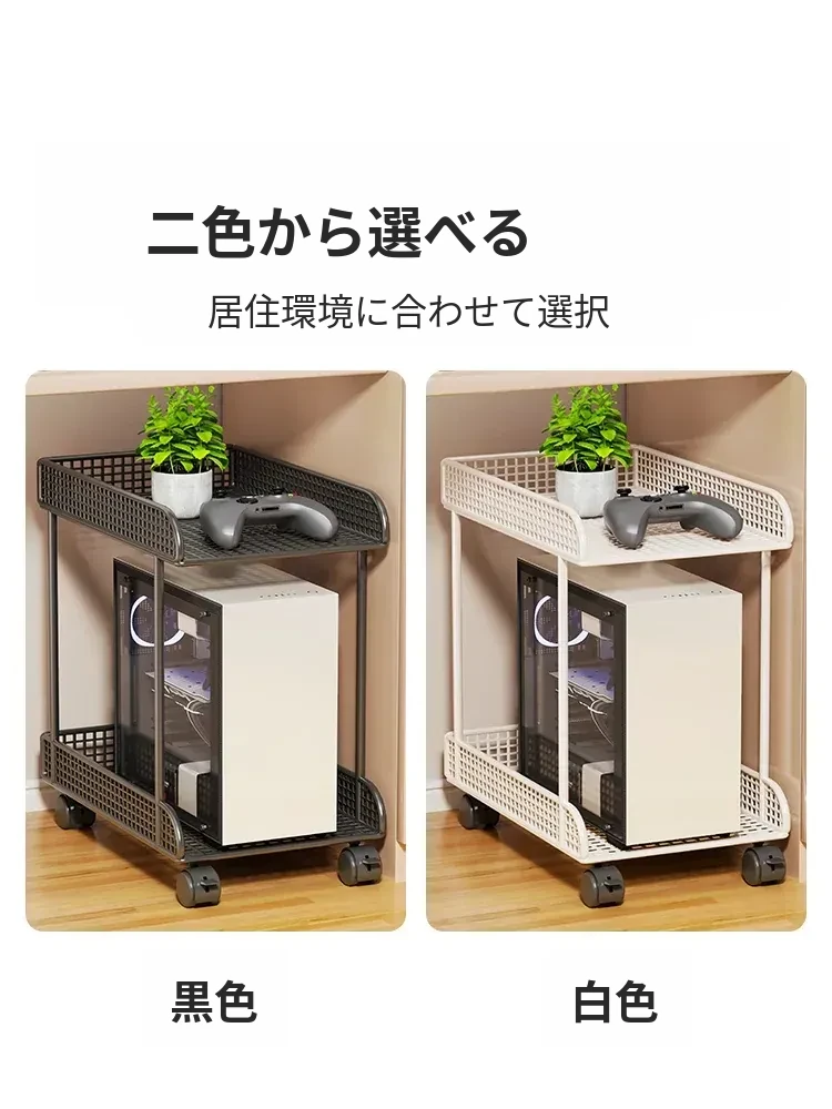 デスクトップPC用二段収納スタンド - 移動式底座で快適なスペースを実現!机下の整理整頓に最適なパソコンケース用トレー。あなたの作業環境をスッキリさせる必需品!