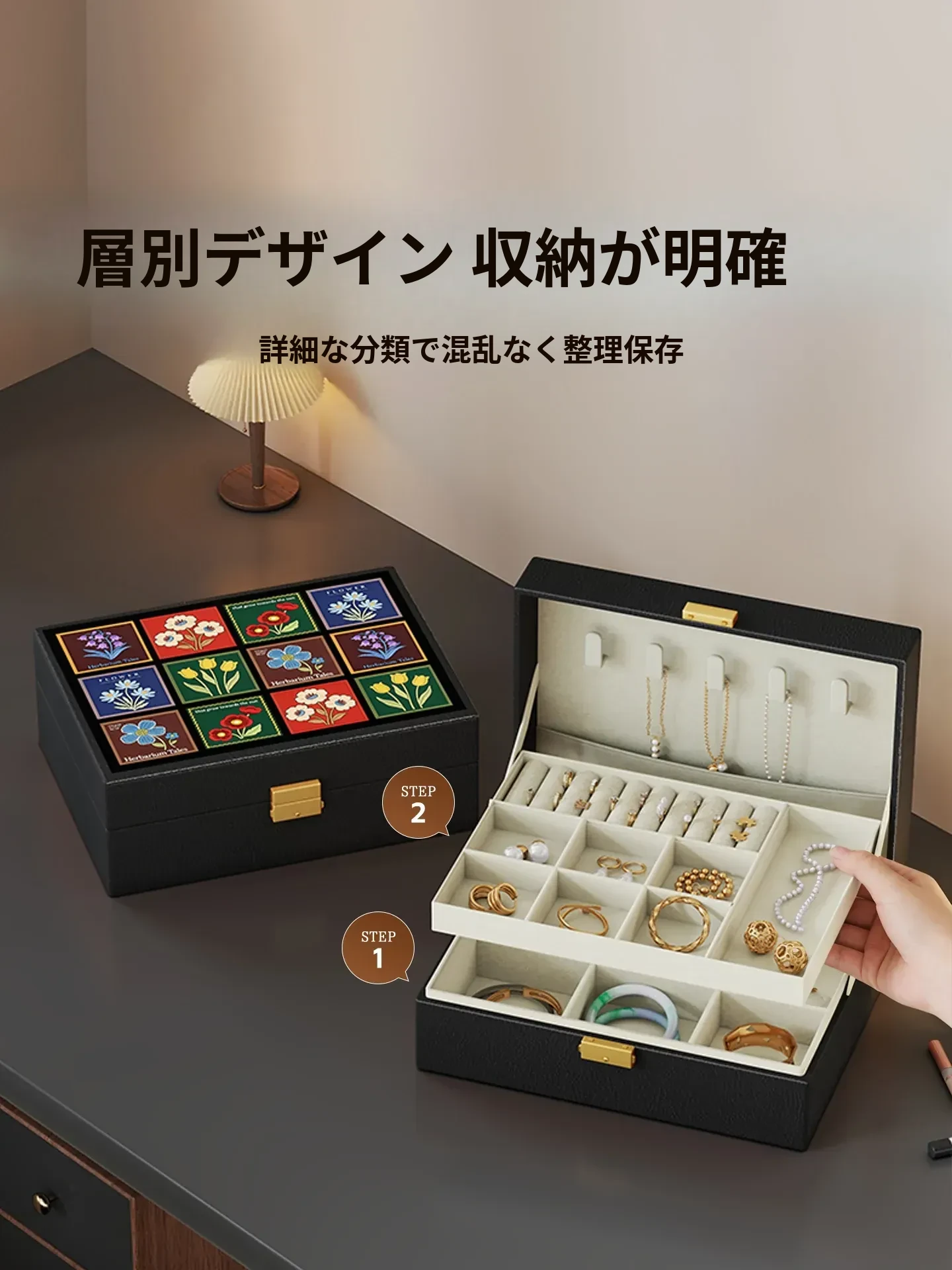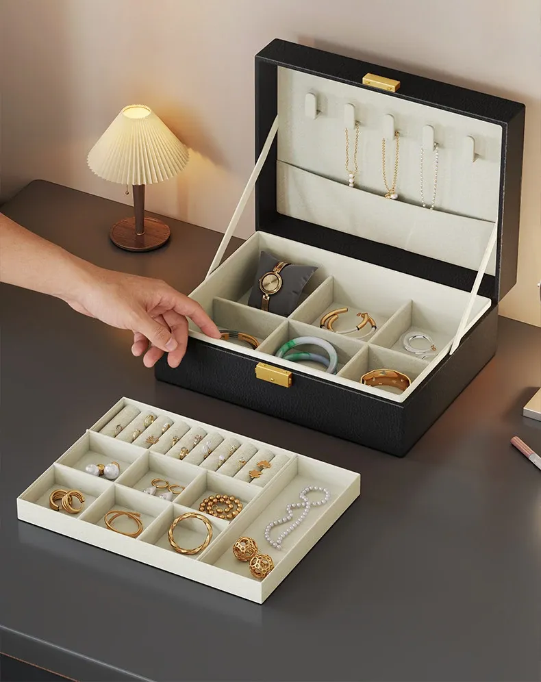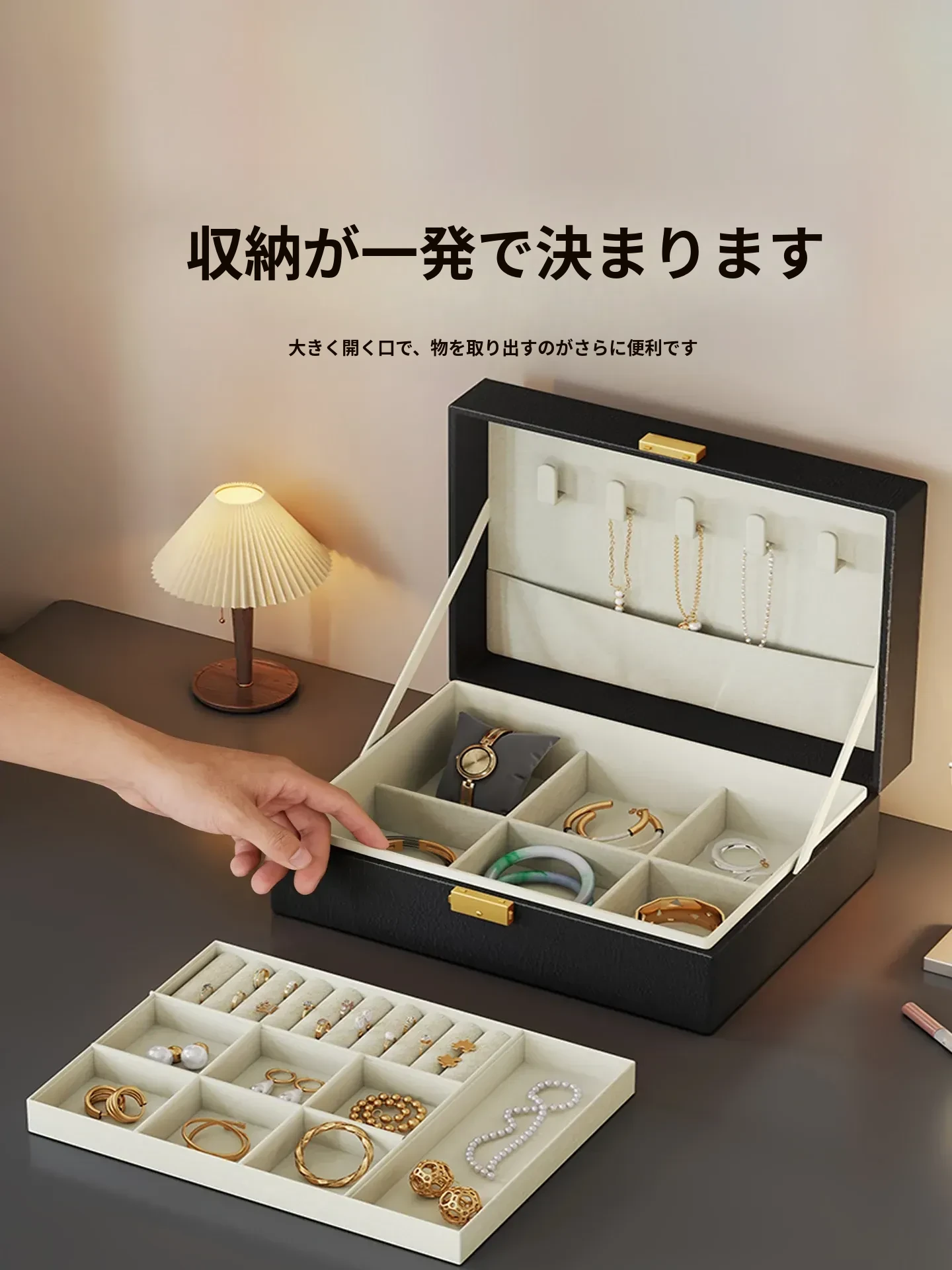 高級ジュエリーボックス - イヤリング、ピアス、ネックレス、リングもすっきり収納!美しいゴールドアクセサリーを守る大容量のデザイン。あなたの宝物をおしゃれに整理整頓する必需品!