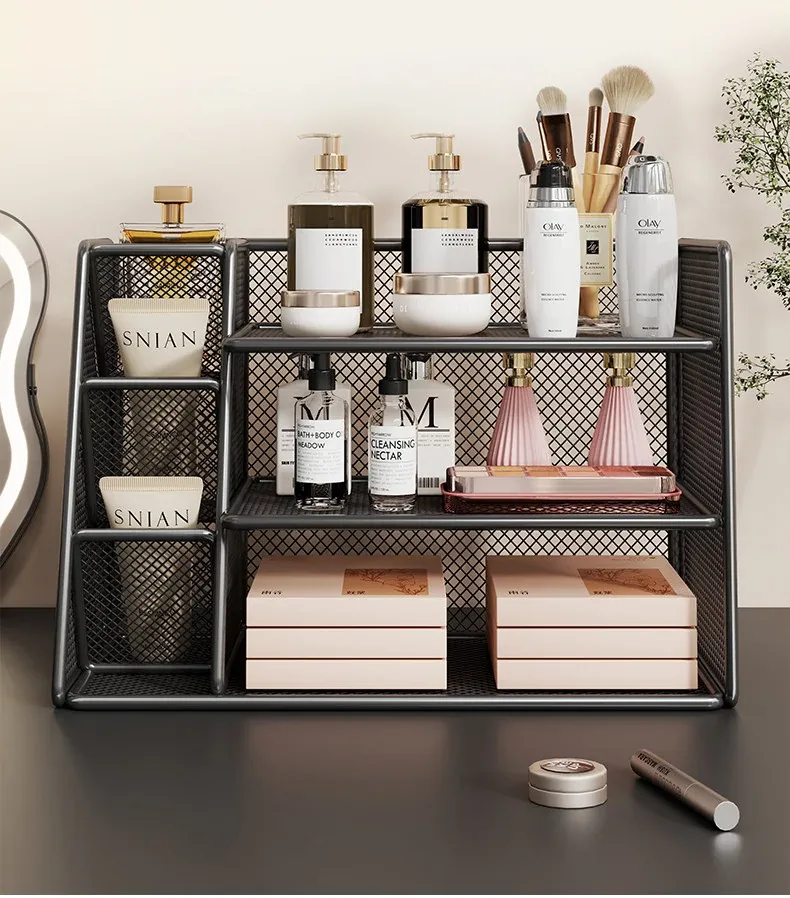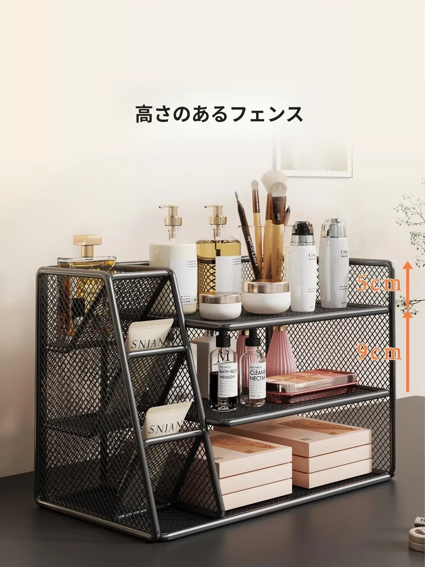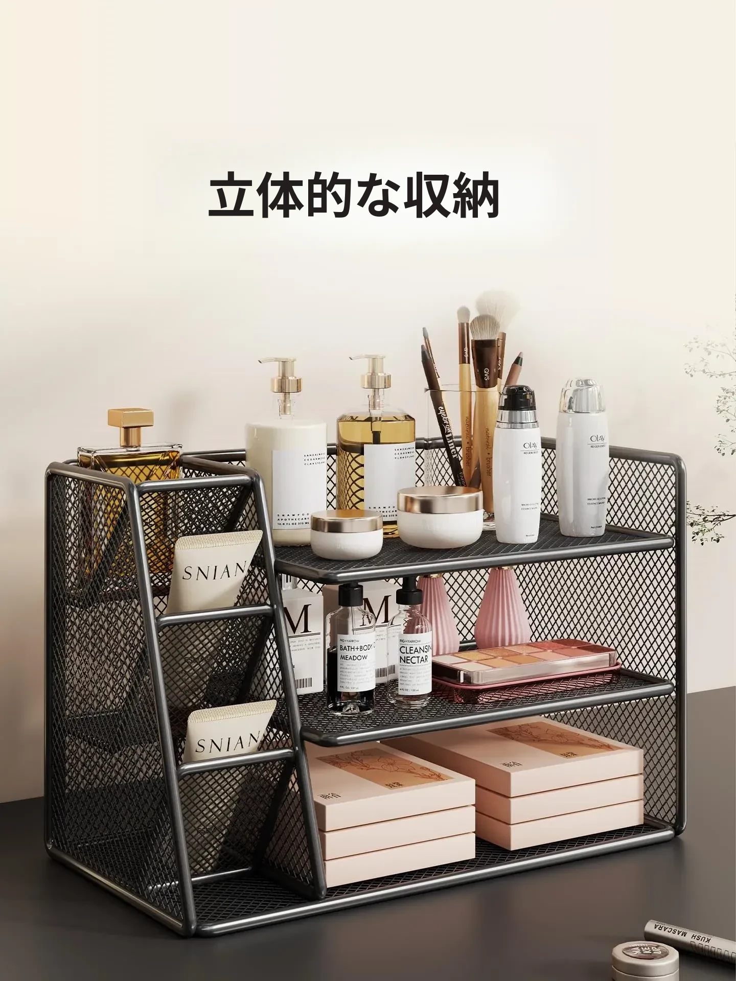 高級感溢れる化粧品収納ボックス!デスクトップ整理に最適なコスメラックで、口紅やスキンケア用品をスタイリッシュに収納。あなたのメイク台を美しく整え、使いやすさ抜群!