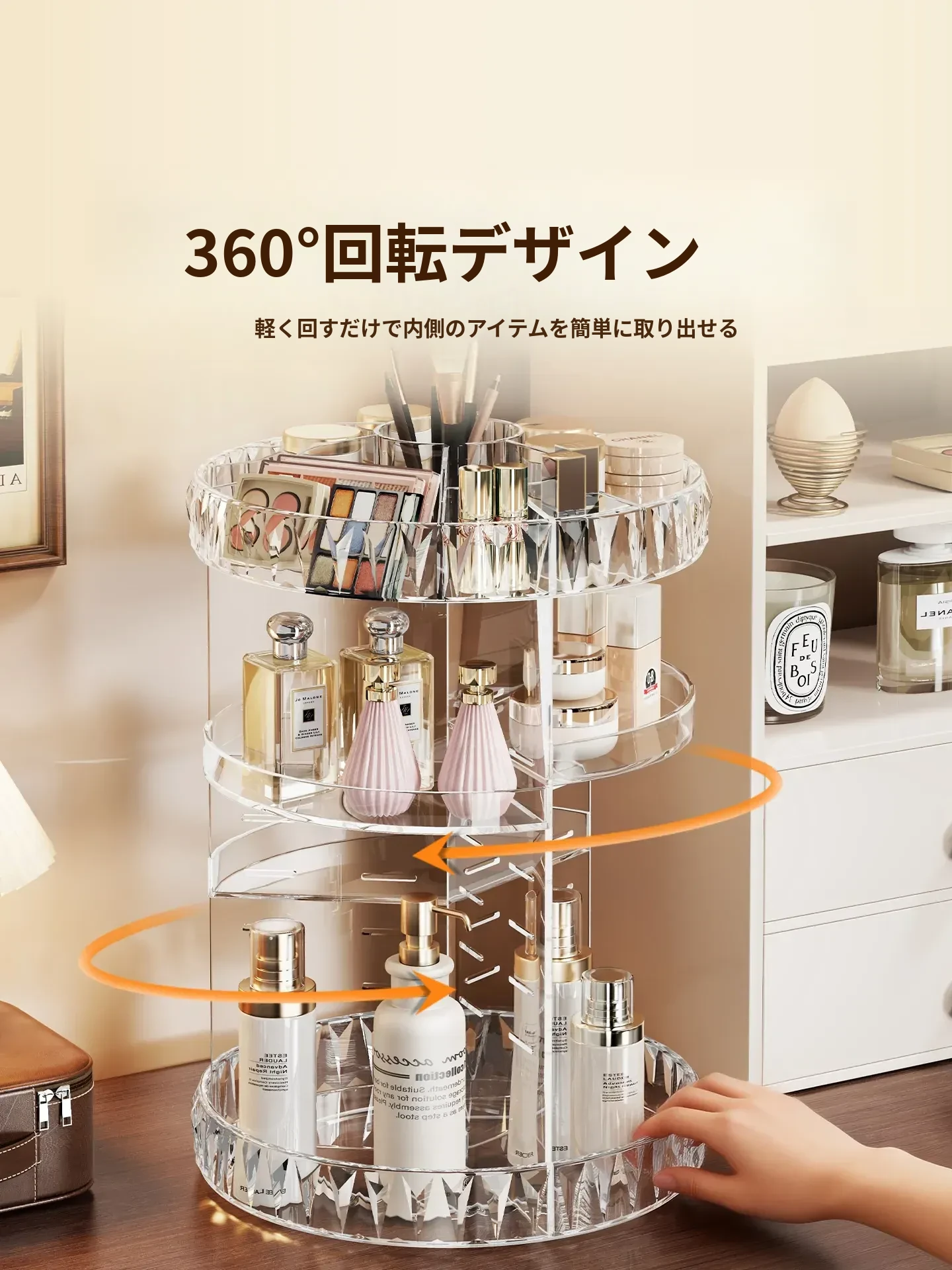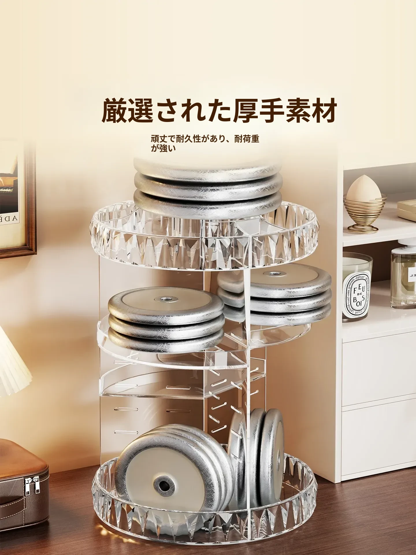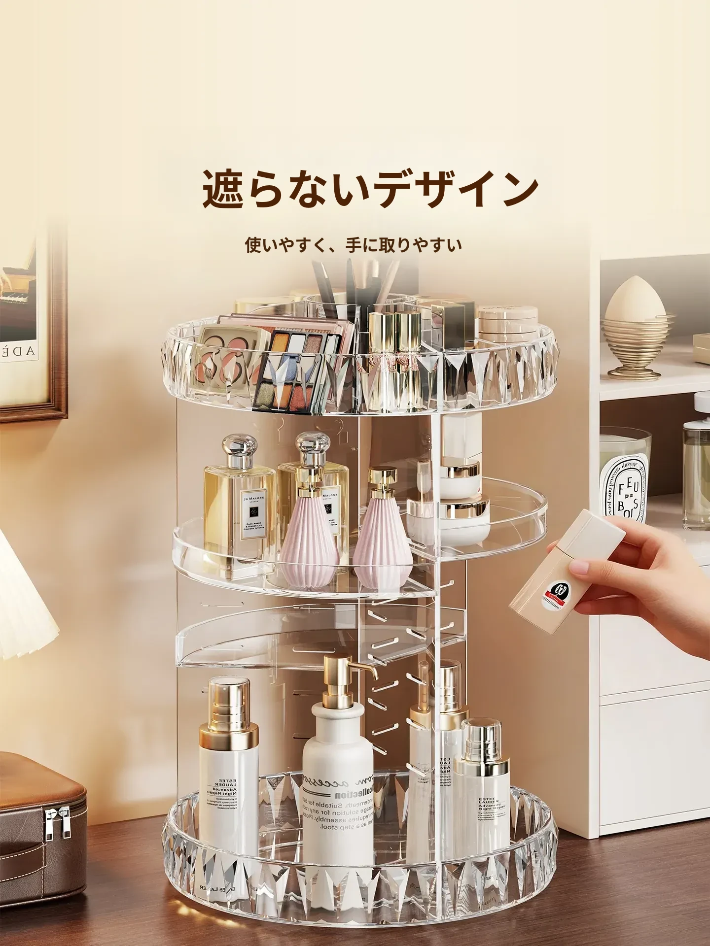 デスクトップ回転化粧品収納ボックス - 高級感あふれるスキンケア&香水スタンド!透明仕切りで口紅もすっきり整理。美しさを引き立てるあなたの必需品!