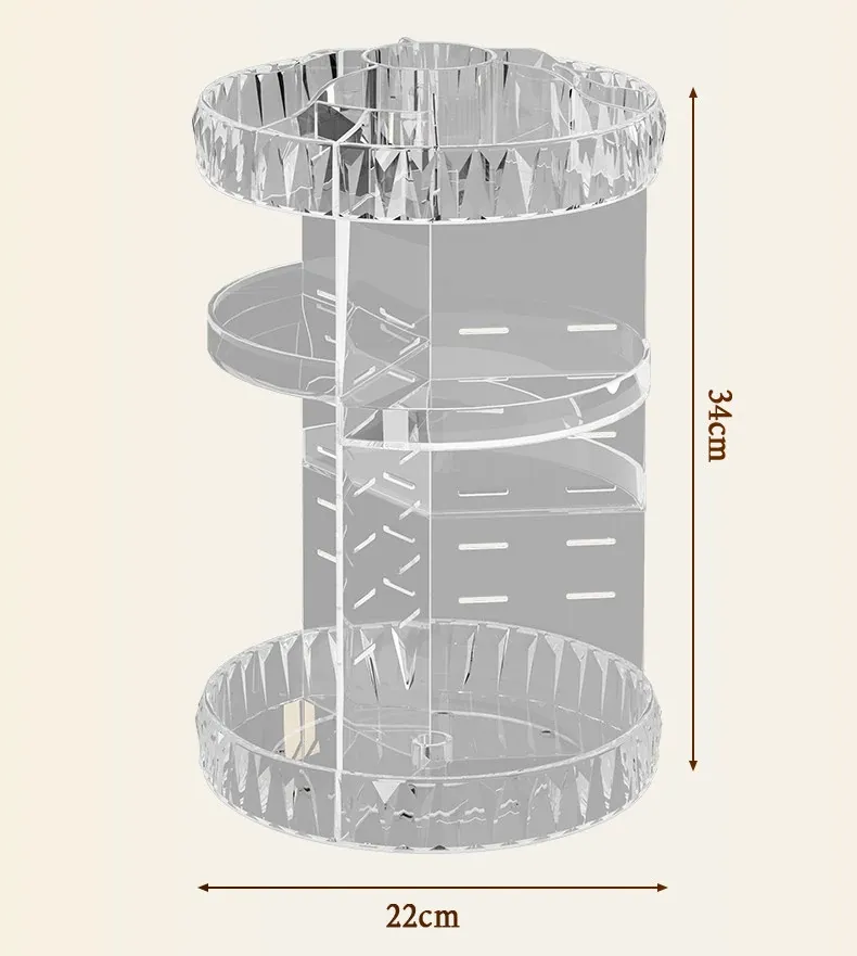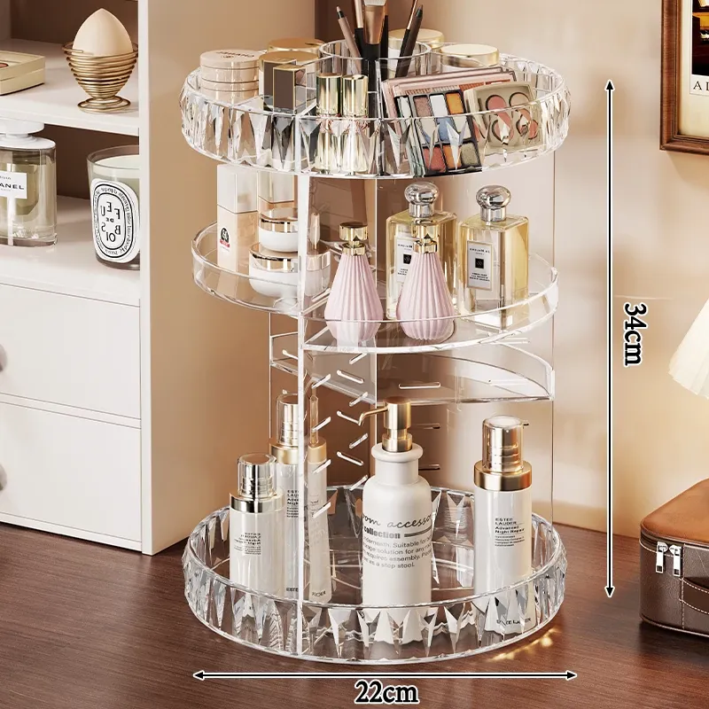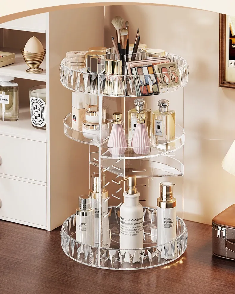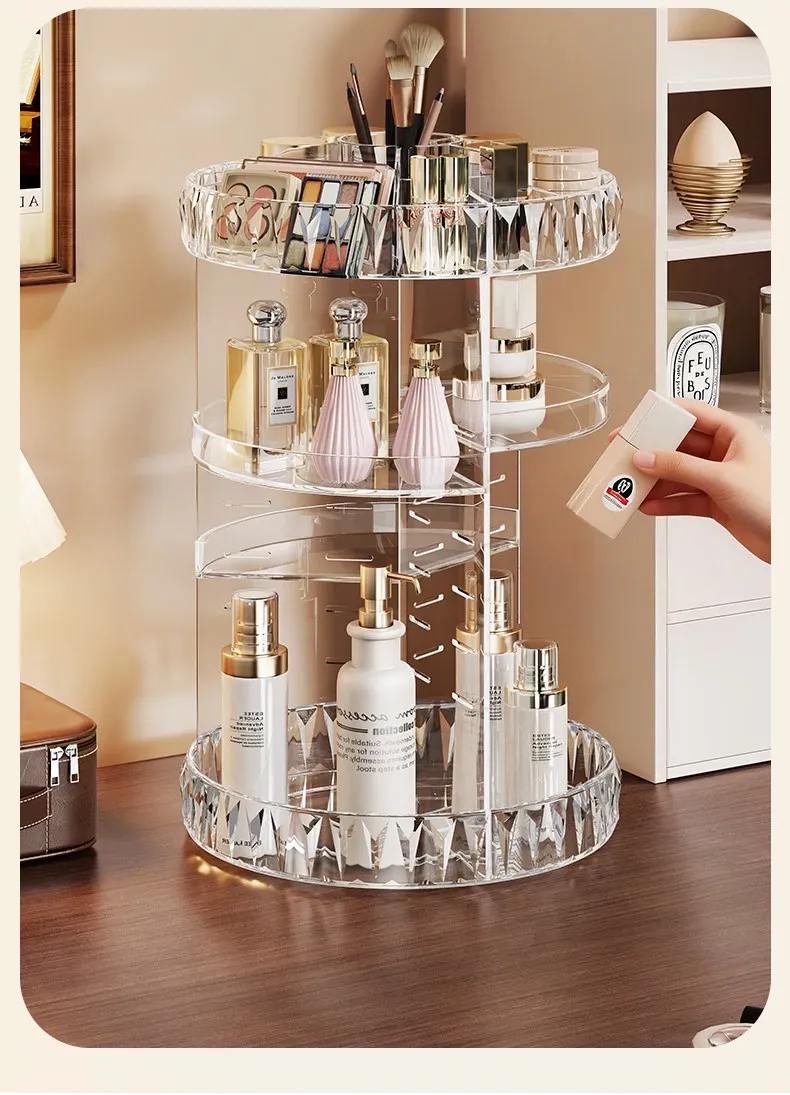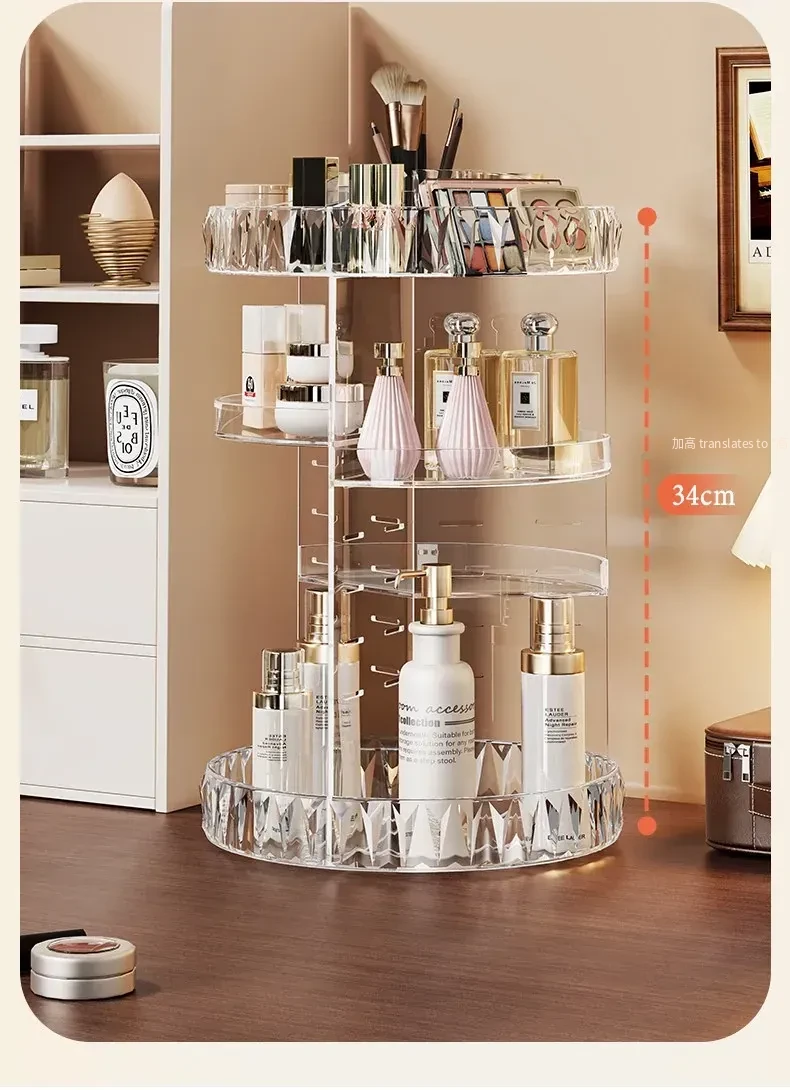 デスクトップ回転化粧品収納ボックス - 高級感あふれるスキンケア&香水スタンド!透明仕切りで口紅もすっきり整理。美しさを引き立てるあなたの必需品!