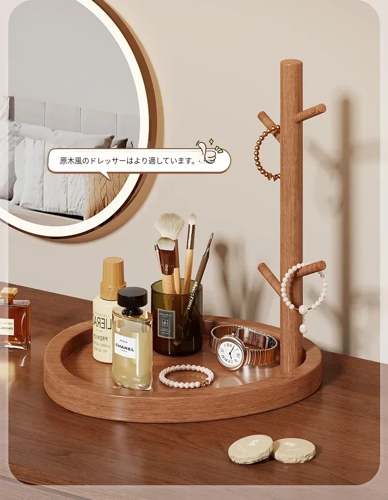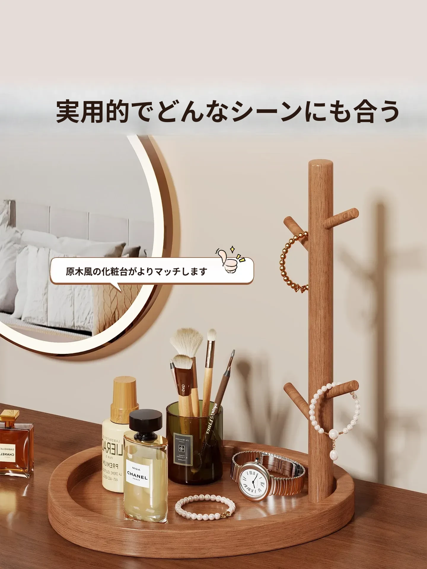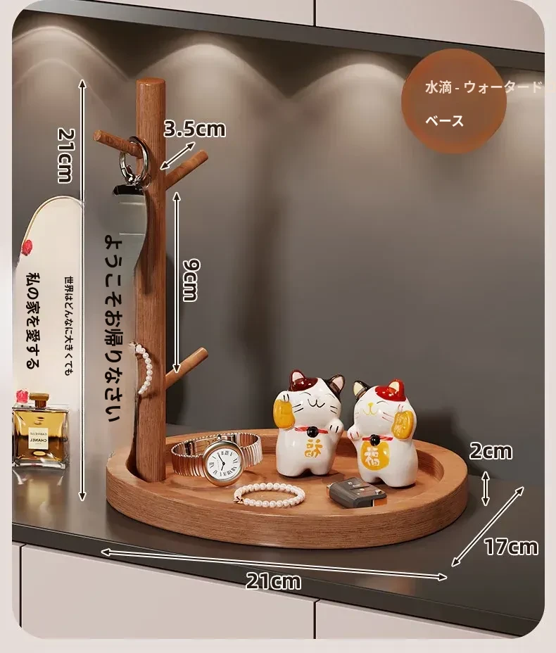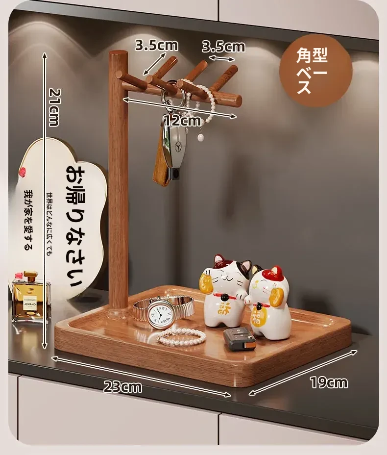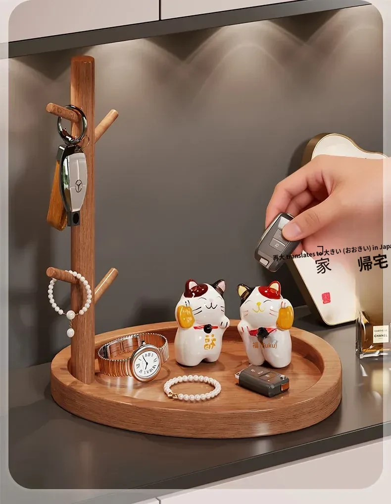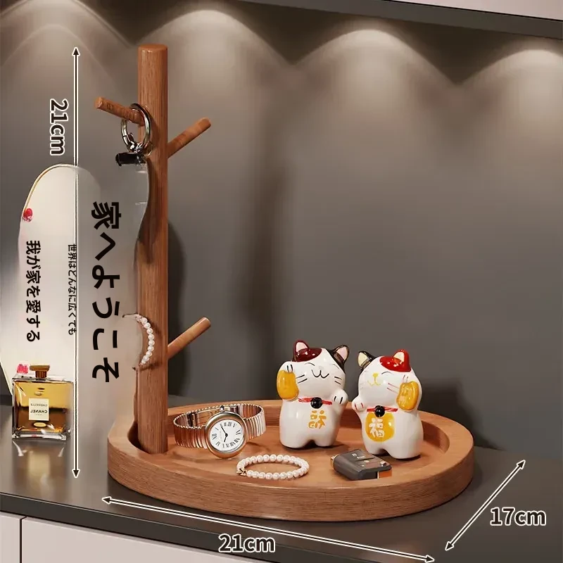 高級感あふれる実木製鍵収納スタンド - 玄関や入居スペースにぴったりのデザイン!デスク上に置ける便利なアクセサリートレイ、ネックレス掛け付きで、あなたの大切なアイテムを美しく整理整頓。