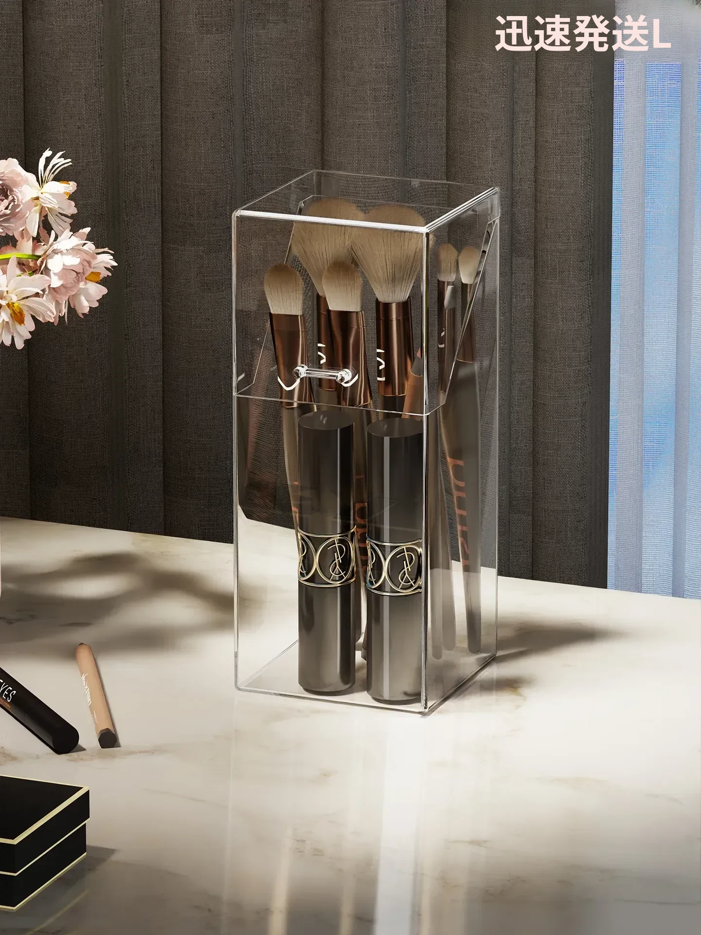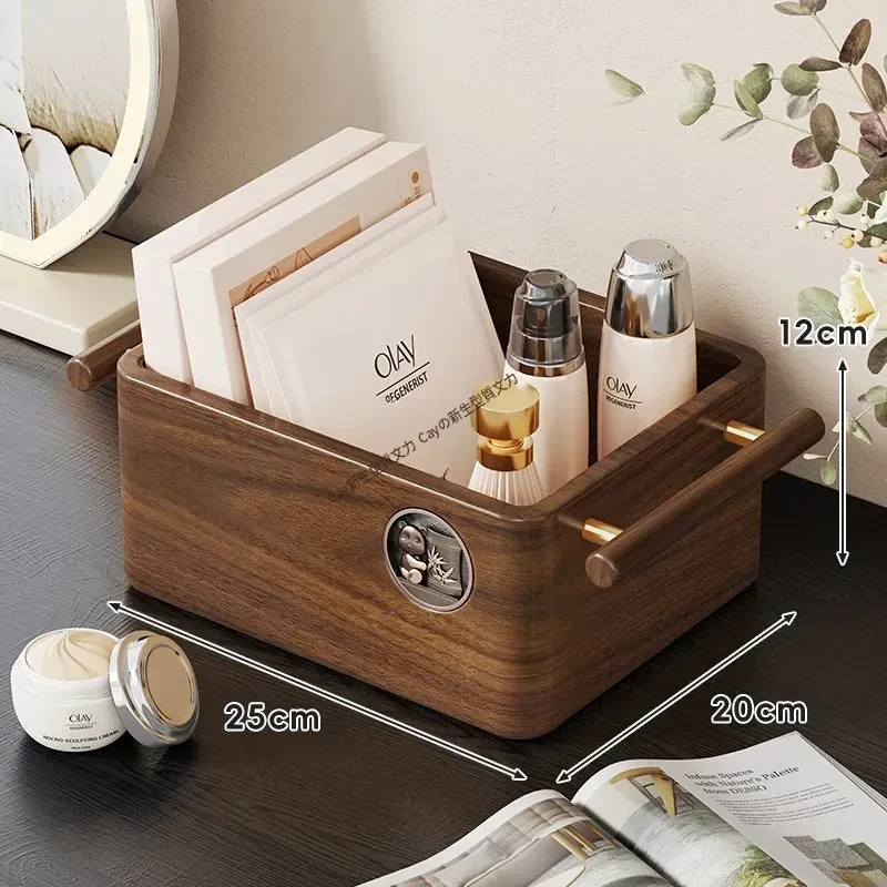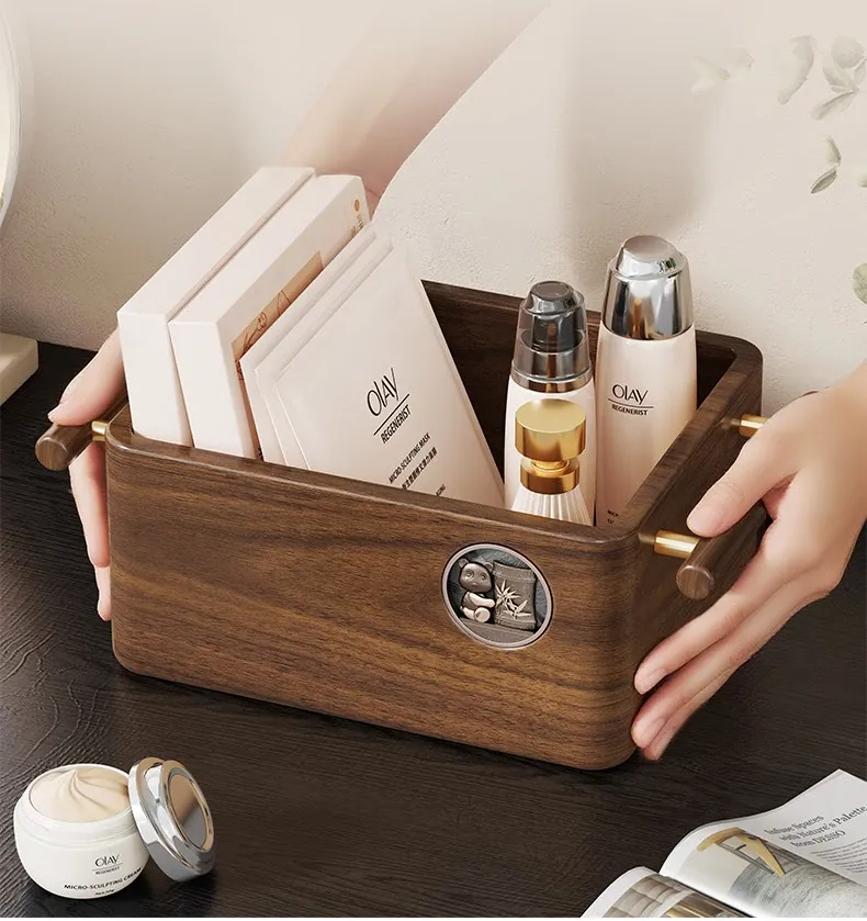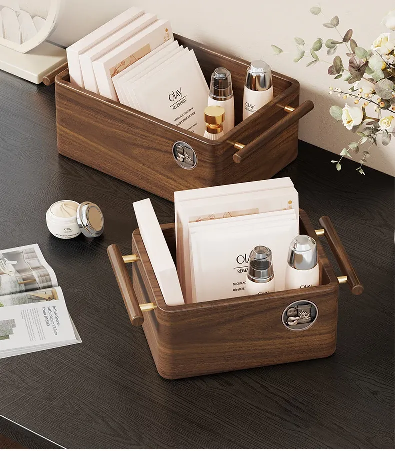 高級天然木製コスメ収納ボックス|フェイスマスク専用のスキンケア用品や化粧品を美しく整理|鏡付きで便利な洗面所デスクトップ収納ラック|おしゃれなインテリアにも最適!