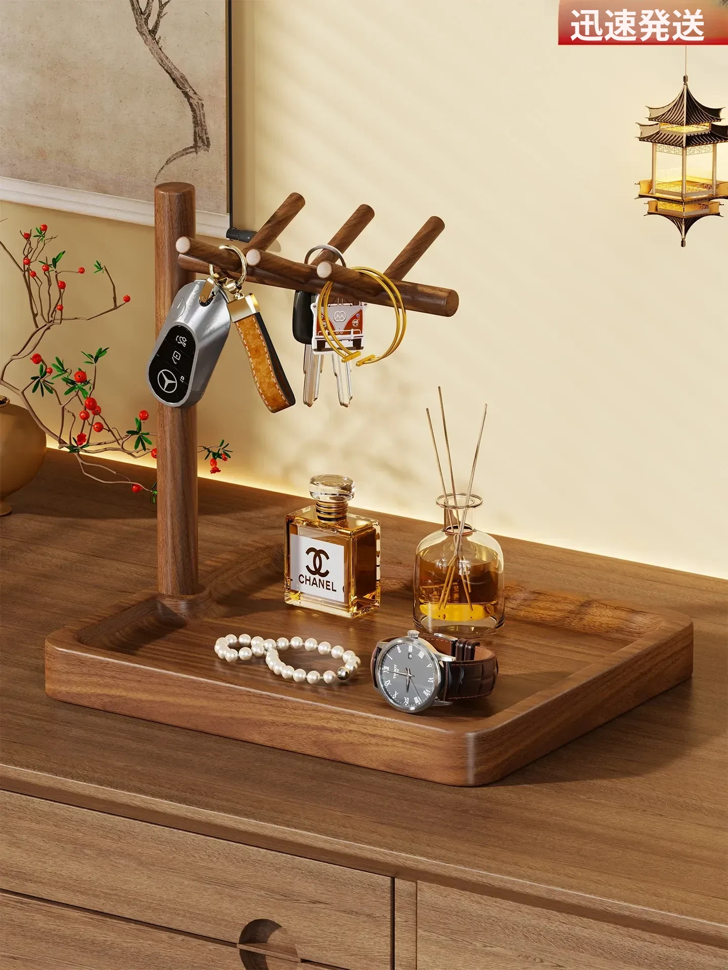 ウォールナット色小型ハンドルタイプ【輸入無垢材】