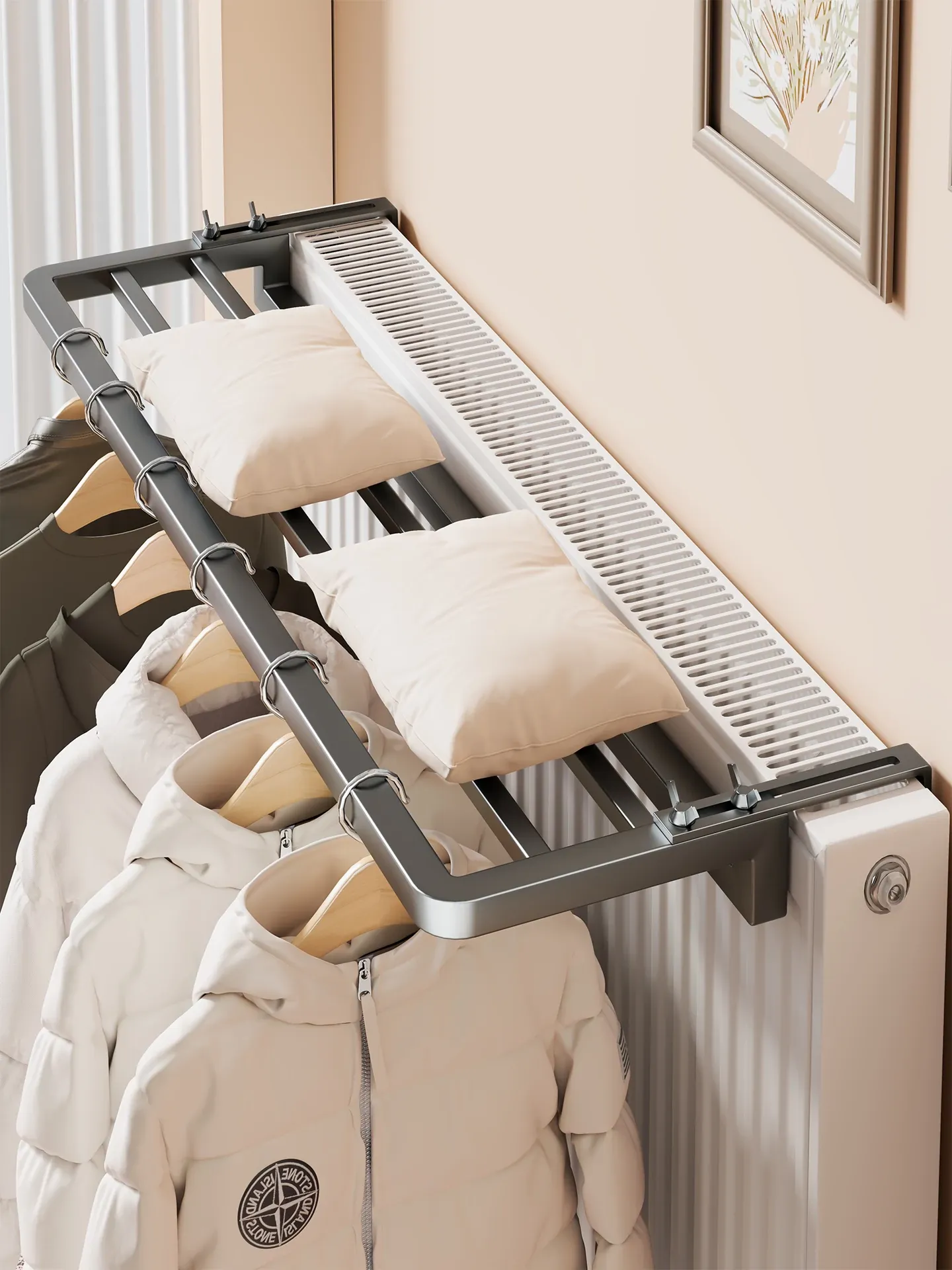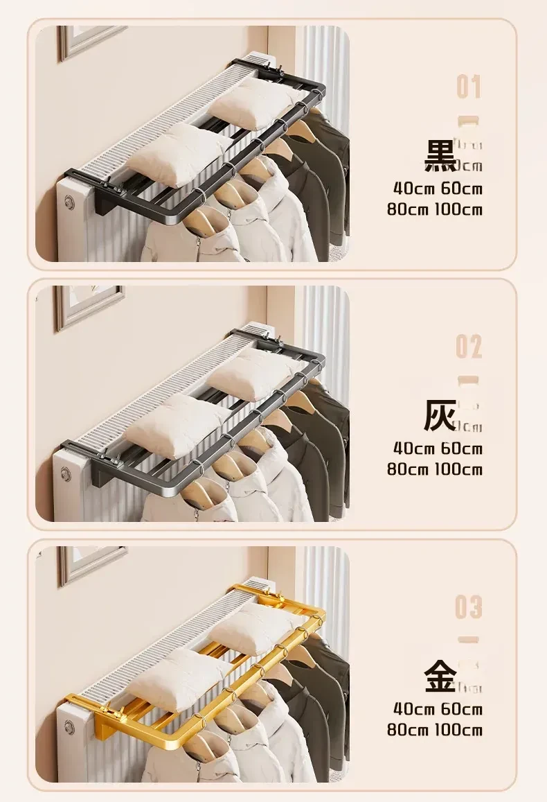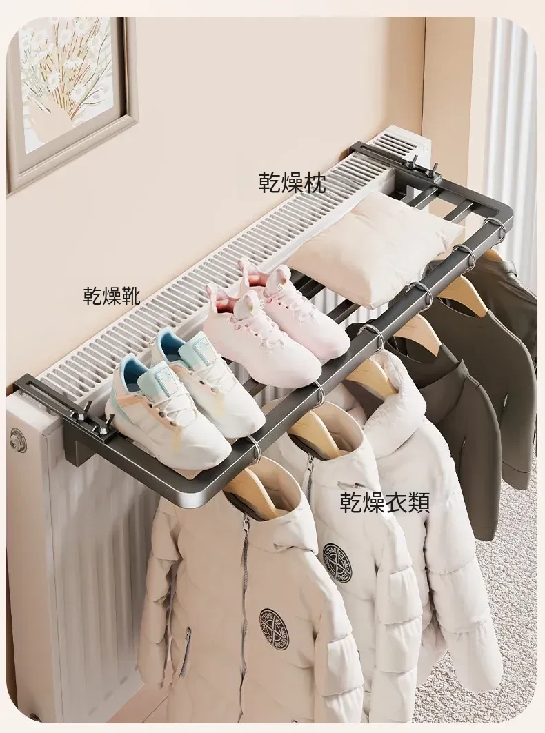 暖房用の衣類干しハンガー|折りたたみ式・隠れたデザインでスペースを有効活用!暖房パイプの上にぴったりフィットする収納ラック・便利なアイテムで衣類をスマートに干しましょう!