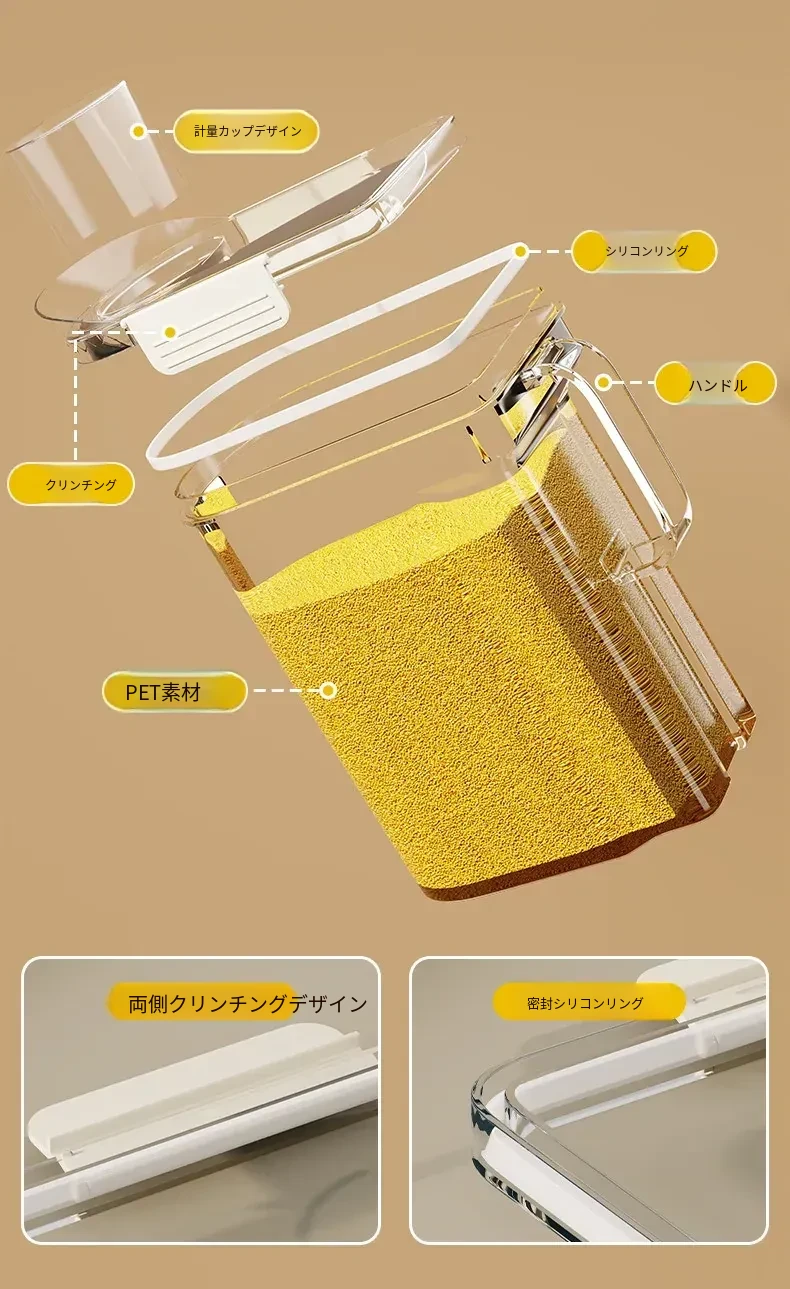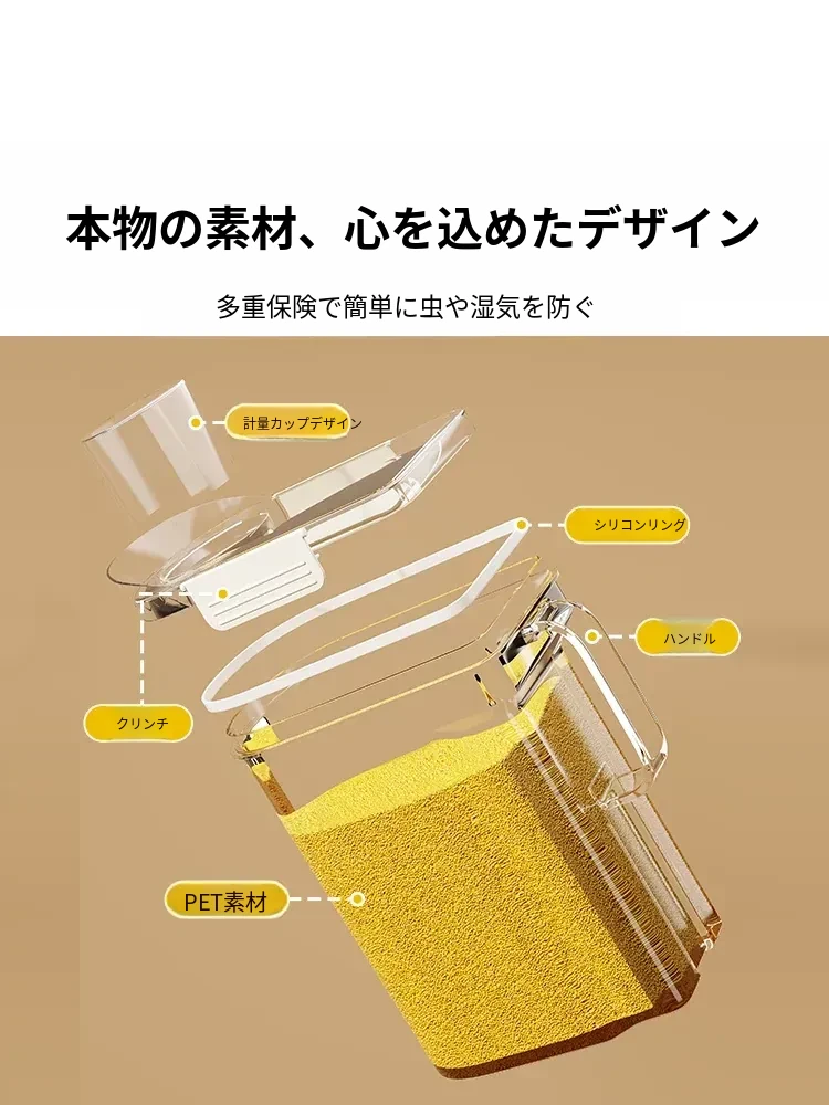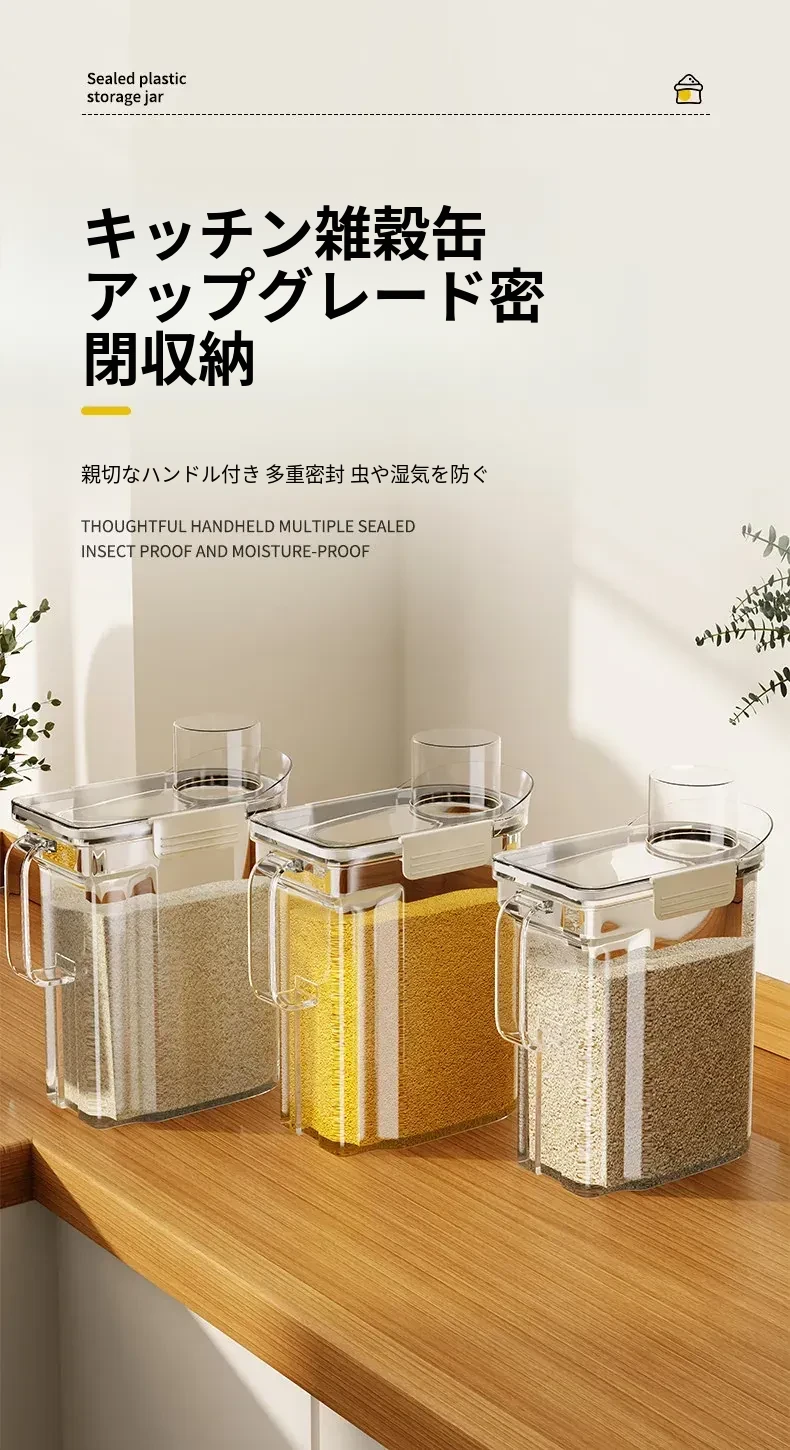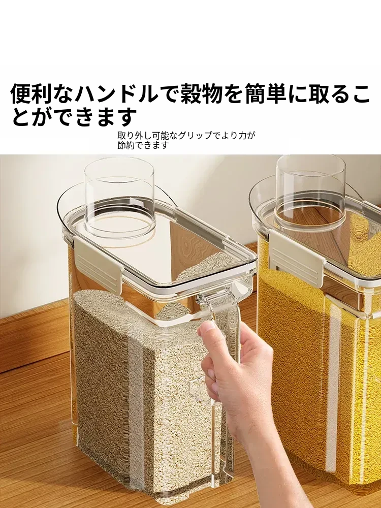 食品グレードの大容量五穀雑穀収納ボックス - 防虫・防湿機能付き!ご家庭のキッチンに最適な密閉米容器で、食材を新鮮に保ち、整理整頓も簡単!