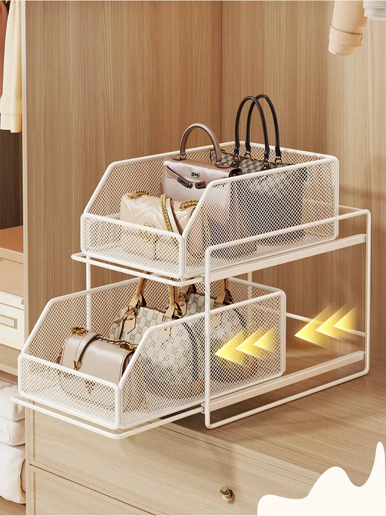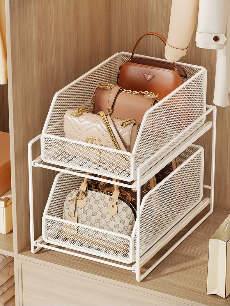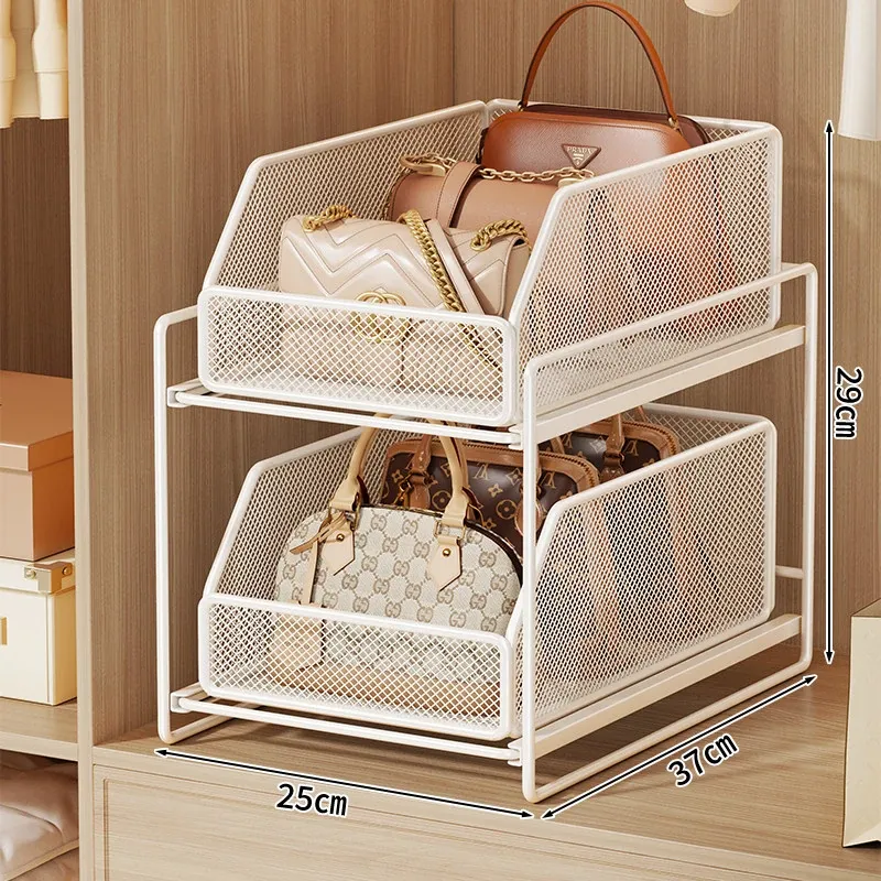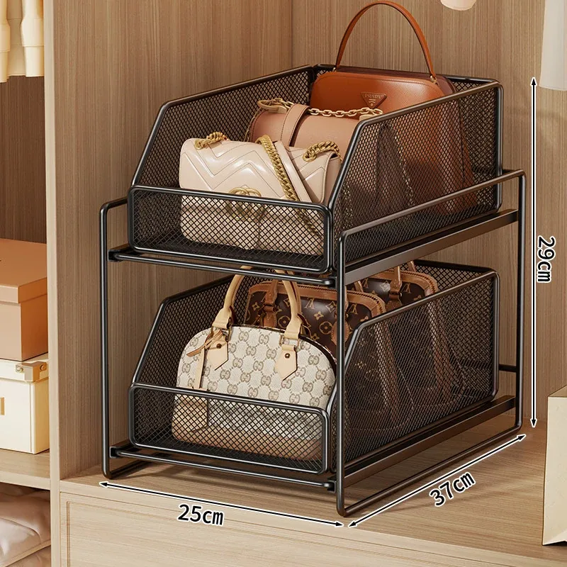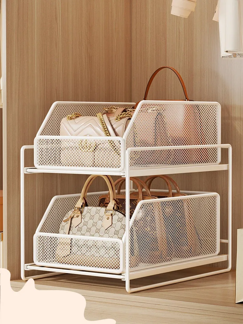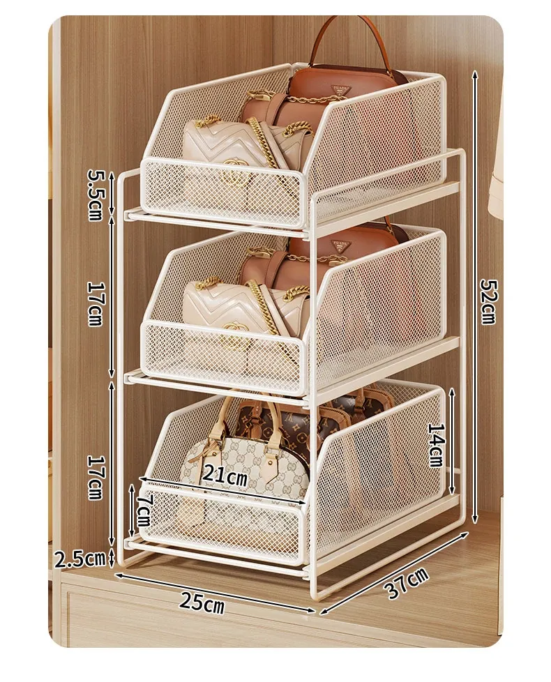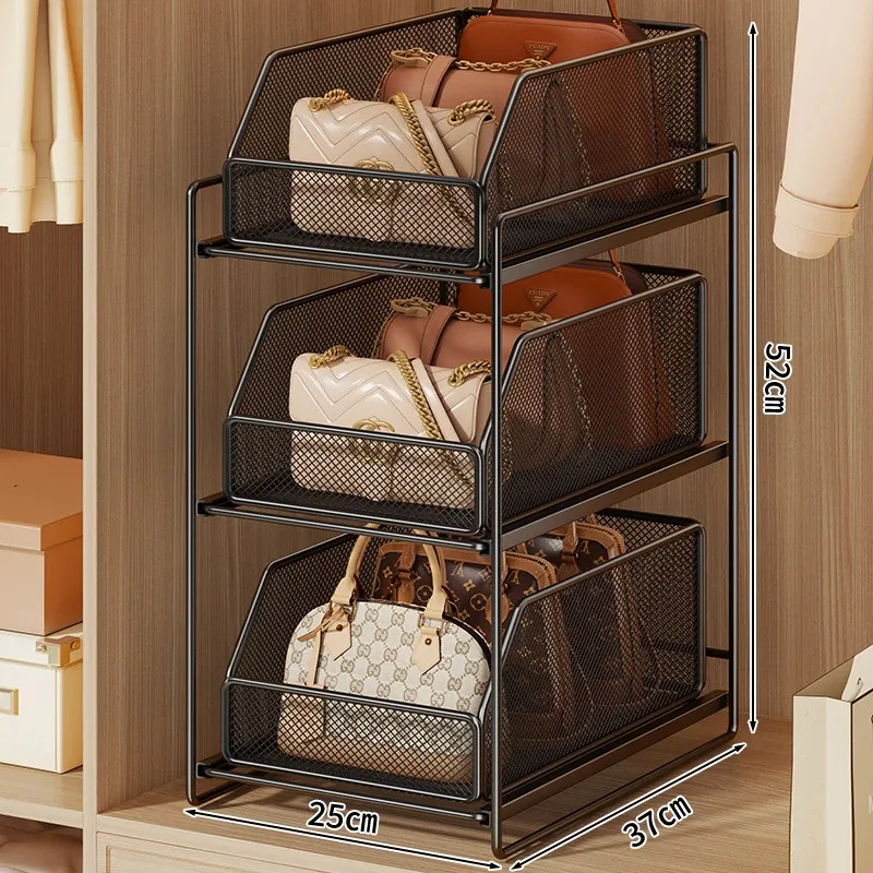 バッグ収納ラック - ハンドバッグを整理整頓!分けて収納できる便利なハンギングシェルフで、バッグをすっきり整頓。クローゼット内もスッキリ!収納ボックスとしても使える多機能アイテムです。