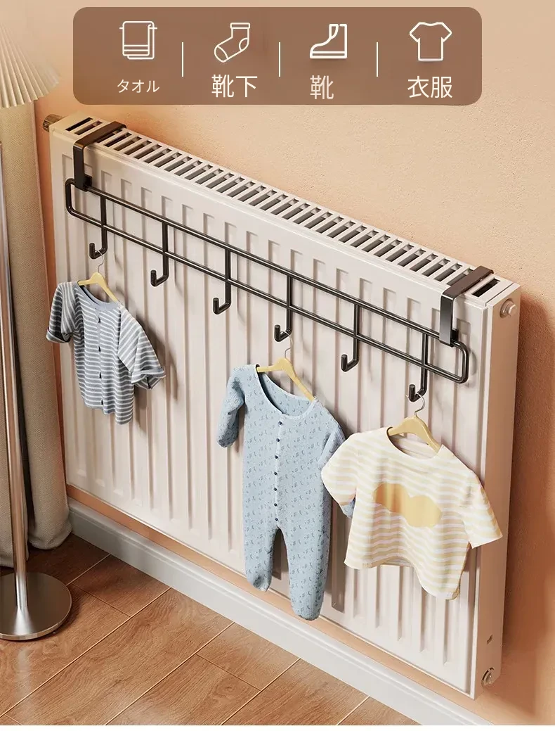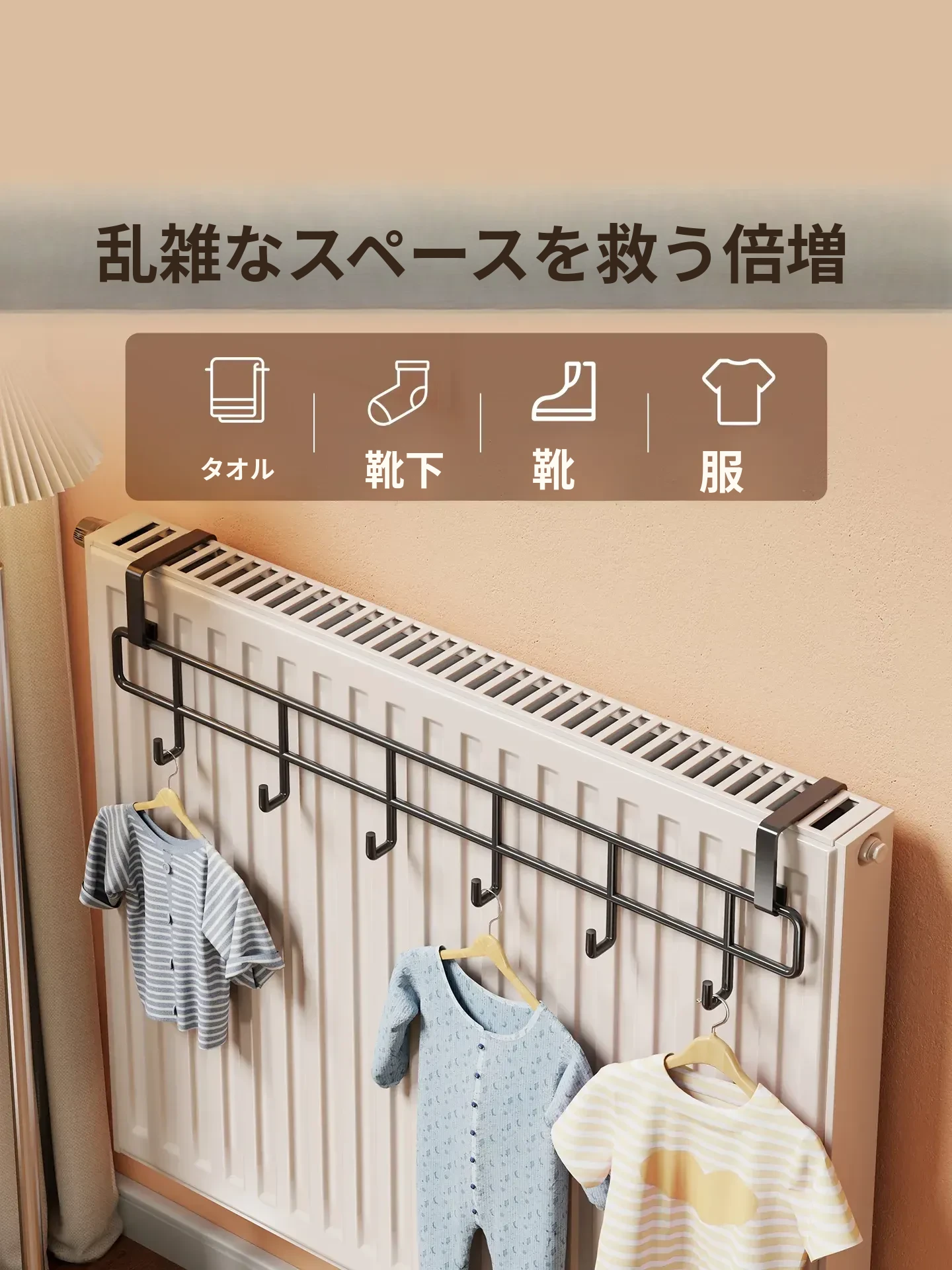暖房用物干しラック - 暖房パイプ専用ハンガーで、衣類をすっきり整理!衣類を早く乾かし、スペースを有効活用できる魔法の収納アイテム!