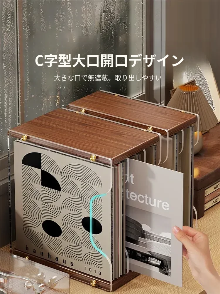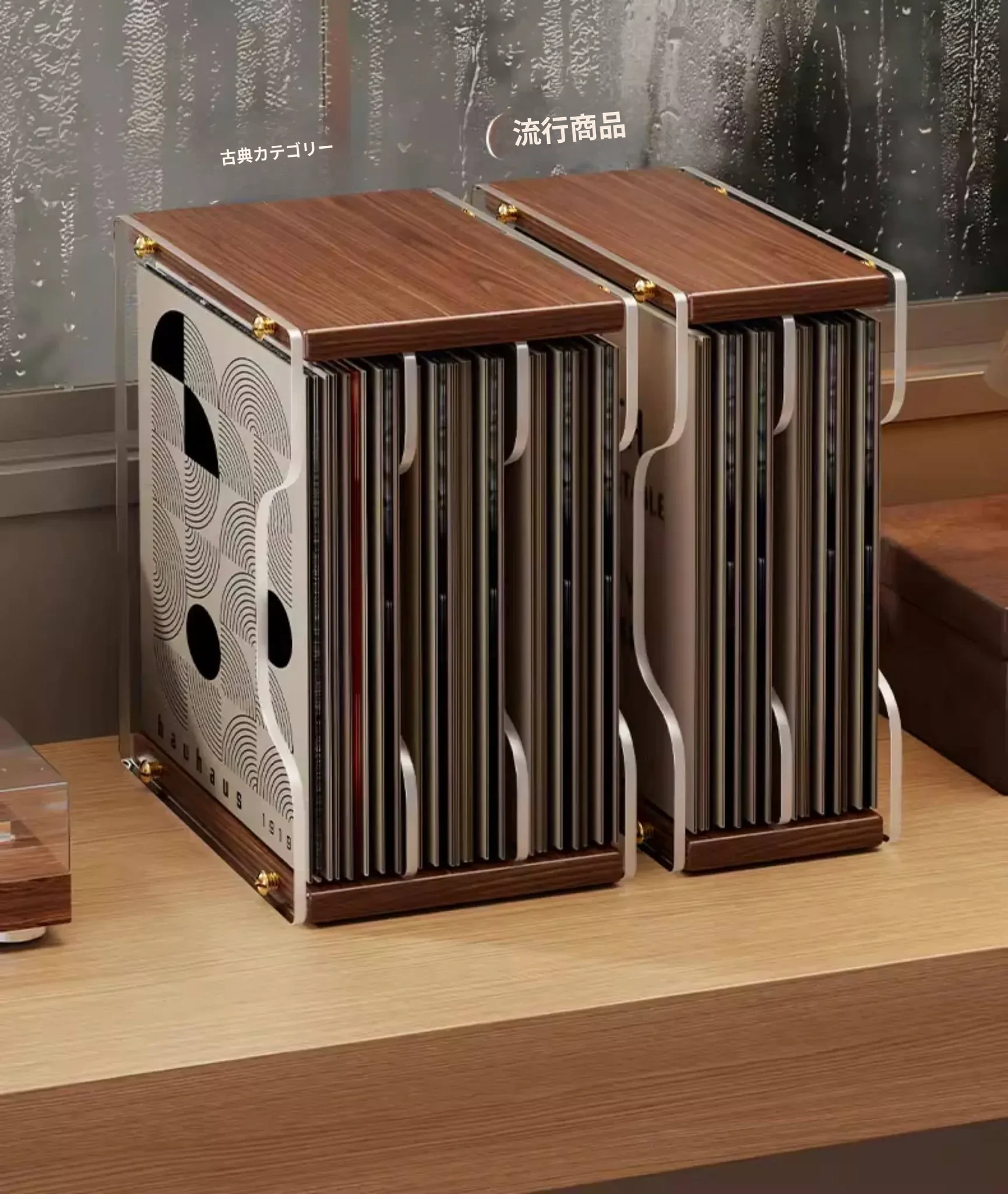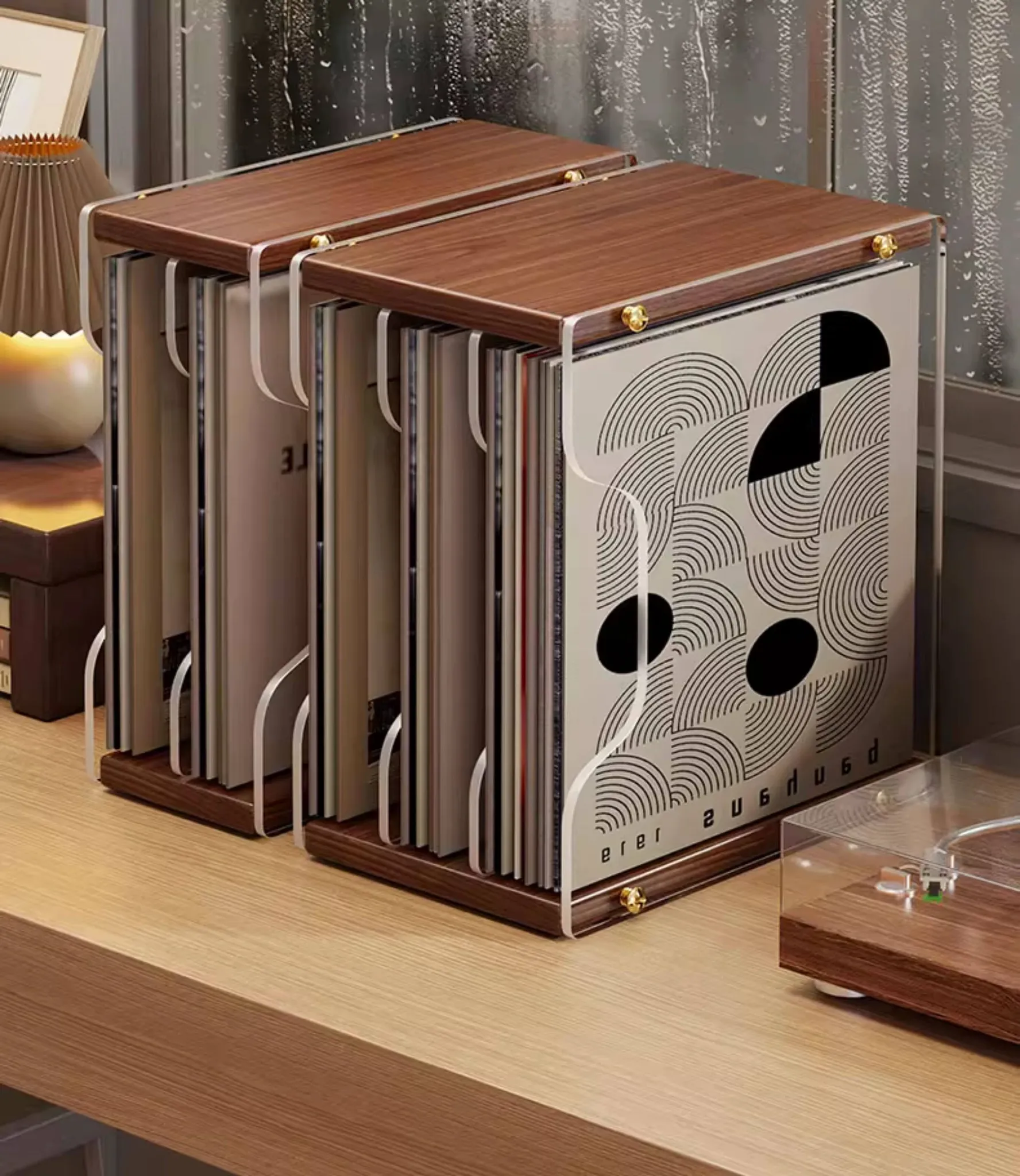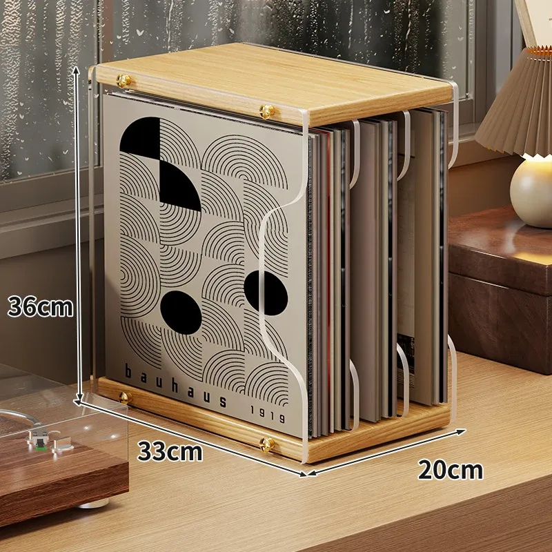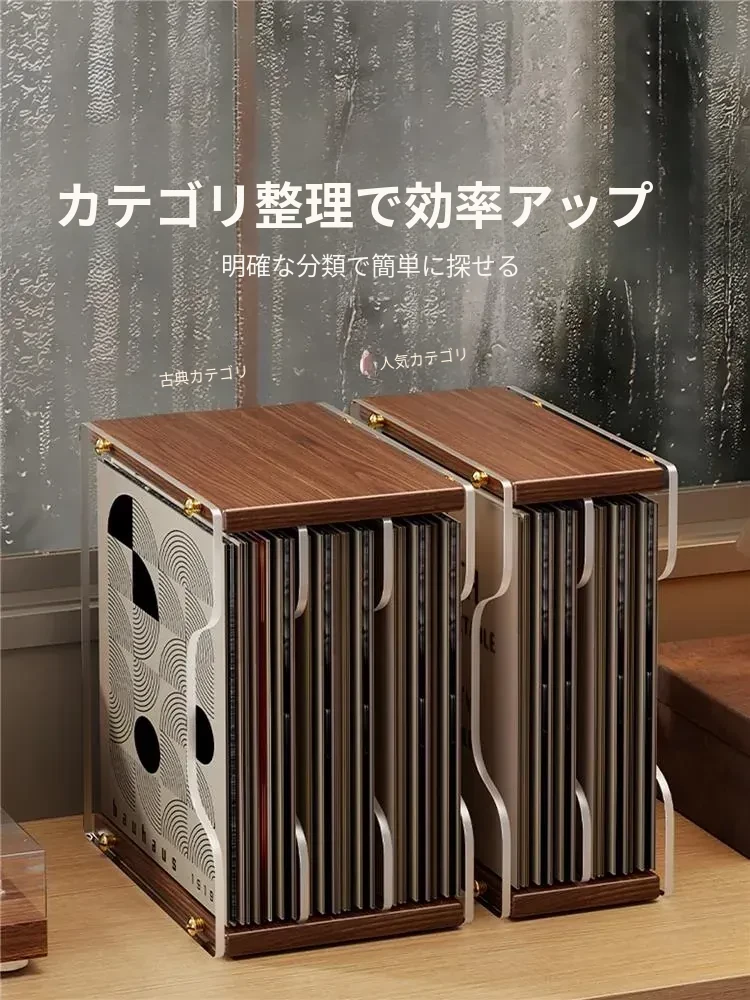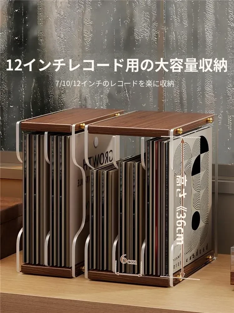レトロなレコードディスプレイスタンド - おしゃれなデスクトップ用CD収納ラック!多段式で光ディスクを美しく保管し、あなたの音楽コレクションを魅力的に演出します。大切なレコードをしっかり守るプロテクションボックス付き!
