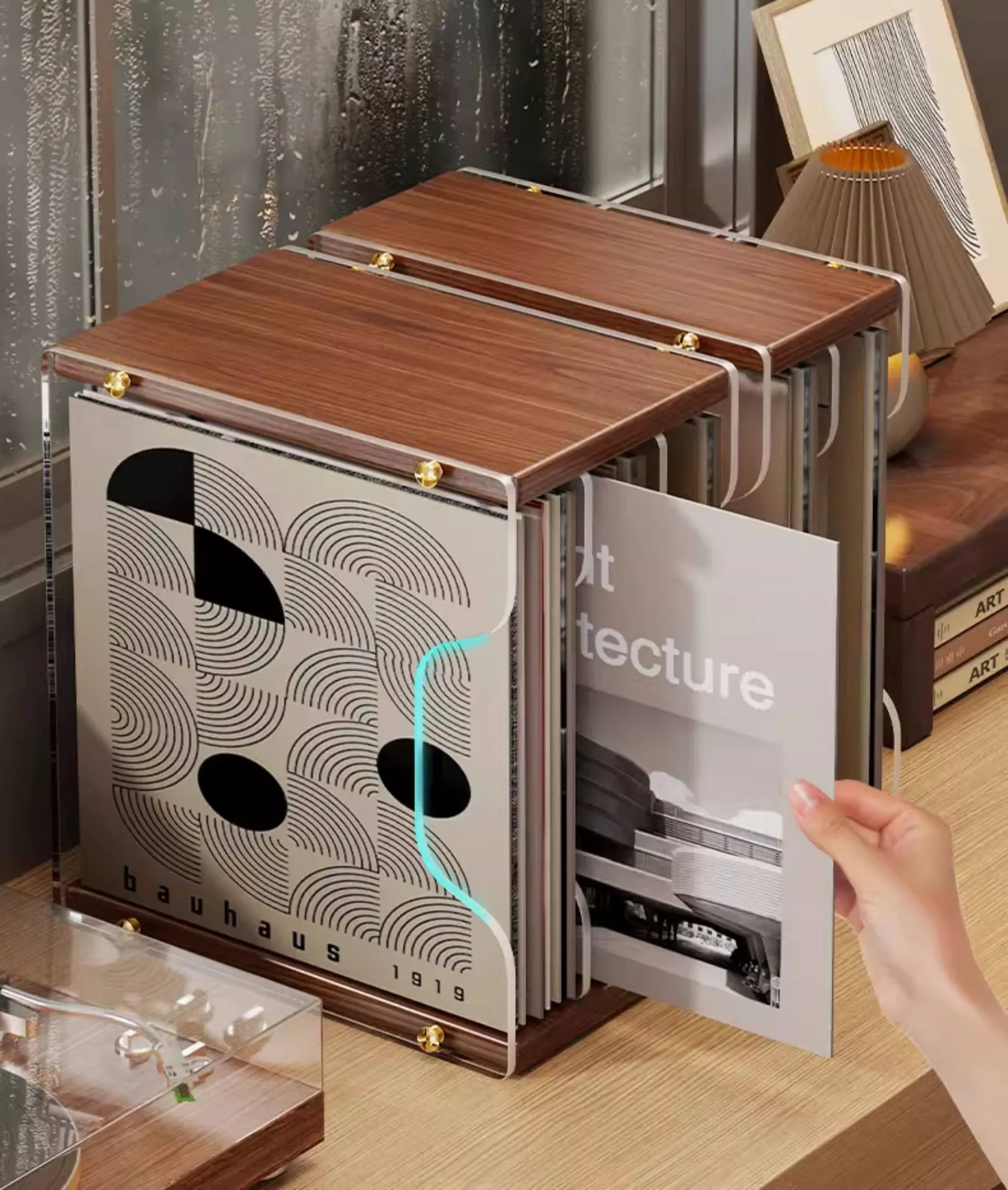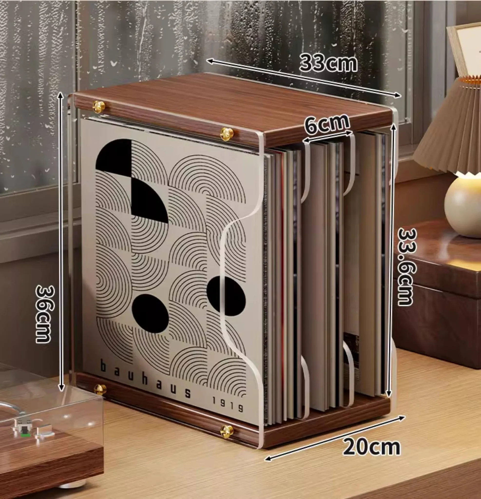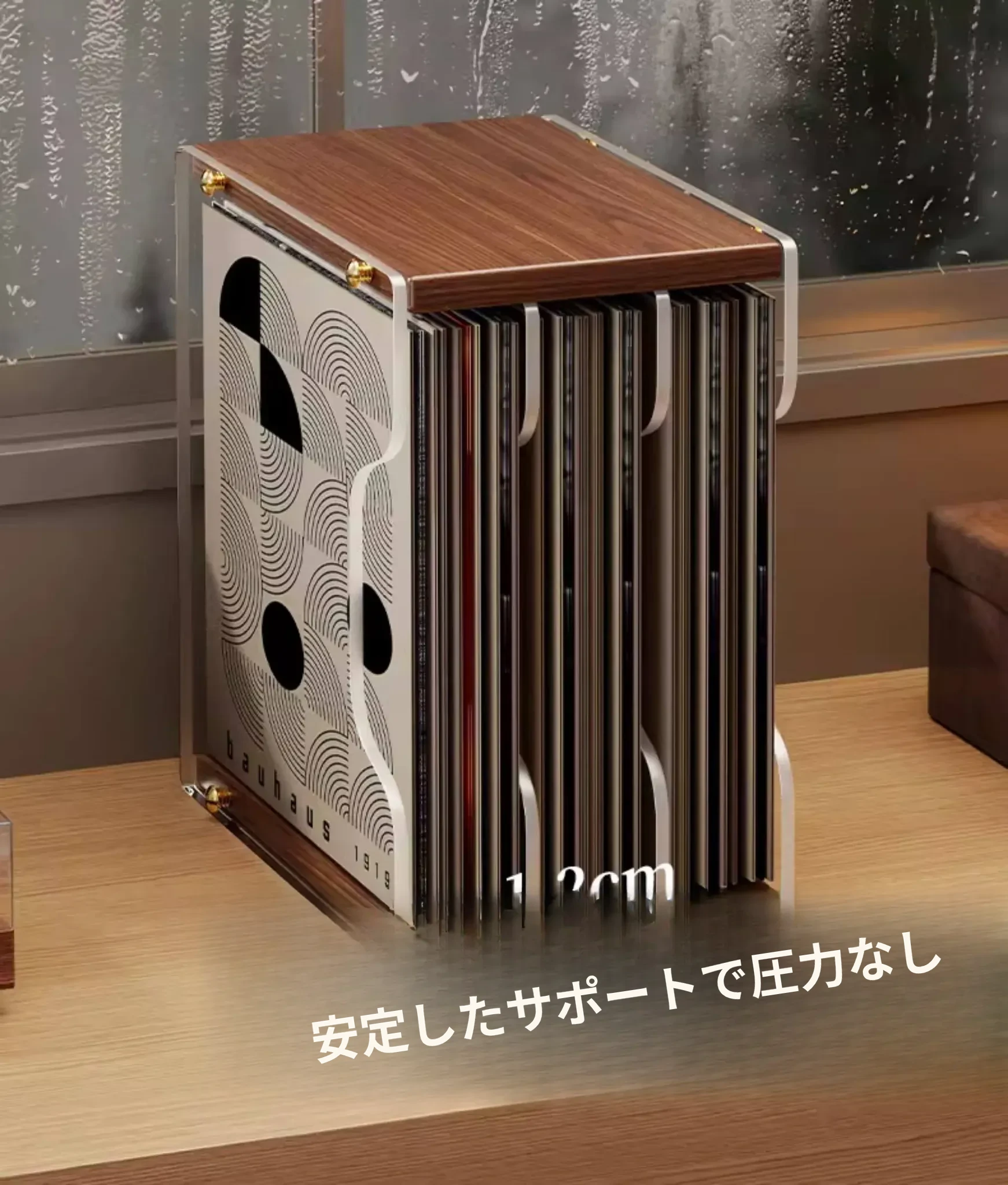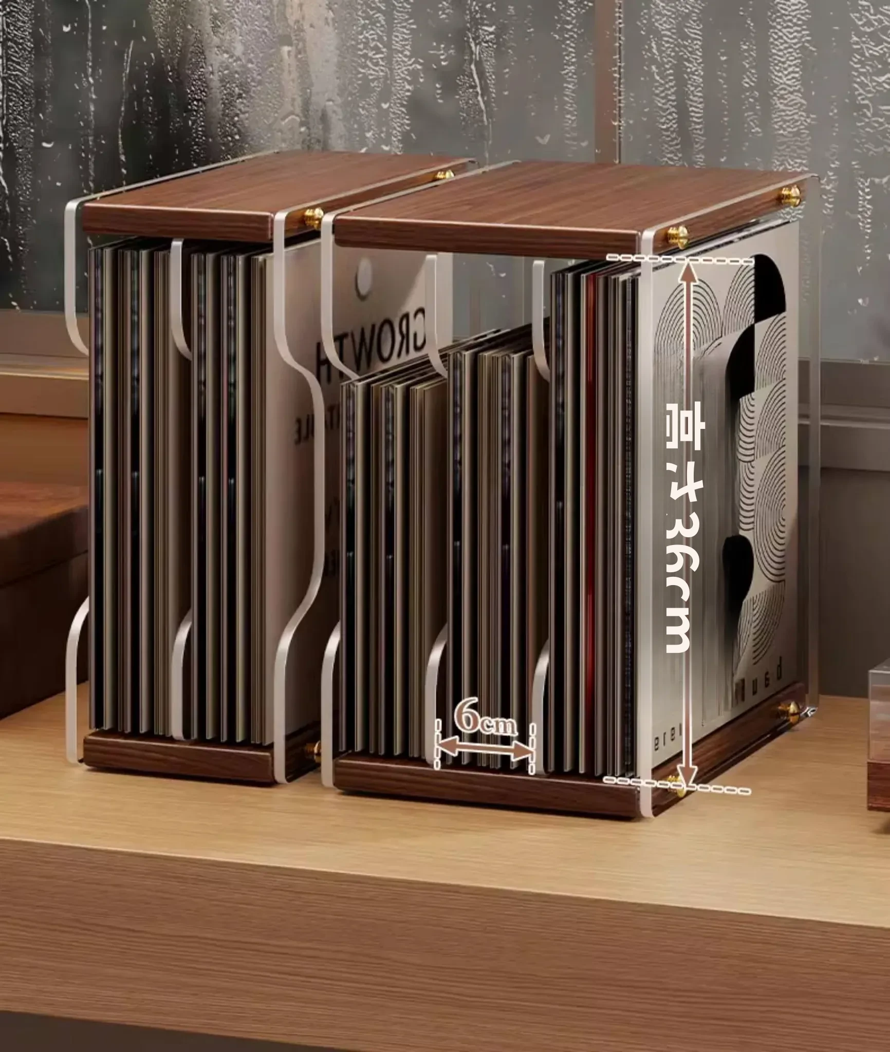 レトロなレコードディスプレイスタンド - おしゃれなデスクトップ用CD収納ラック!多段式で光ディスクを美しく保管し、あなたの音楽コレクションを魅力的に演出します。大切なレコードをしっかり守るプロテクションボックス付き!