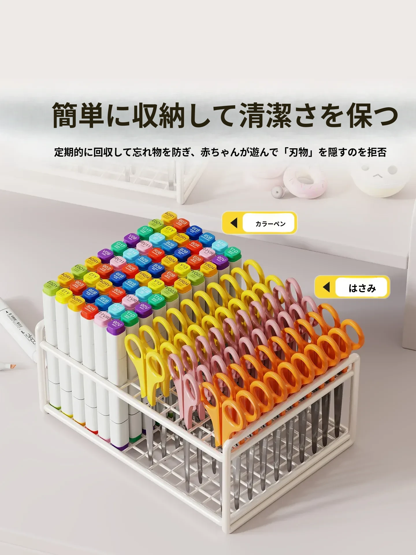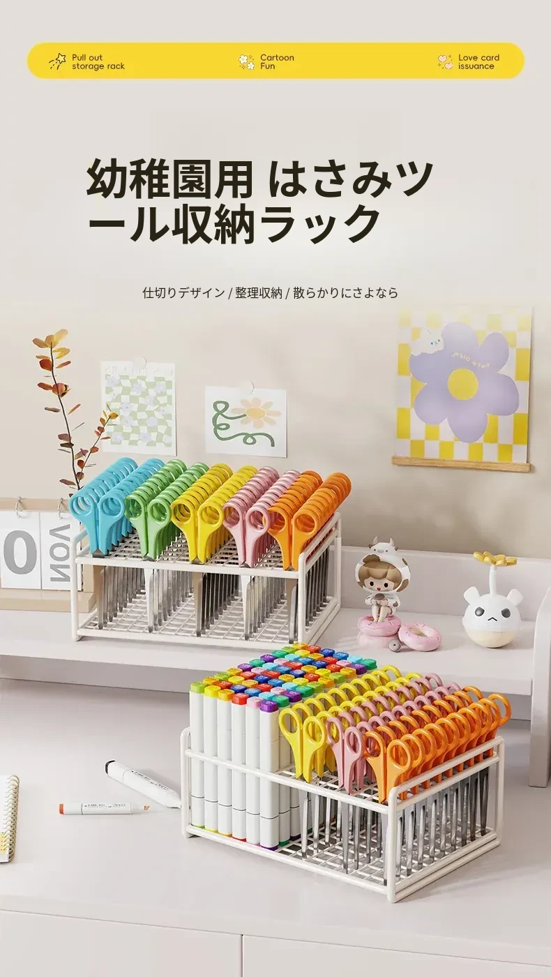 安全なデスク用ハサミ収納ボックス|子供のアートルームに最適!幼稚園用の便利な収納ラックで、クリエイティブな作品をすっきり整理。子供たちの安全を守りつつ、楽しく使えるアイテムです!
