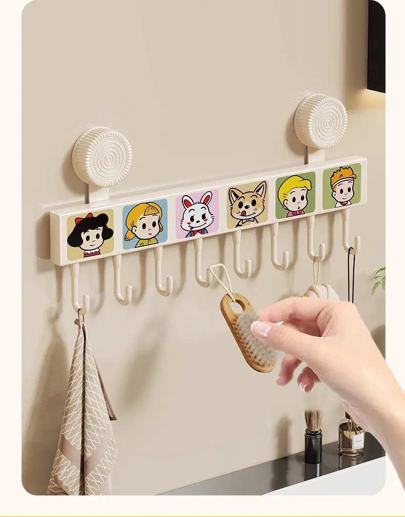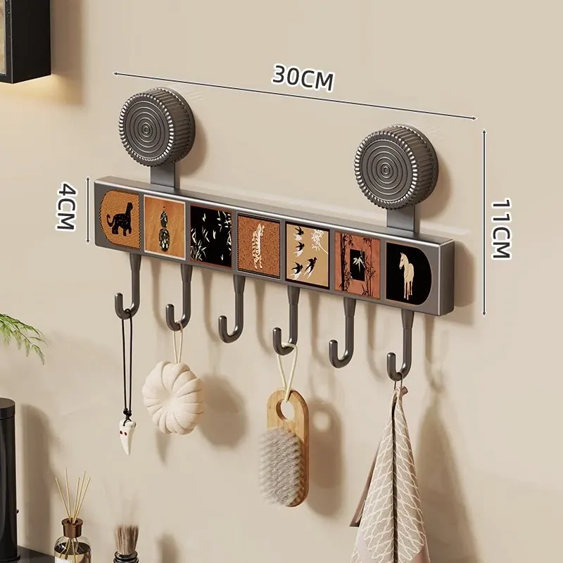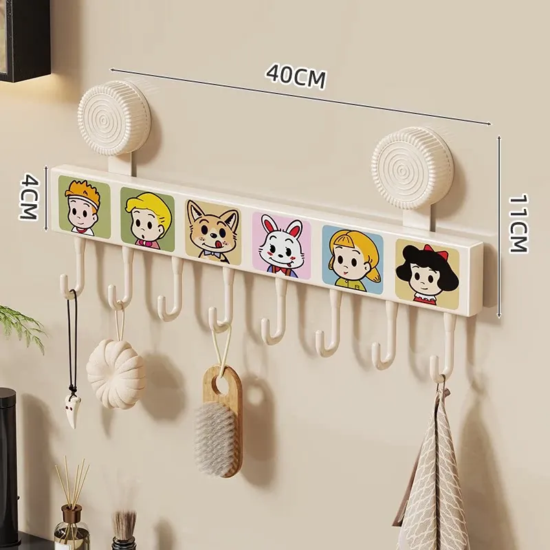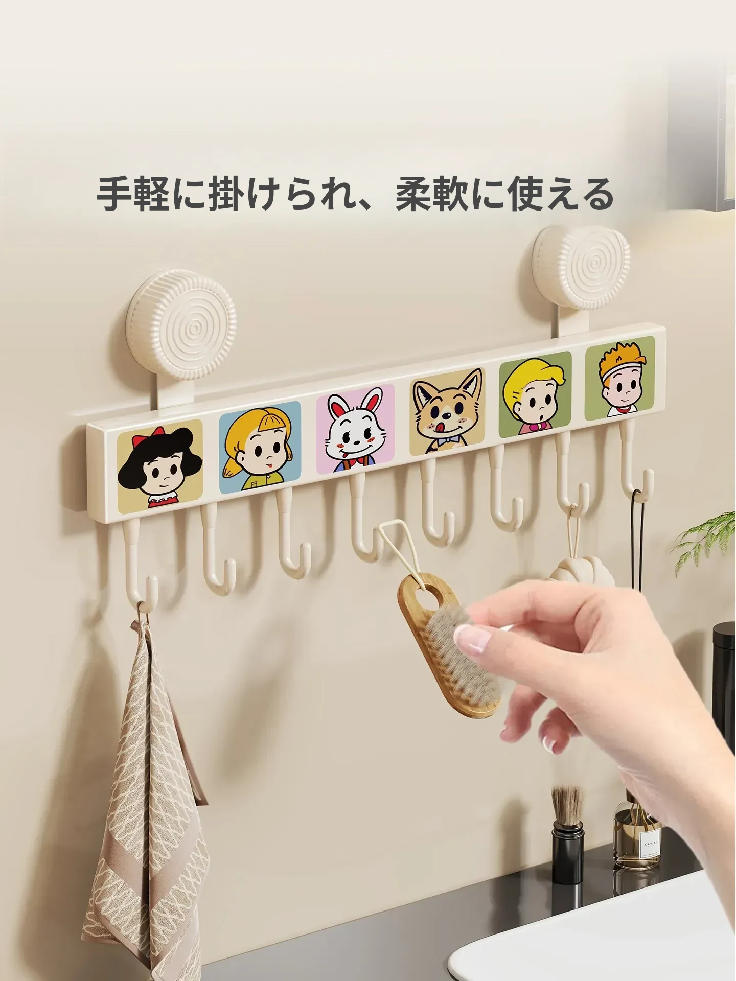 キッチン用フック付き鍋具収納ラック - スプーンやヘラを整理!穴を開けずに簡単取り付け、吸盤式壁掛けデザインでスッキリ収納。おしゃれで便利なキッチンの強い味方!