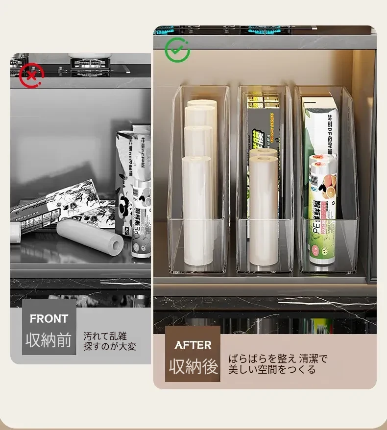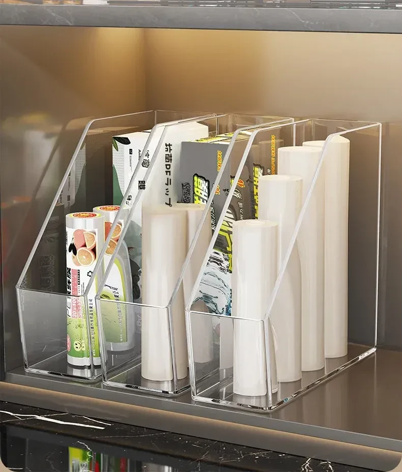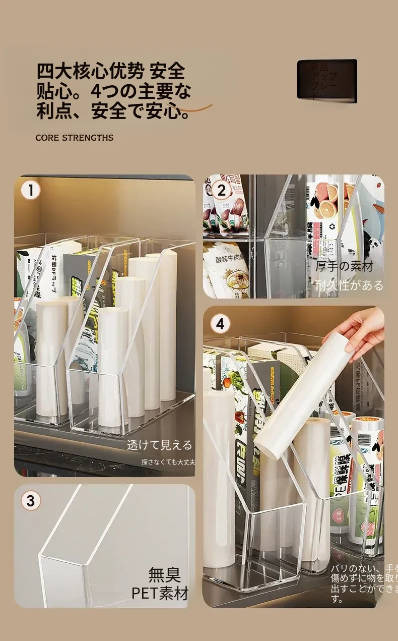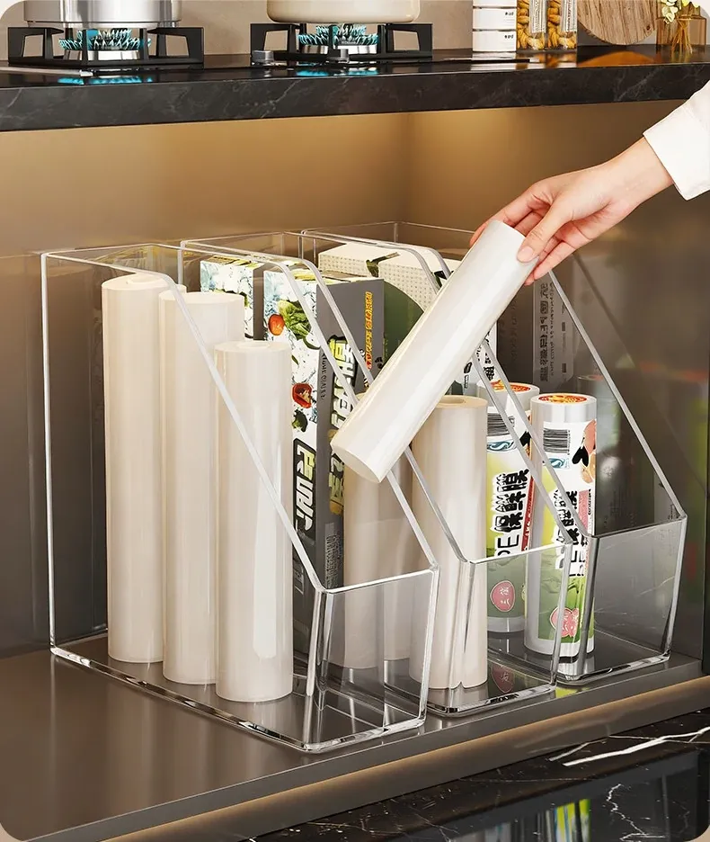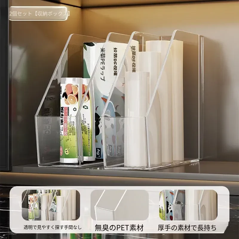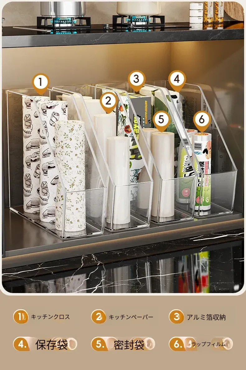 キッチン用ラップ収納ボックス - ゴミ袋整理の必需品!使い捨て密封袋をすっきり収納できる便利なラック。すっきりしたキッチンで、毎日の料理をもっと楽しく!