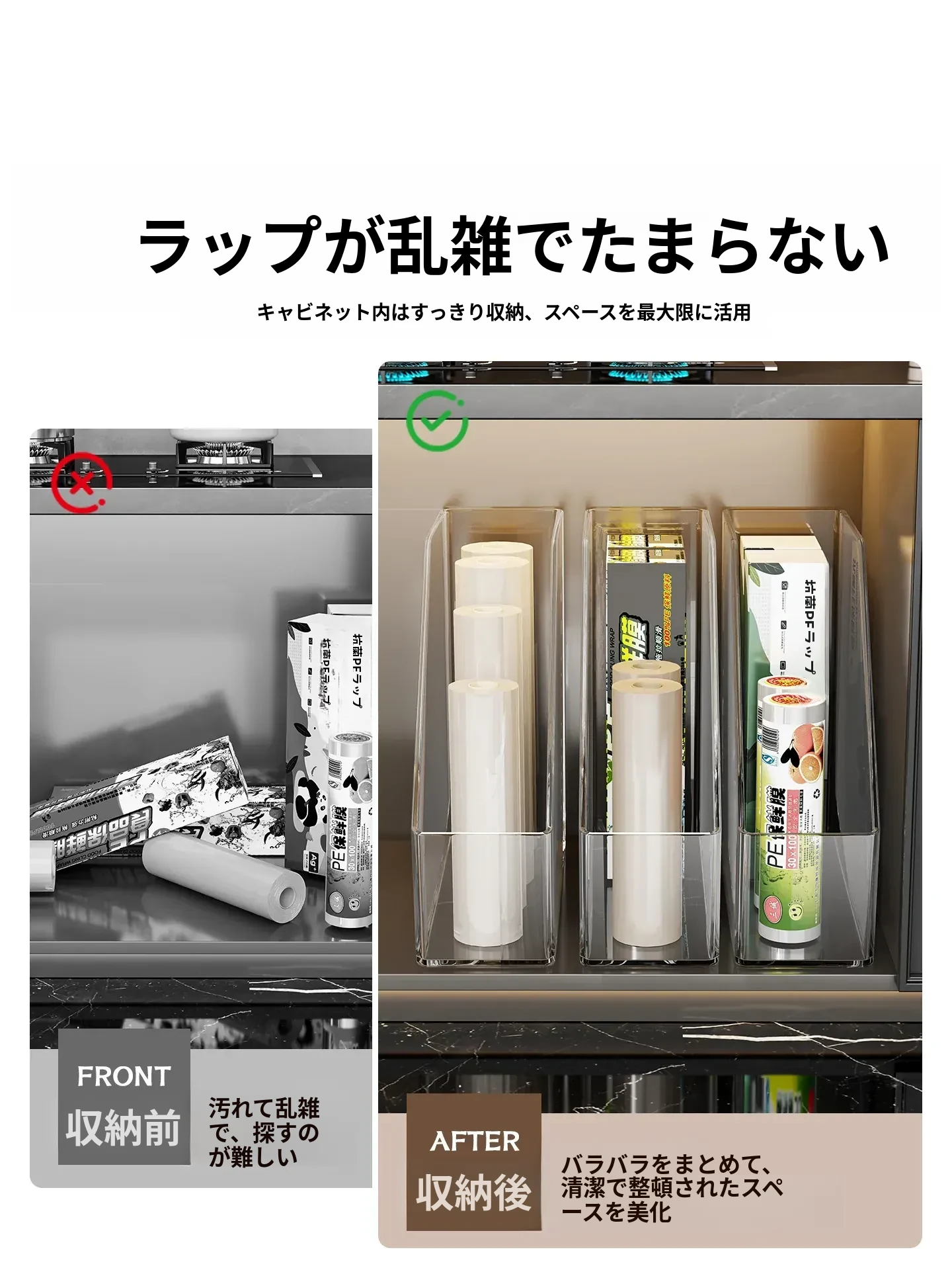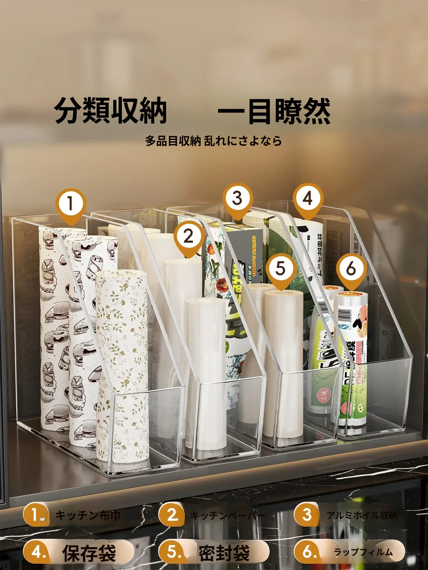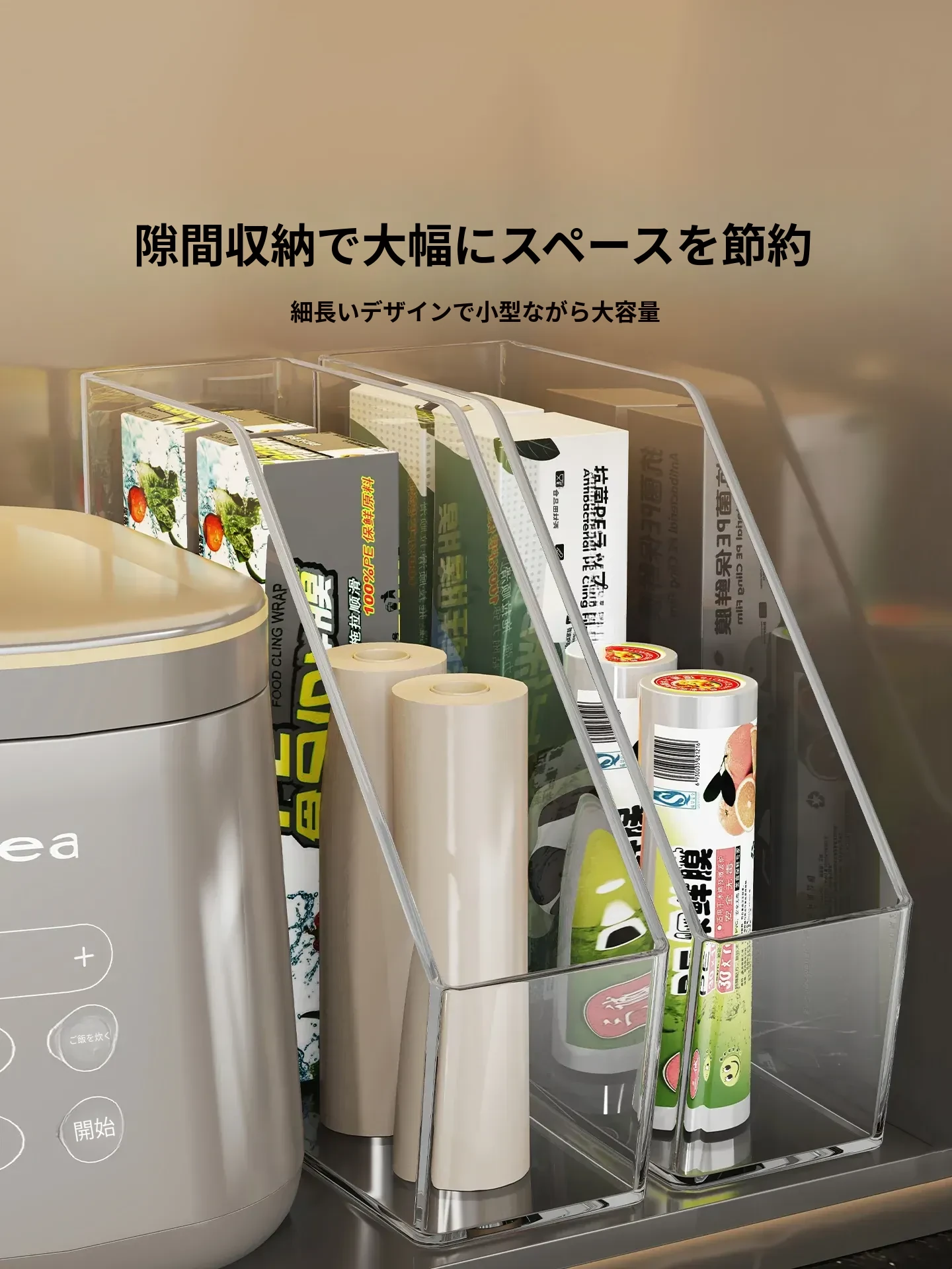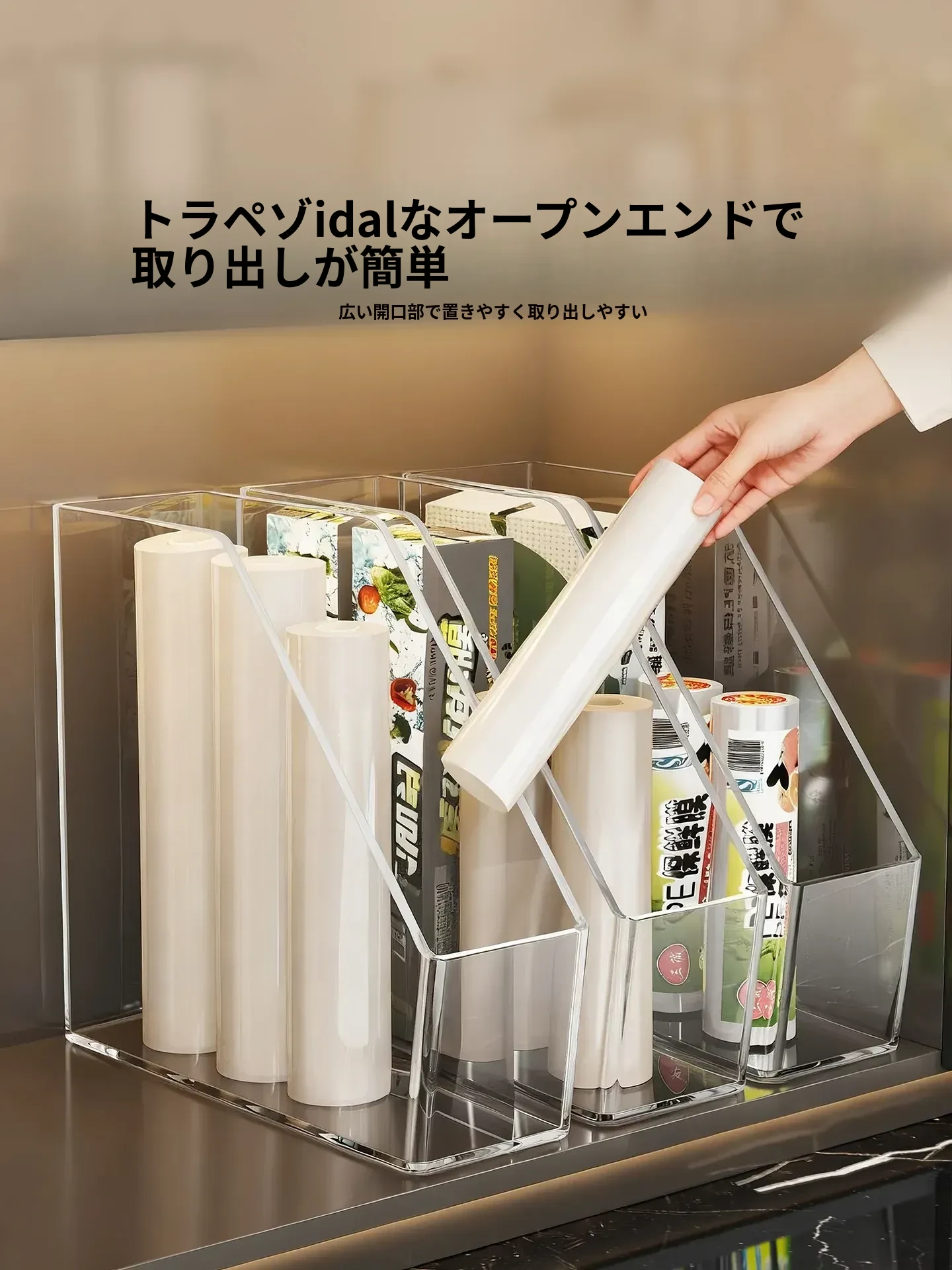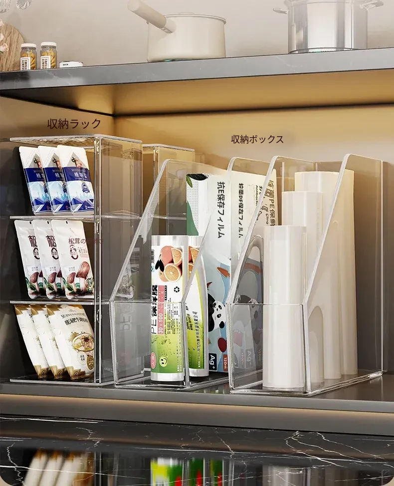 キッチン用ラップ収納ボックス - ゴミ袋整理の必需品!使い捨て密封袋をすっきり収納できる便利なラック。すっきりしたキッチンで、毎日の料理をもっと楽しく!