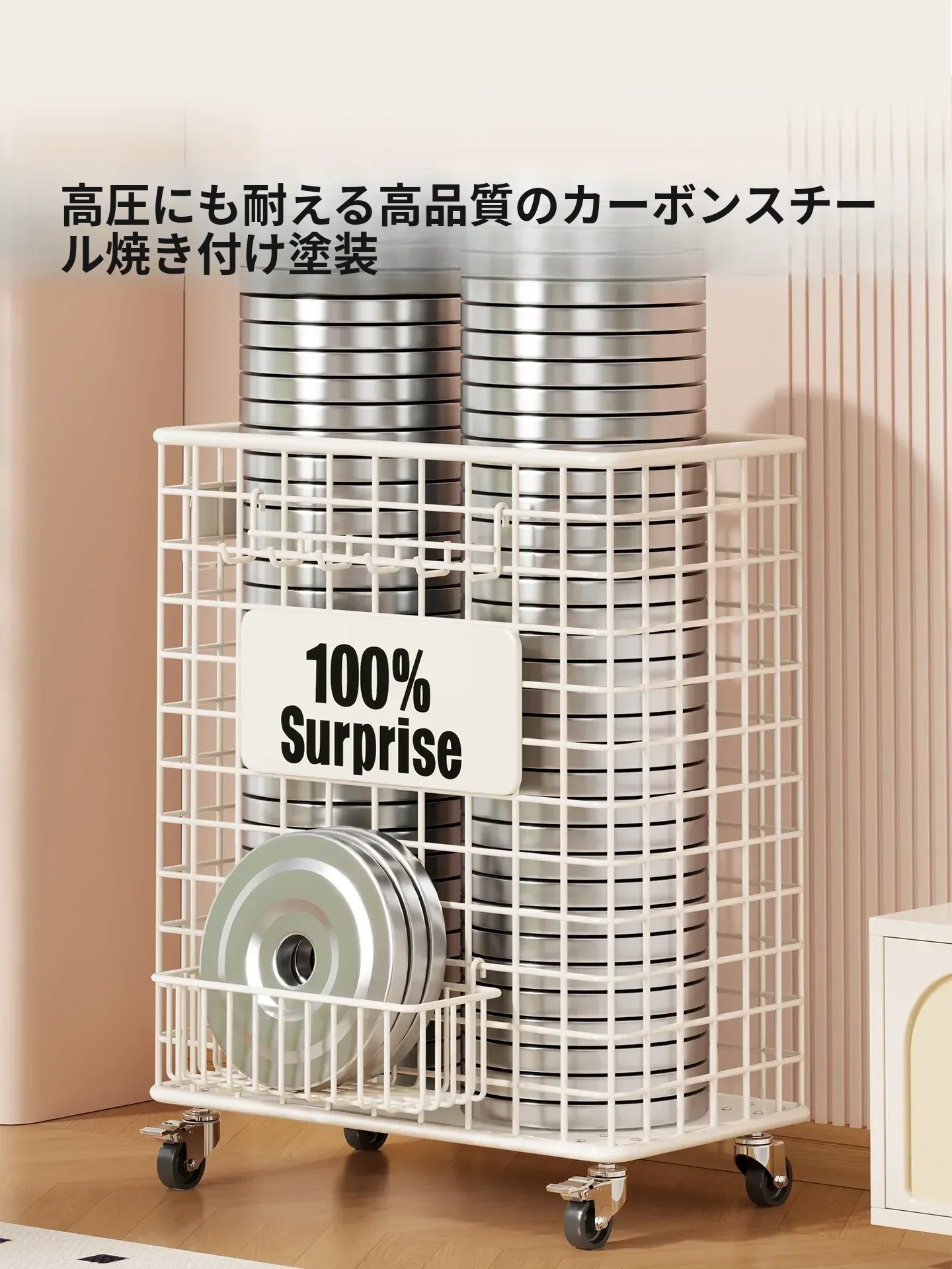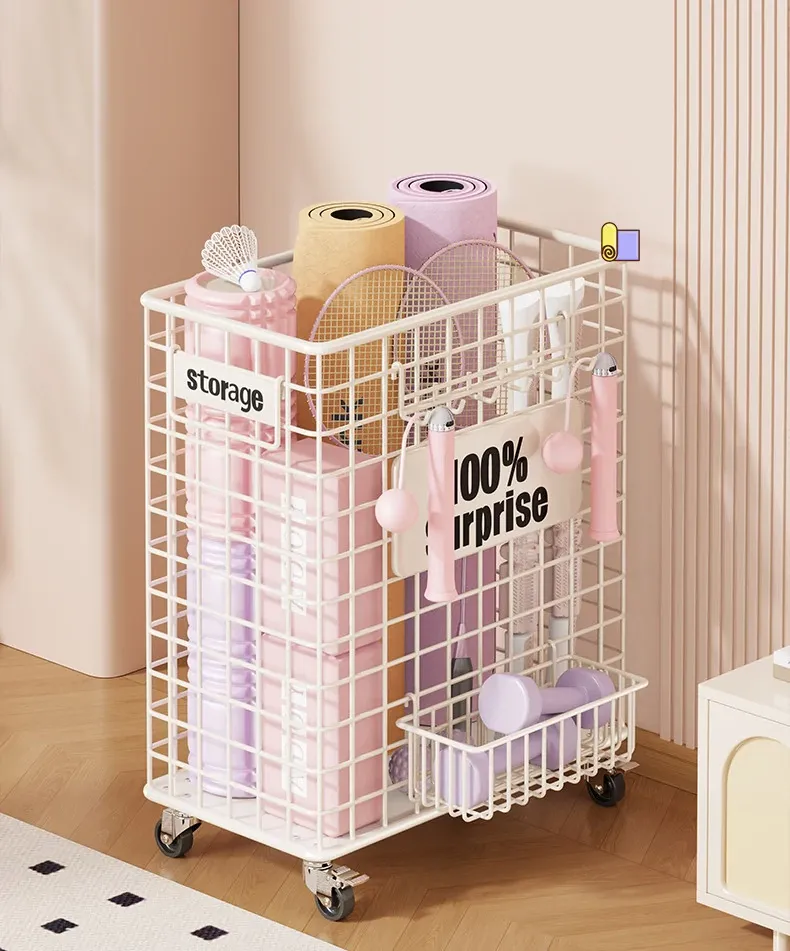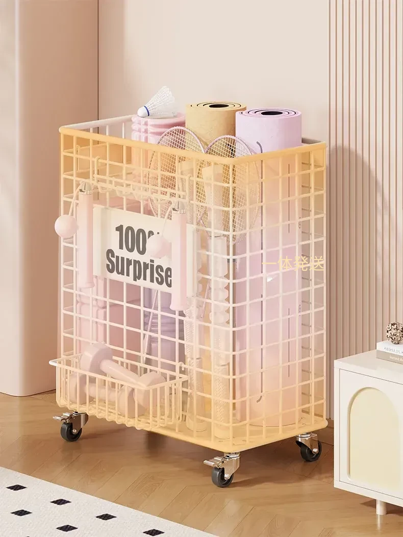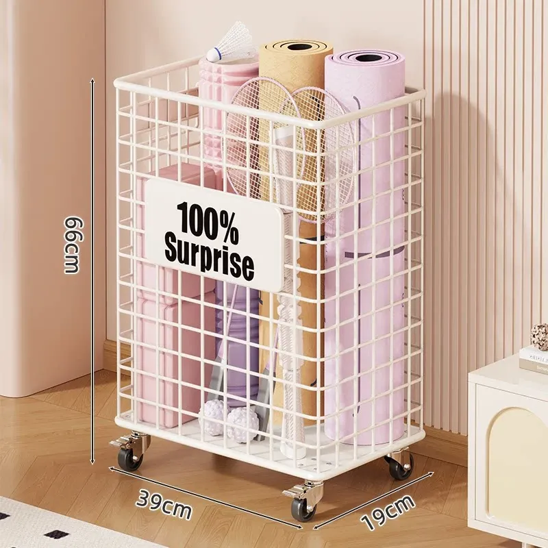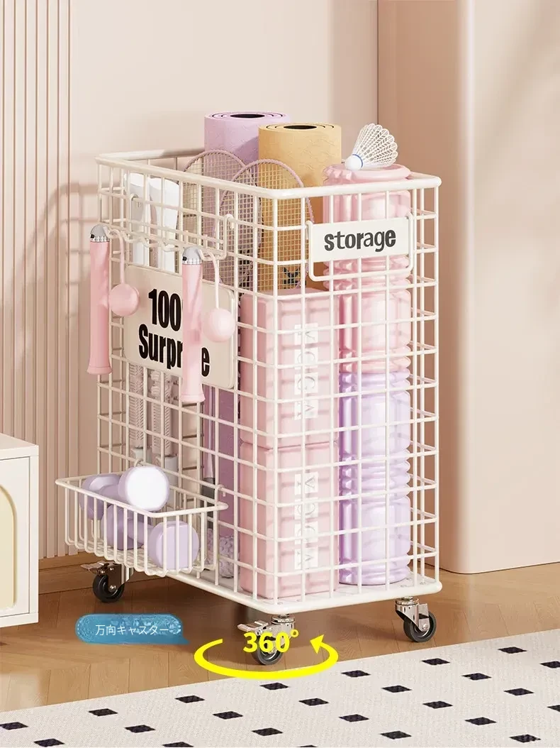 大容量フィットネス器具収納ラック - 移動可能なキャスター付き!バドミントンやヨガマットも楽々収納できる隙間活用のアイテム!家庭での整理整頓に最適です!
