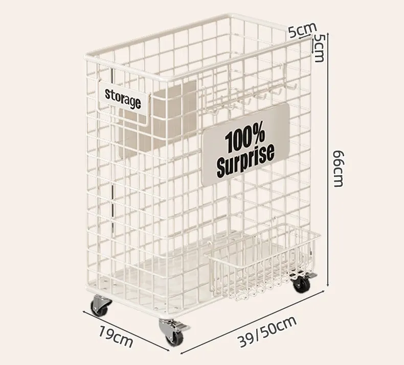 ホワイト小サイズキャスター付き+ハンギングバスケットフック