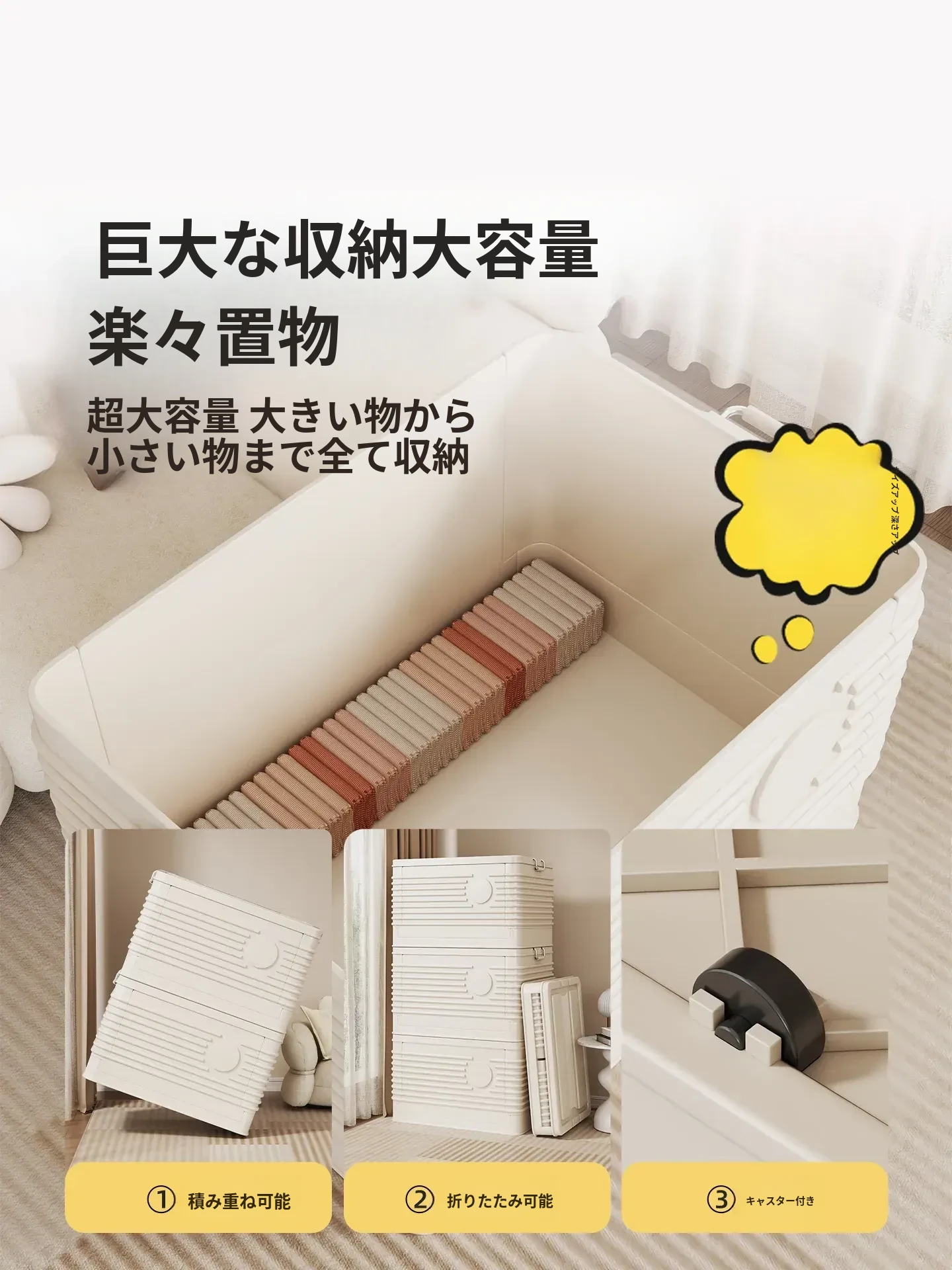 大容量折りたたみ収納ボックス - 蓋付きで本やおもちゃ、衣類までスッキリ整理!家庭に最適な収納ケースで、スペースを有効活用しましょう!