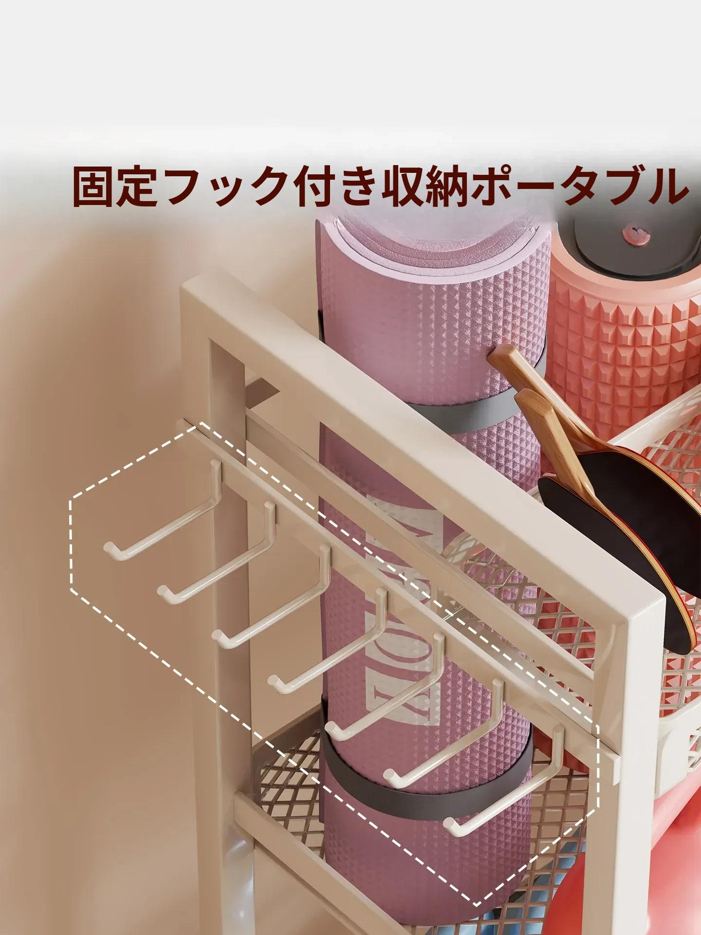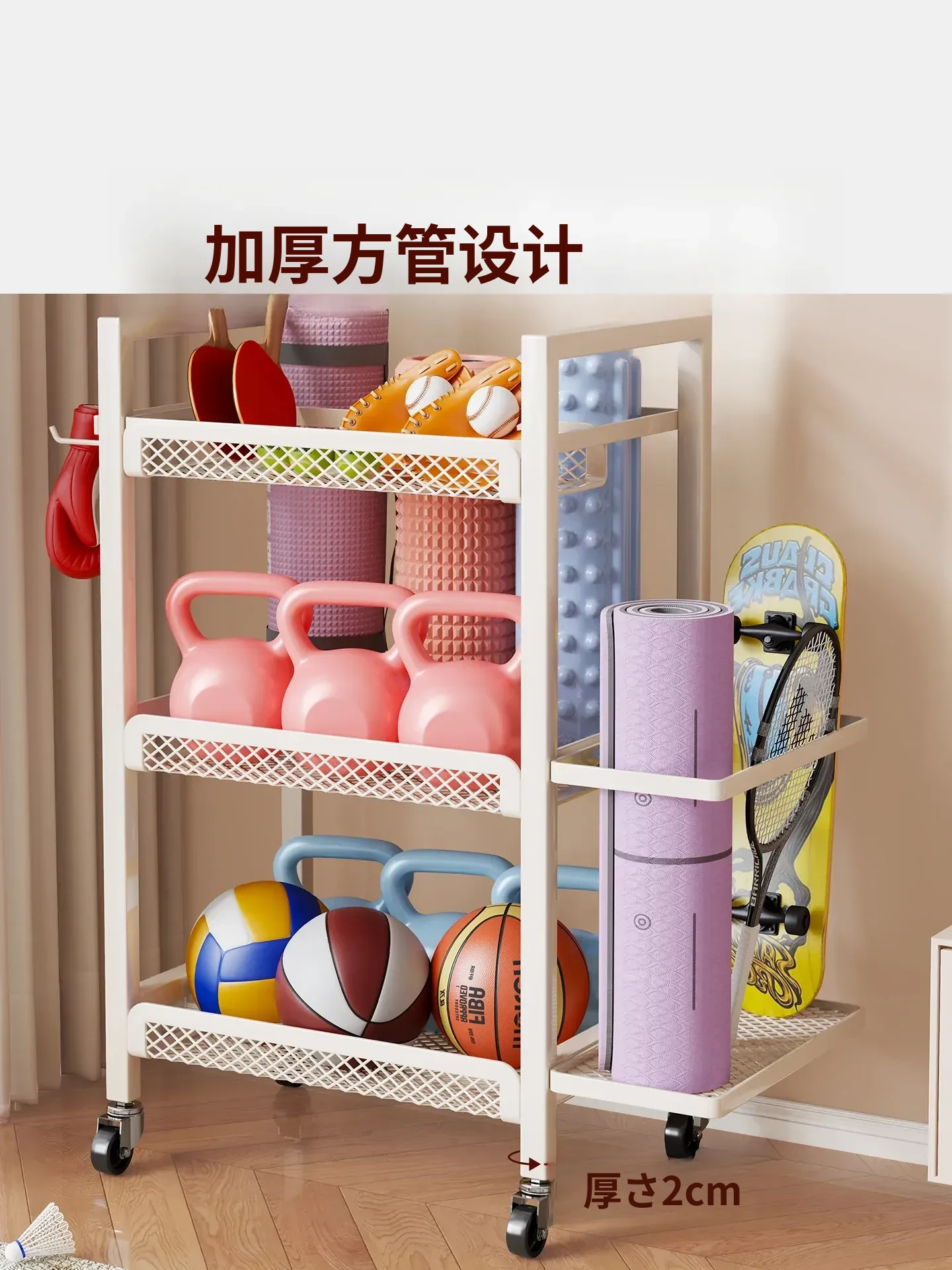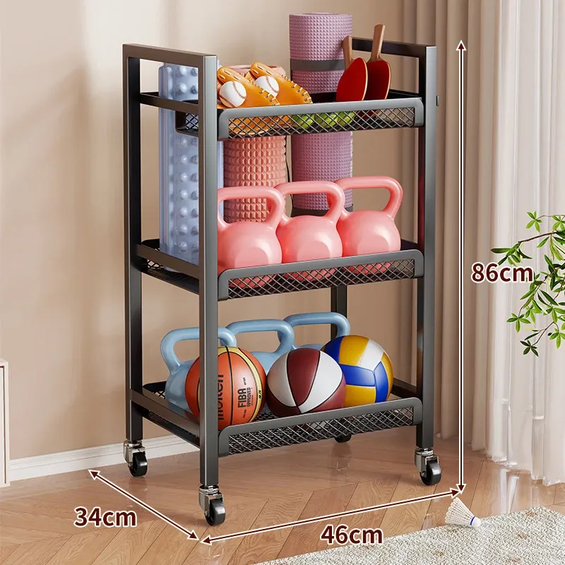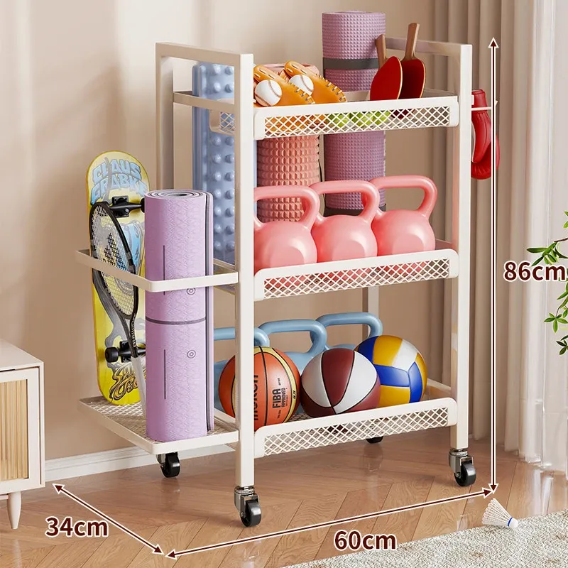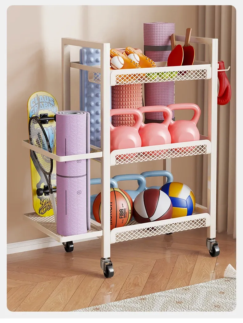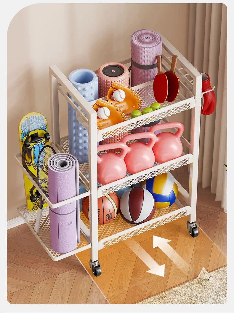 家庭用大容量フィットネス器具収納ラック - 移動可能なヨガマット、ダンベル、ケトルベルなどの運動道具をスッキリ整理!あなたのトレーニングスペースを効率的に活用しましょう!