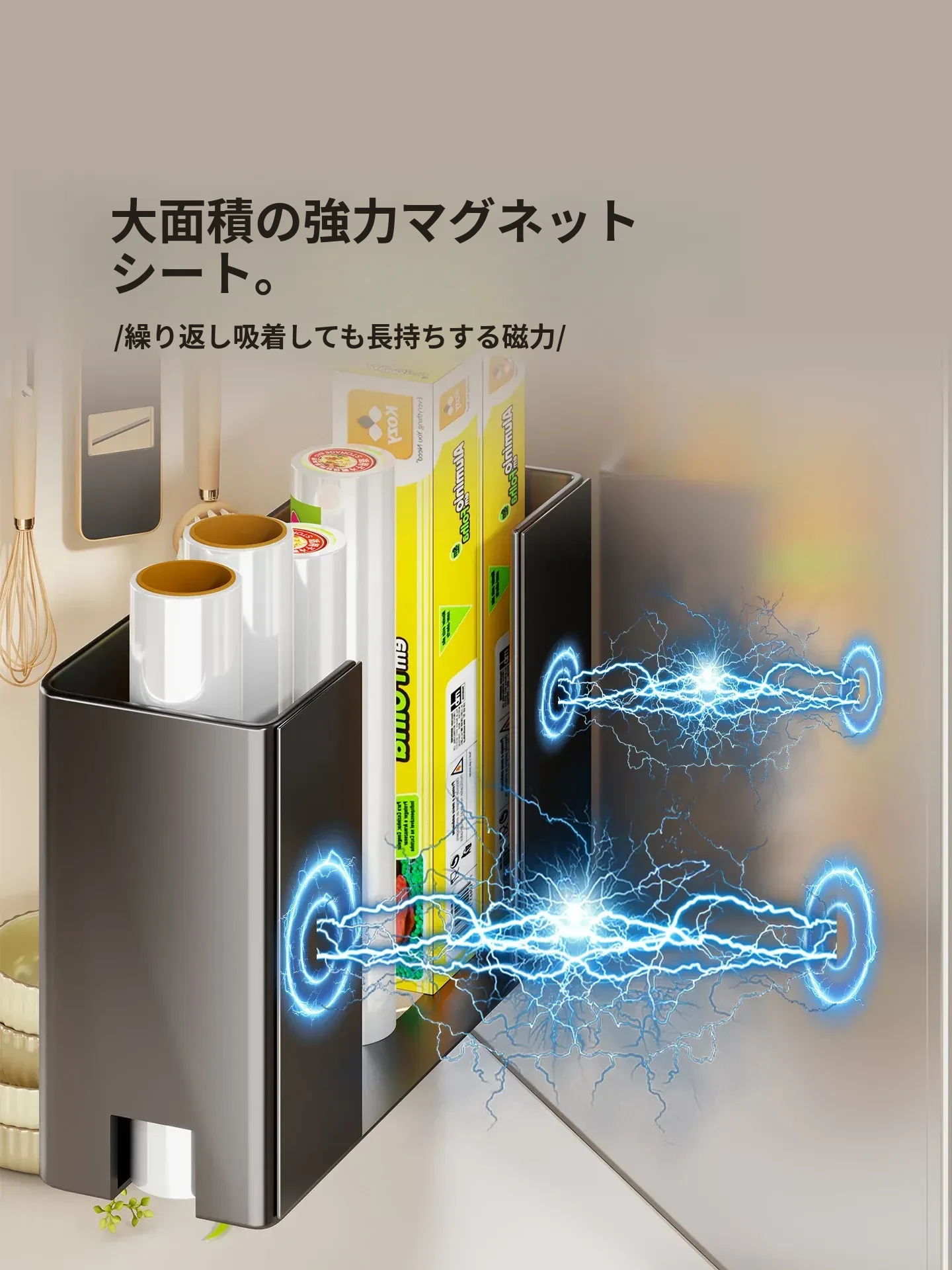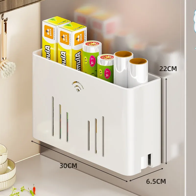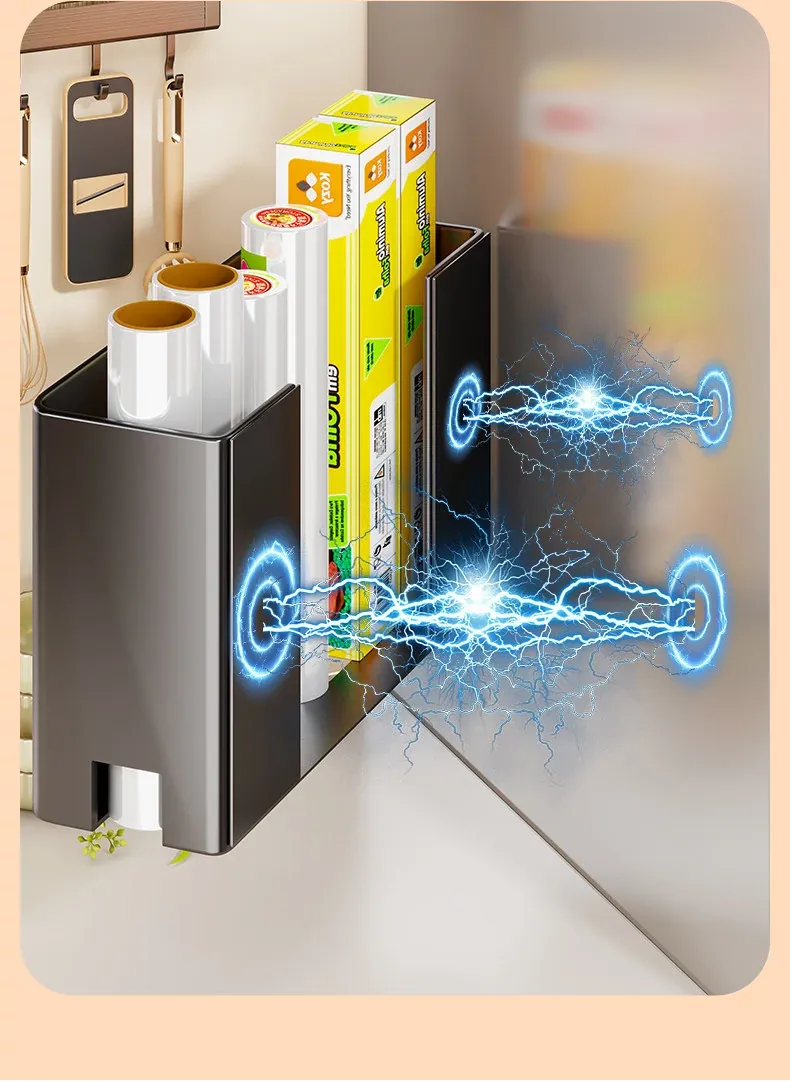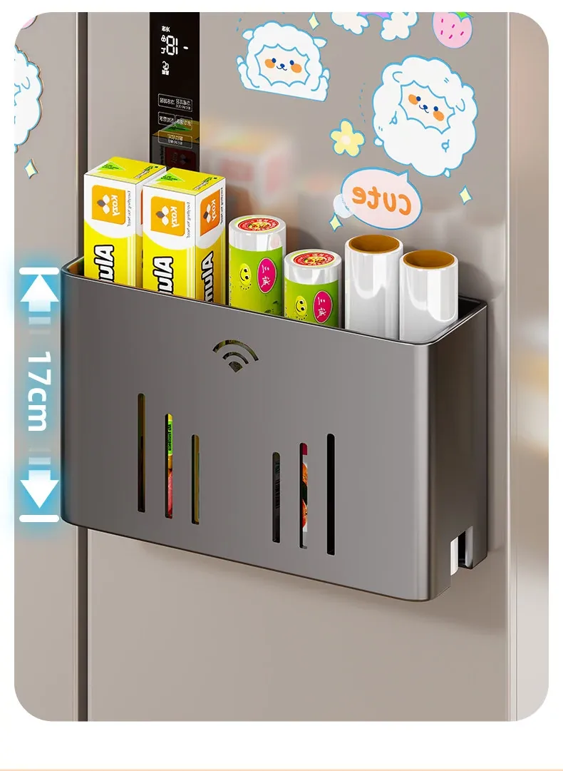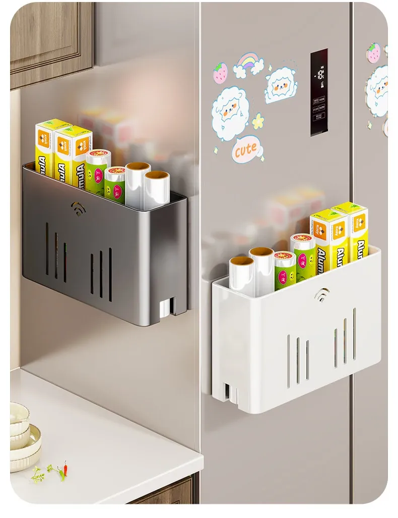 マグネット収納棚・トイレットペーパーラック - 冷蔵庫サイド用ティッシュ収納・ラップストレージ - 穴あけ不要の便利なサイド収納!キッチンやリビングをスッキリ整理整頓!