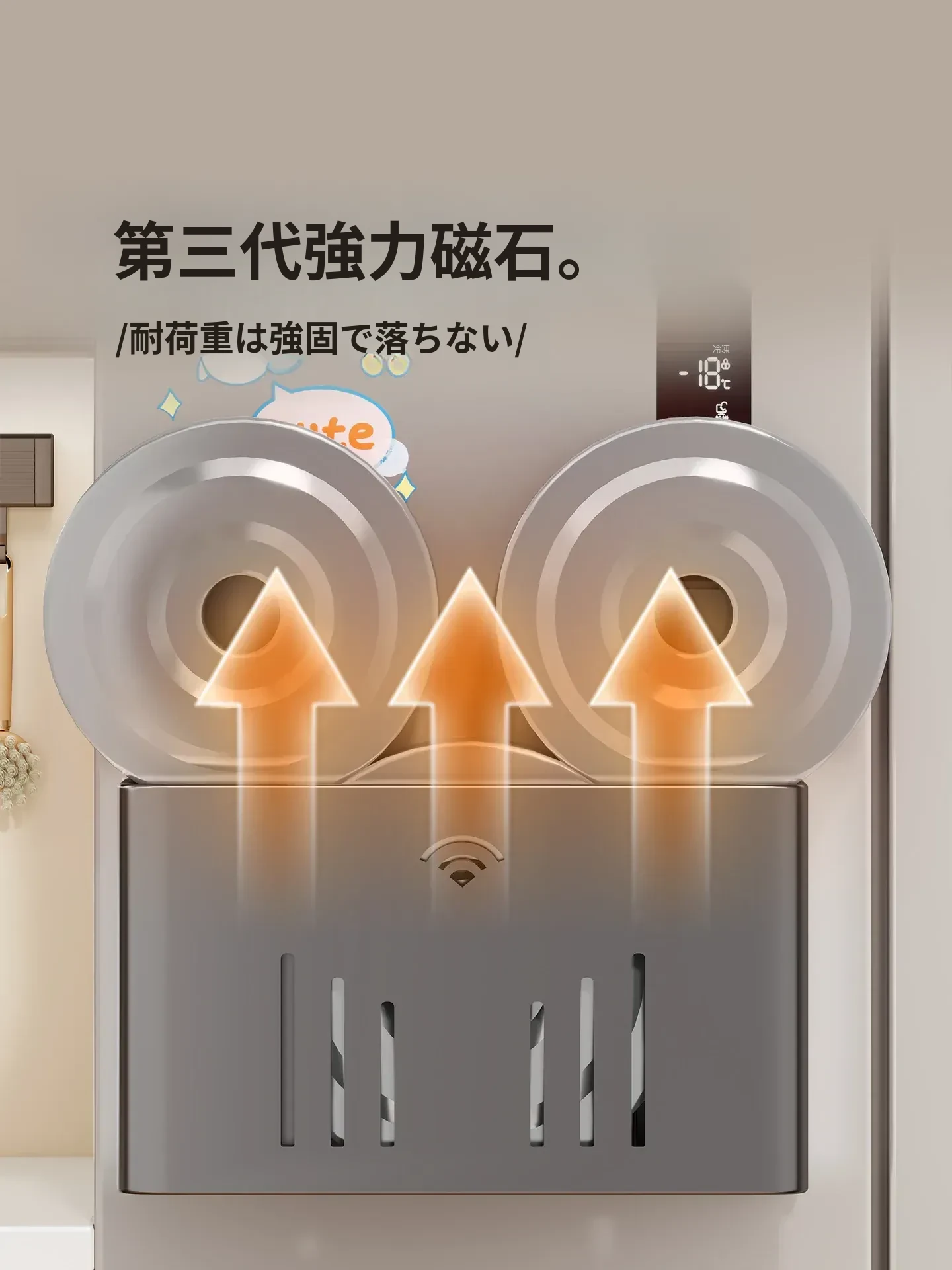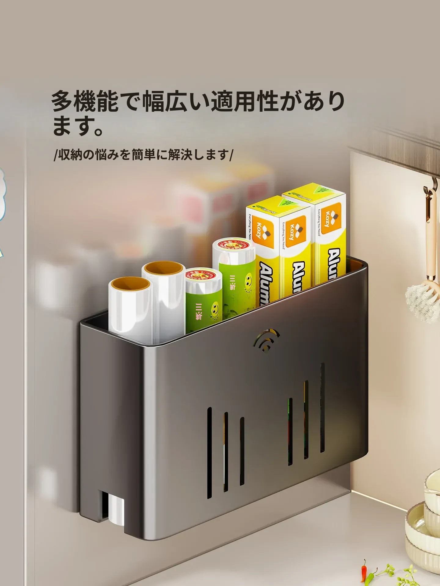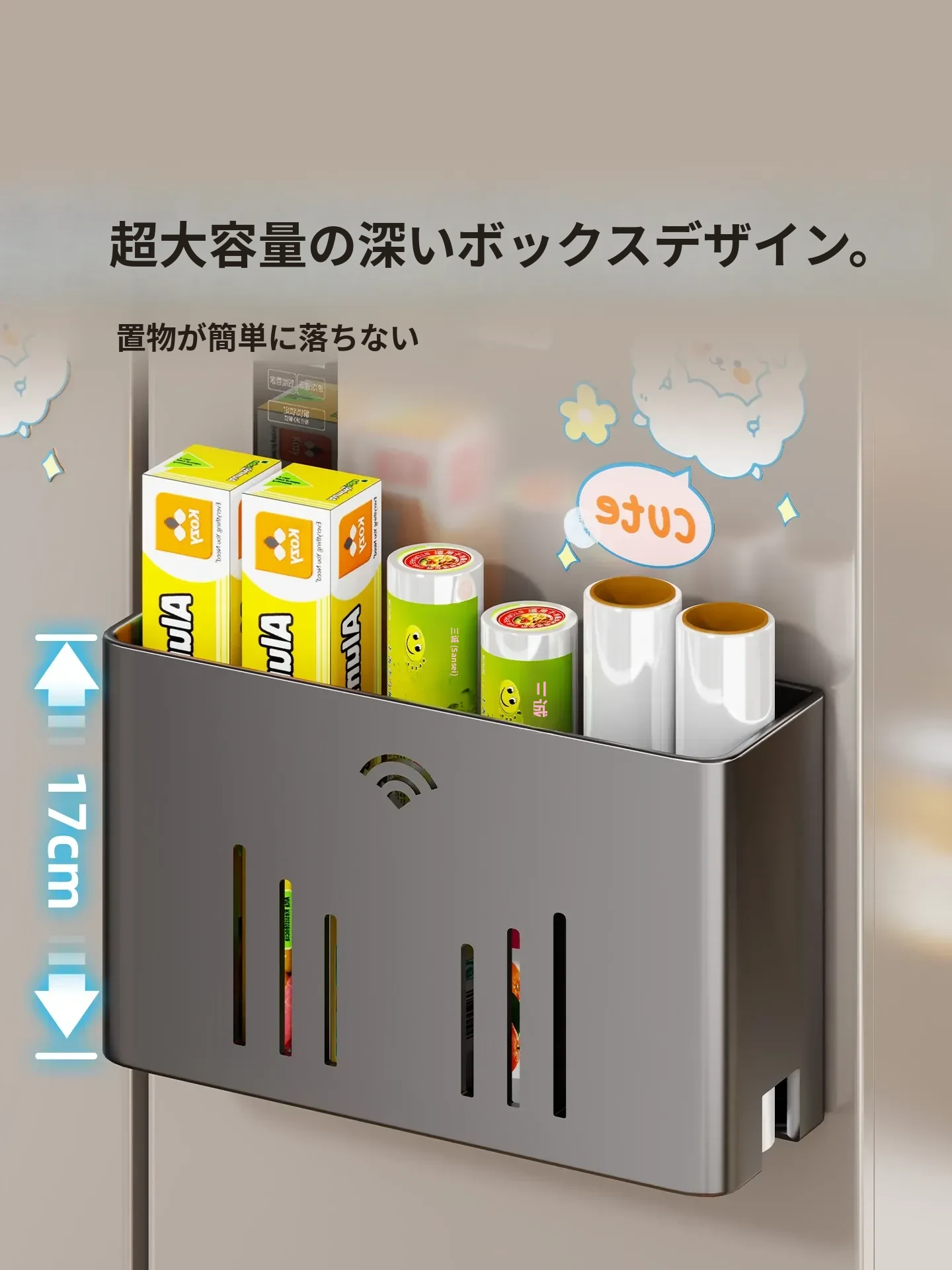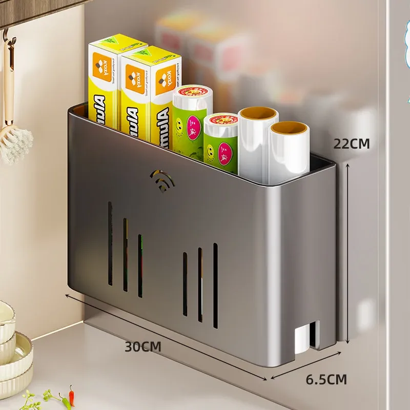 マグネット収納棚・トイレットペーパーラック - 冷蔵庫サイド用ティッシュ収納・ラップストレージ - 穴あけ不要の便利なサイド収納!キッチンやリビングをスッキリ整理整頓!