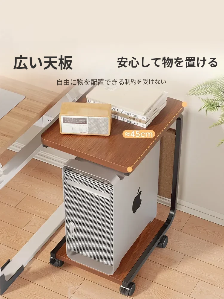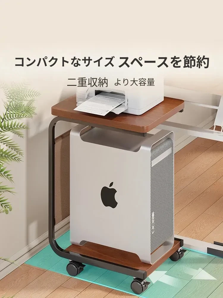 台式パソコン用モバイルプリンター収納ラック - キャスター付き主機ケースベース一体型収納ラックで、便利さと整理整頓を実現!