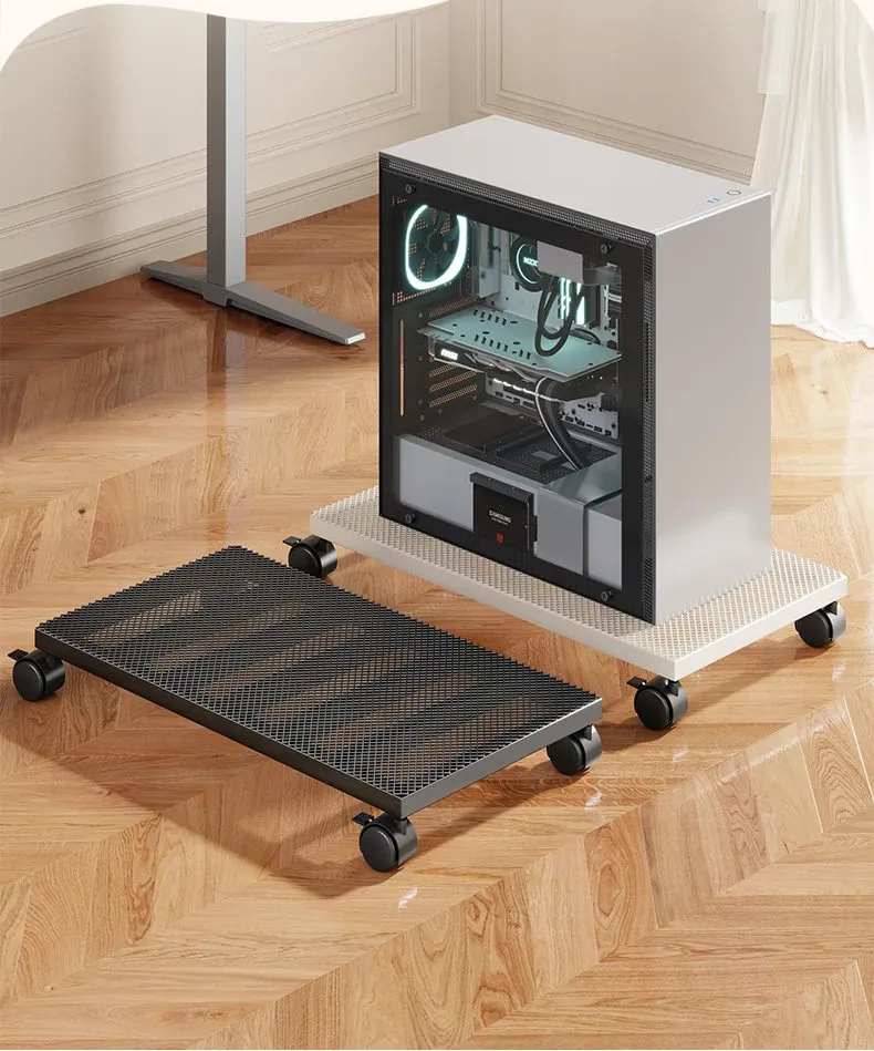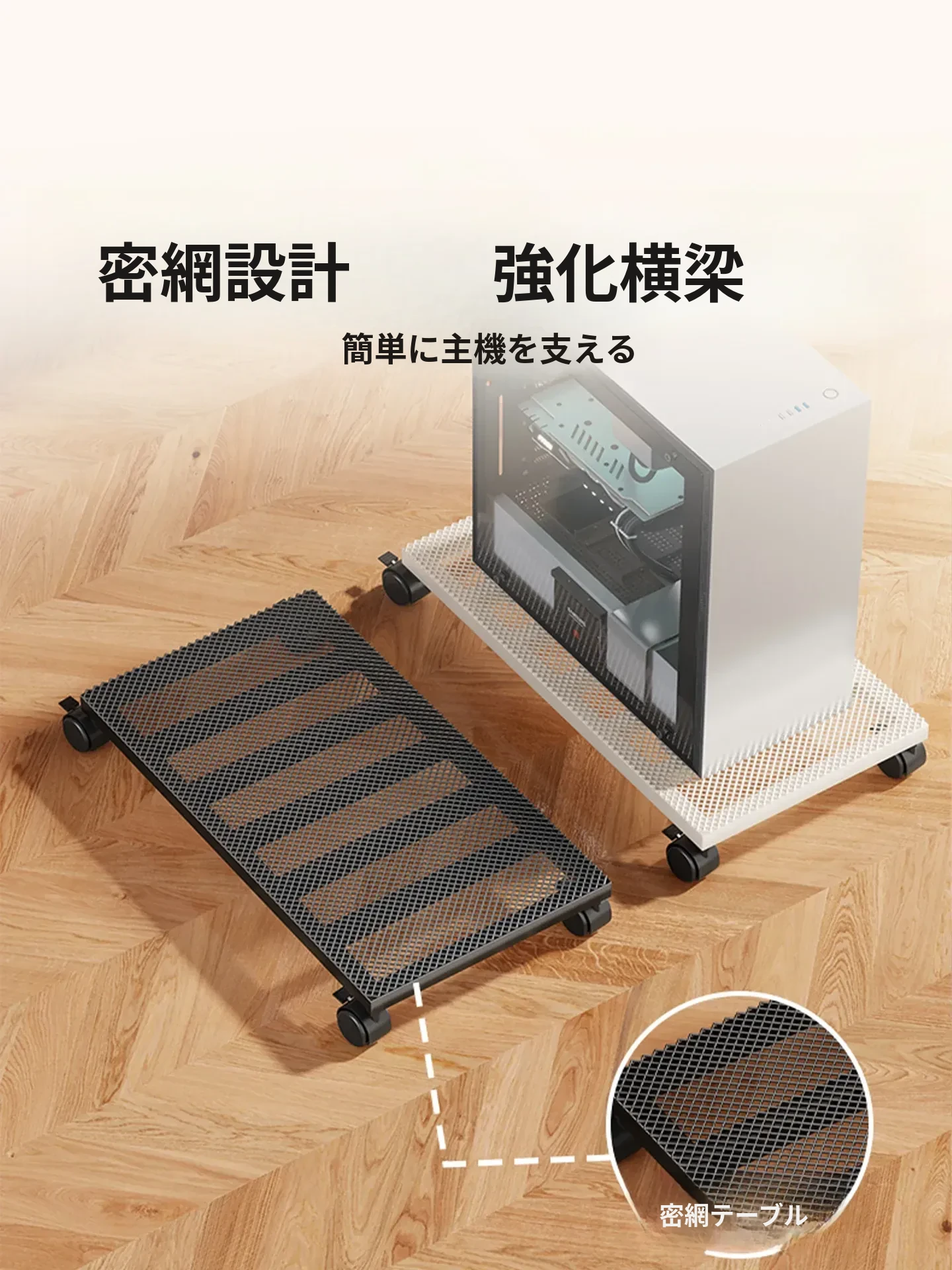 オフィス用キャスター付きPCケーススタンド - デスク下にぴったり収まる、移動も簡単な便利な収納ラック!