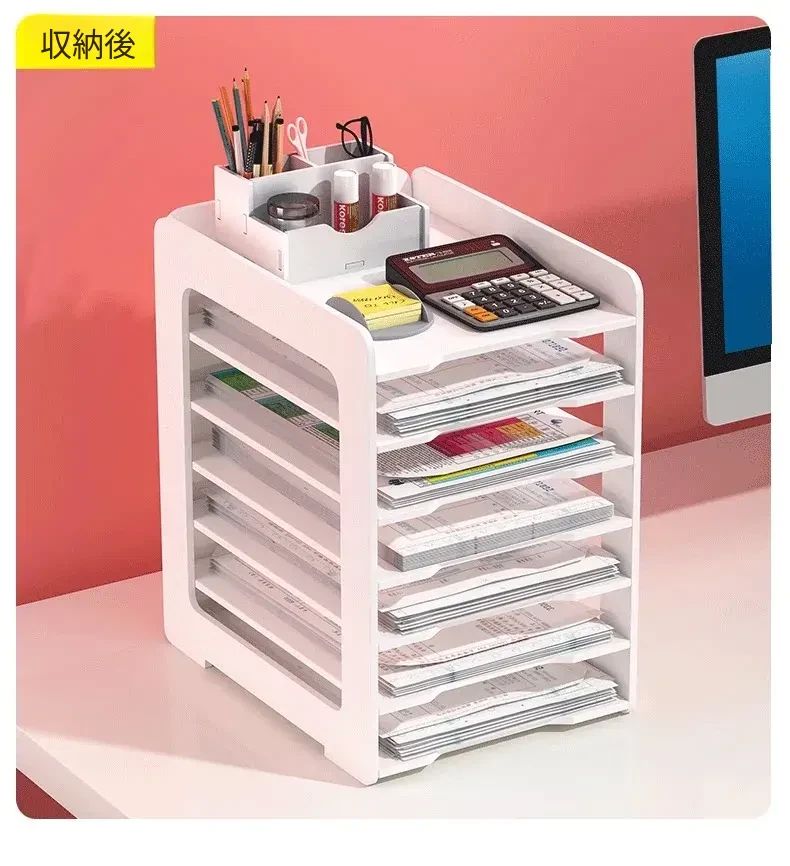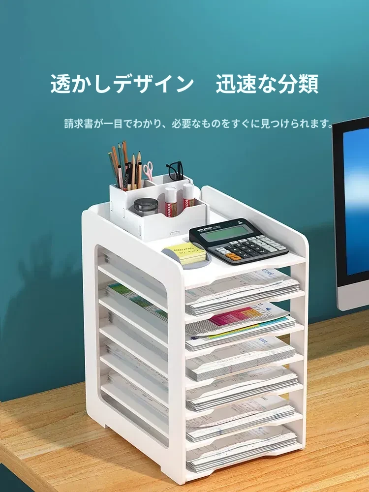 領収書整理ボックス - 会計事務所に最適!書類をスッキリ整理できる多段収納ラック。経費精算やデスク周りを効率的にサポートする、便利でスタイリッシュなアイテムです。