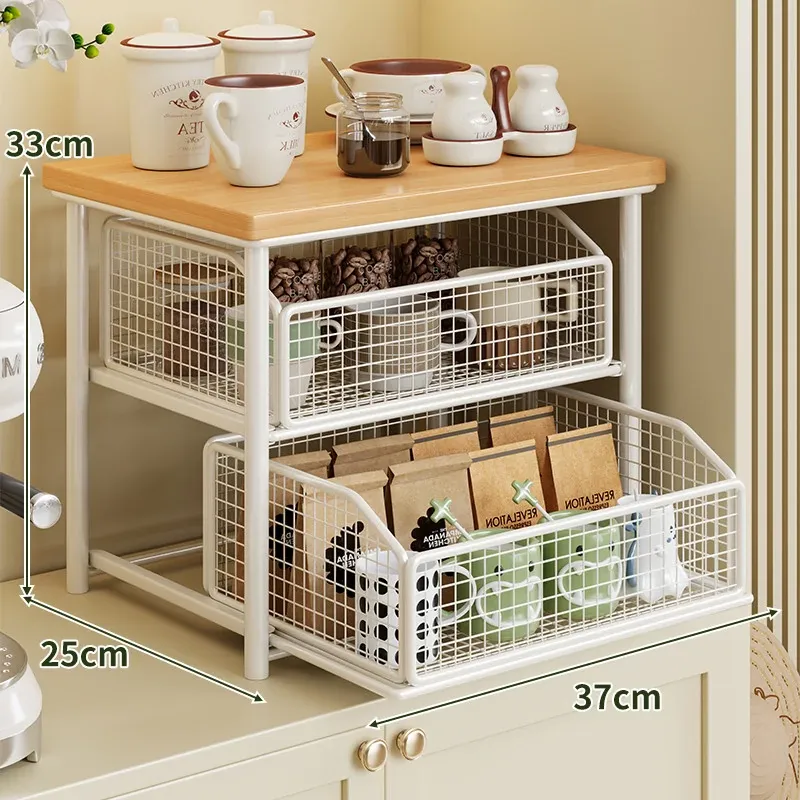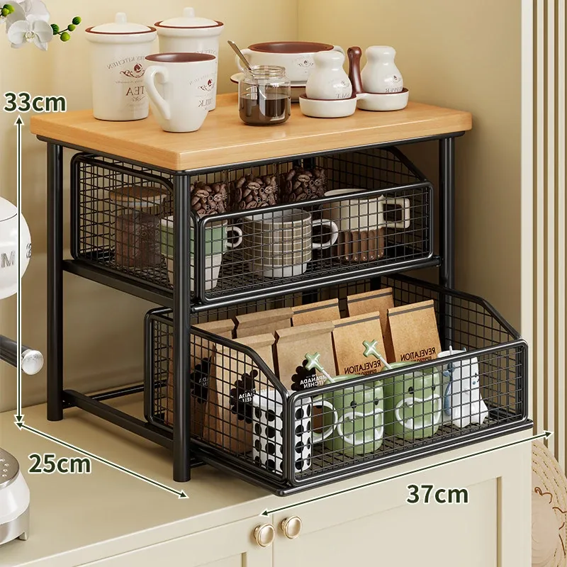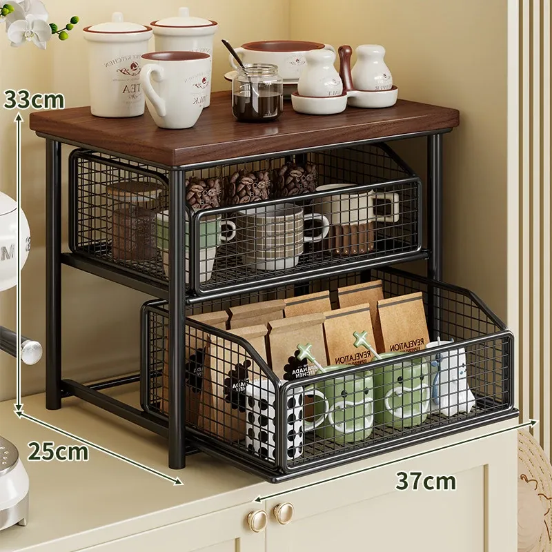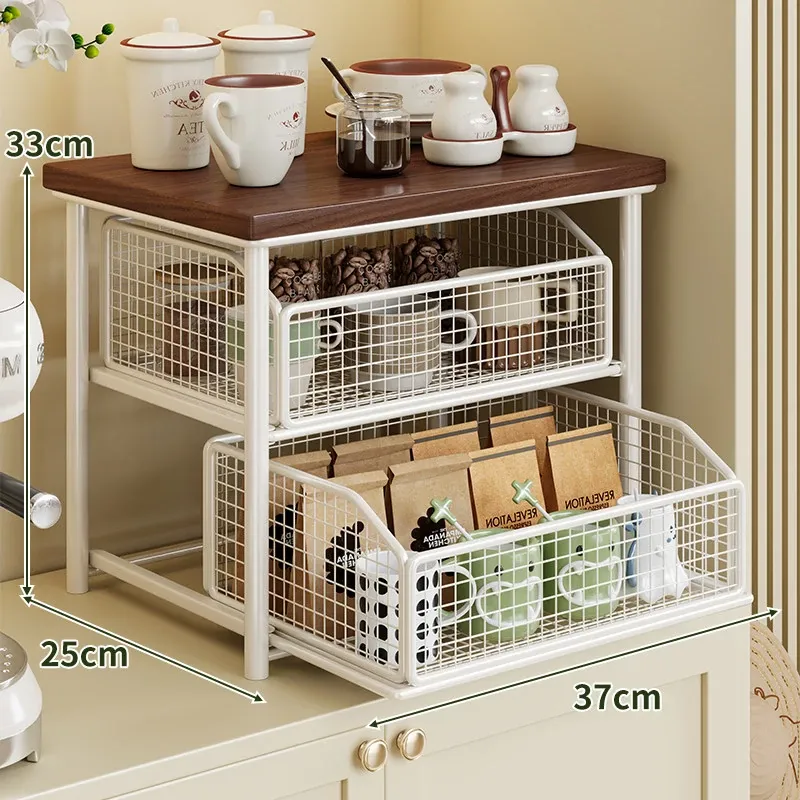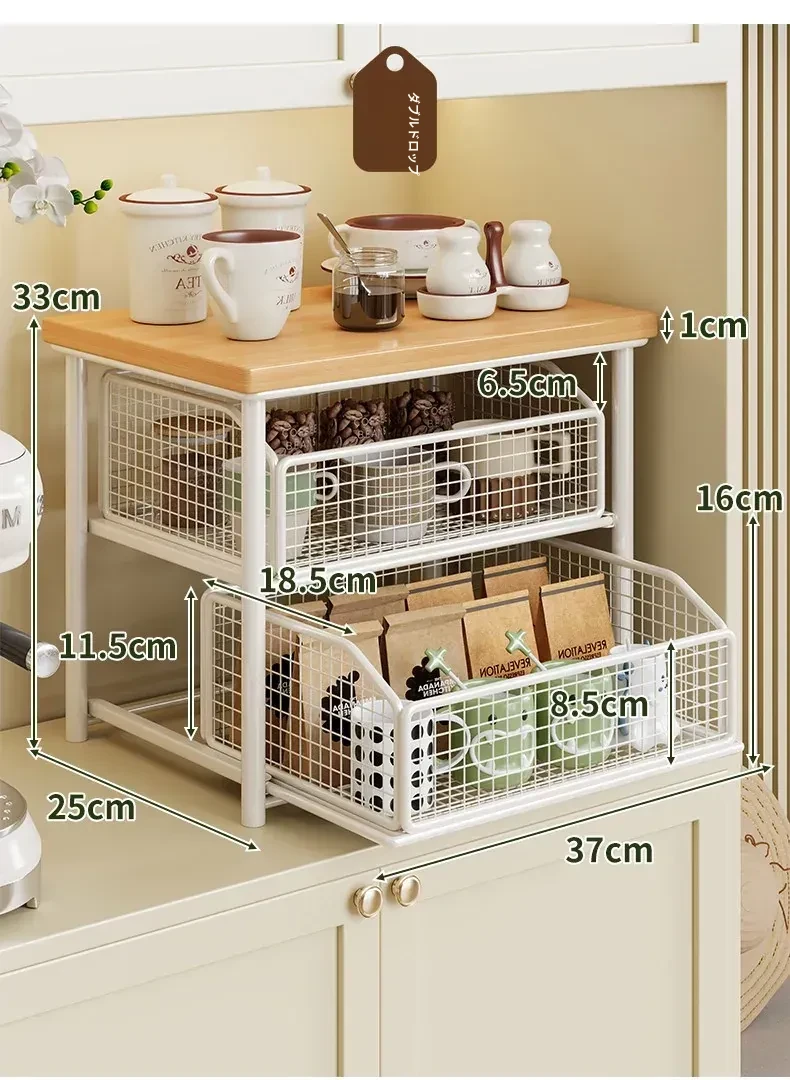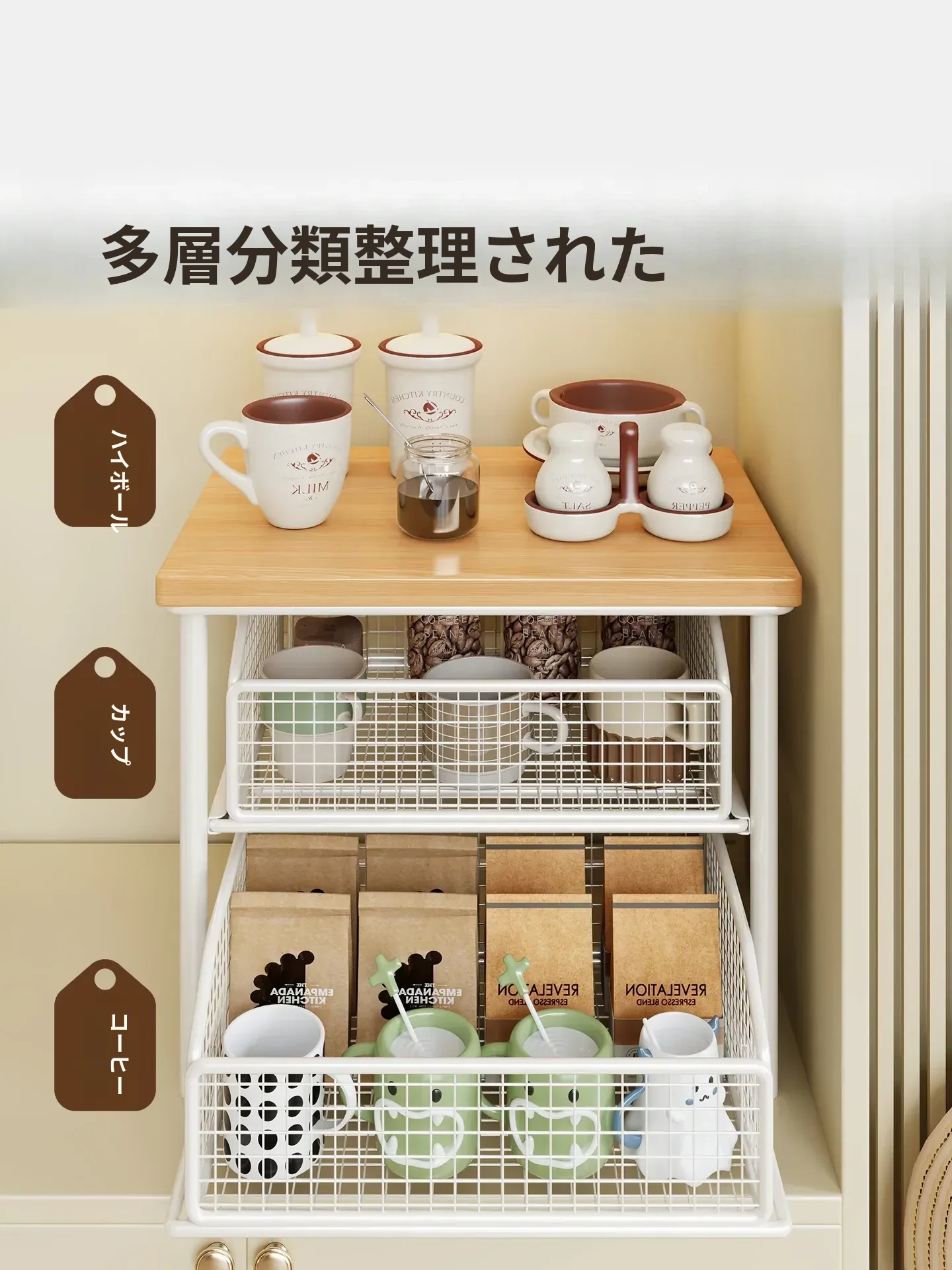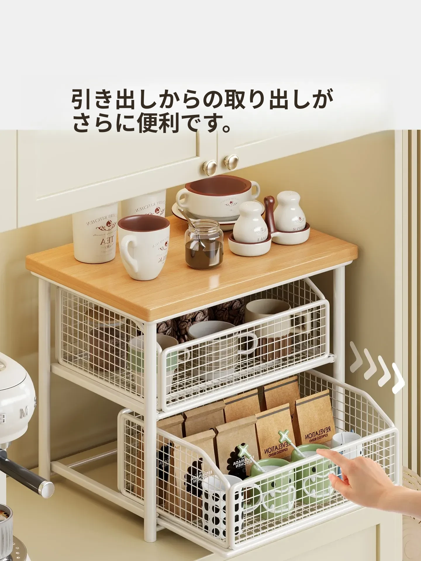 デスクトップ収納ラック|引き出し式の多機能スナックラック|テーブル整理に最適な層状キャビネット|おしゃれで実用的な収納ソリューション!
