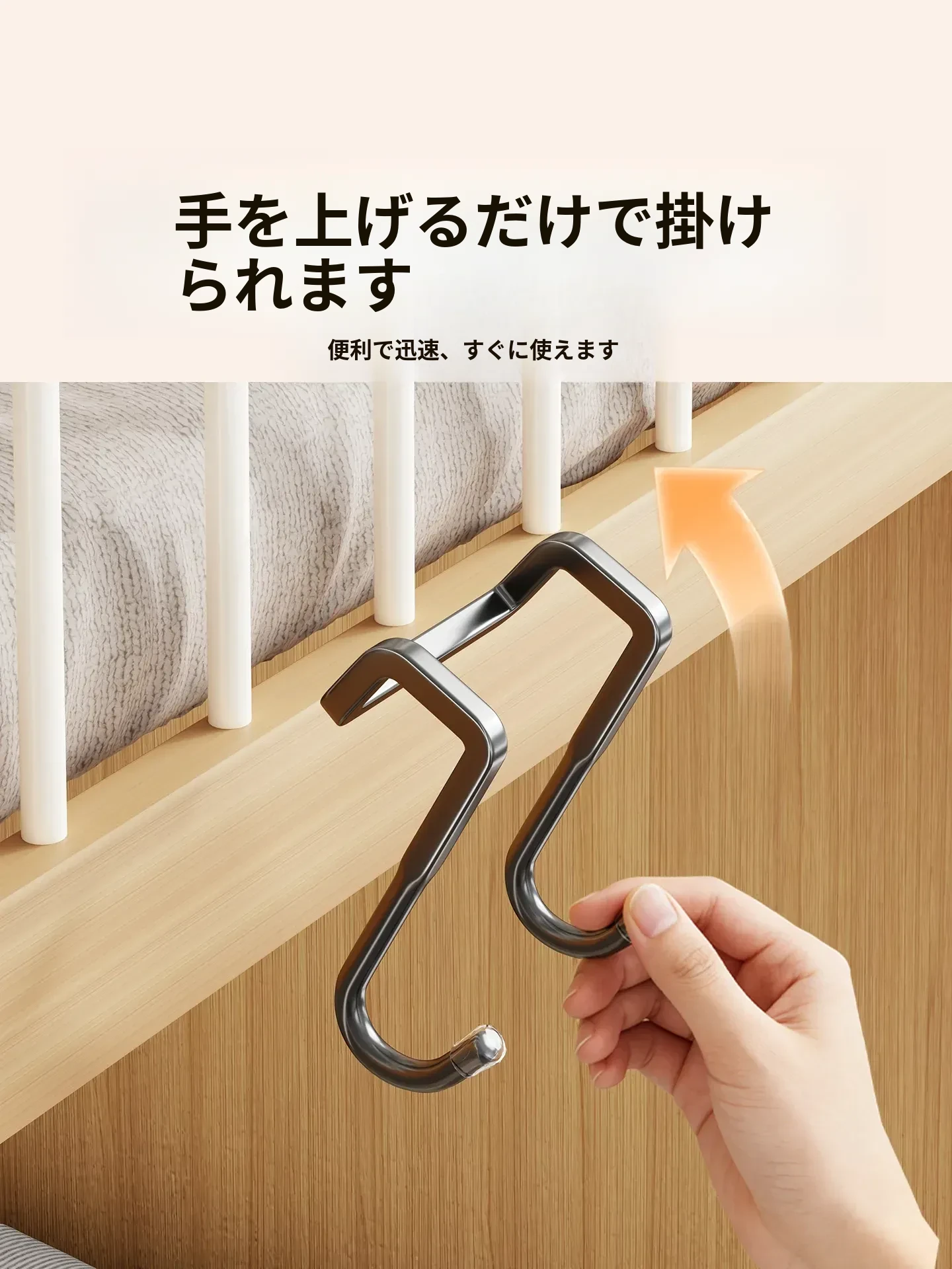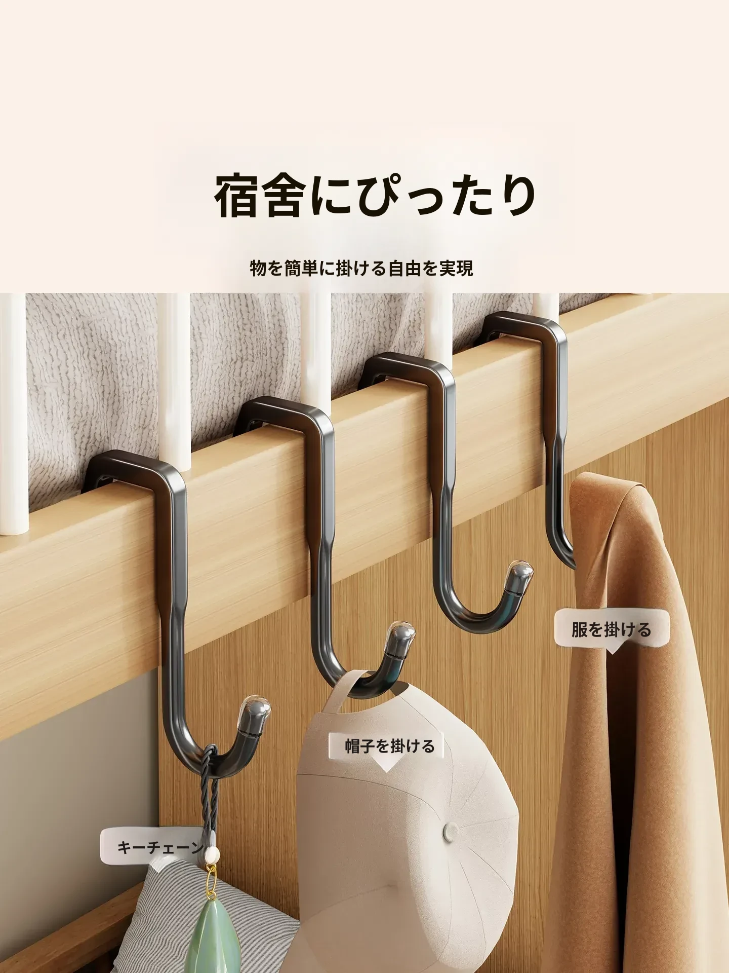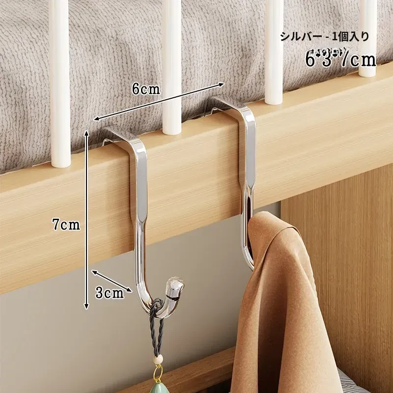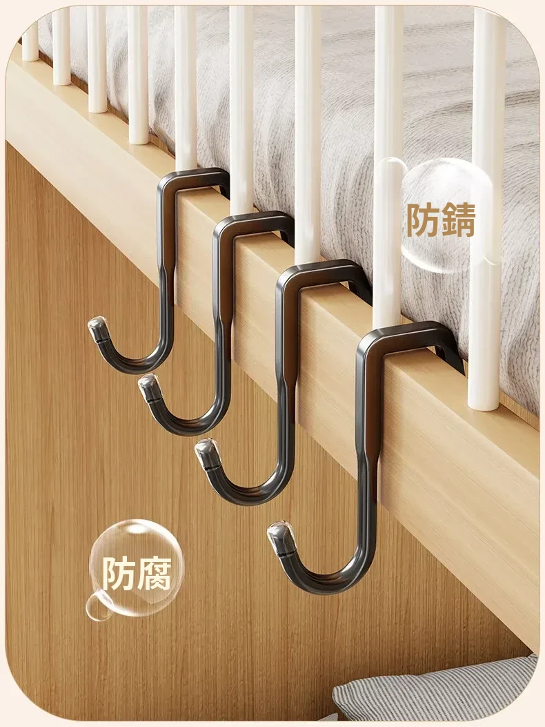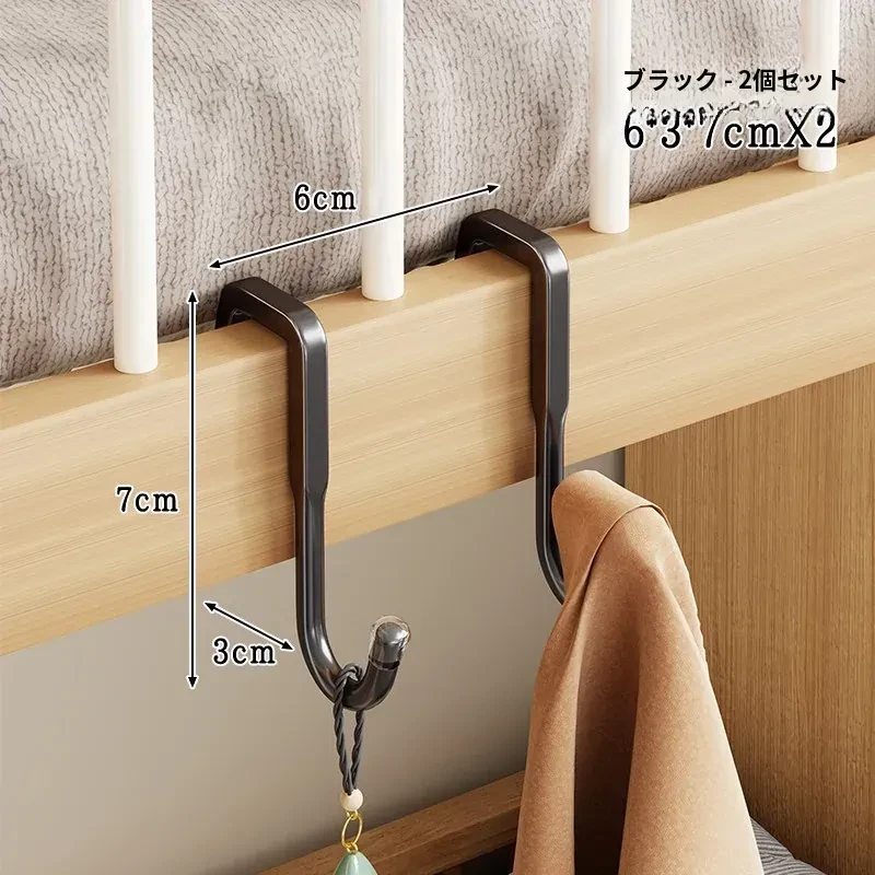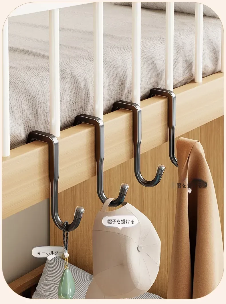 寮の上段にぴったり!多機能衣類ハンガー&フック、ベッドサイドの収納スペースに最適。バッグや鍵の整理にも便利な家庭用ハンギングラック。スッキリとしたお部屋作りをサポートします!