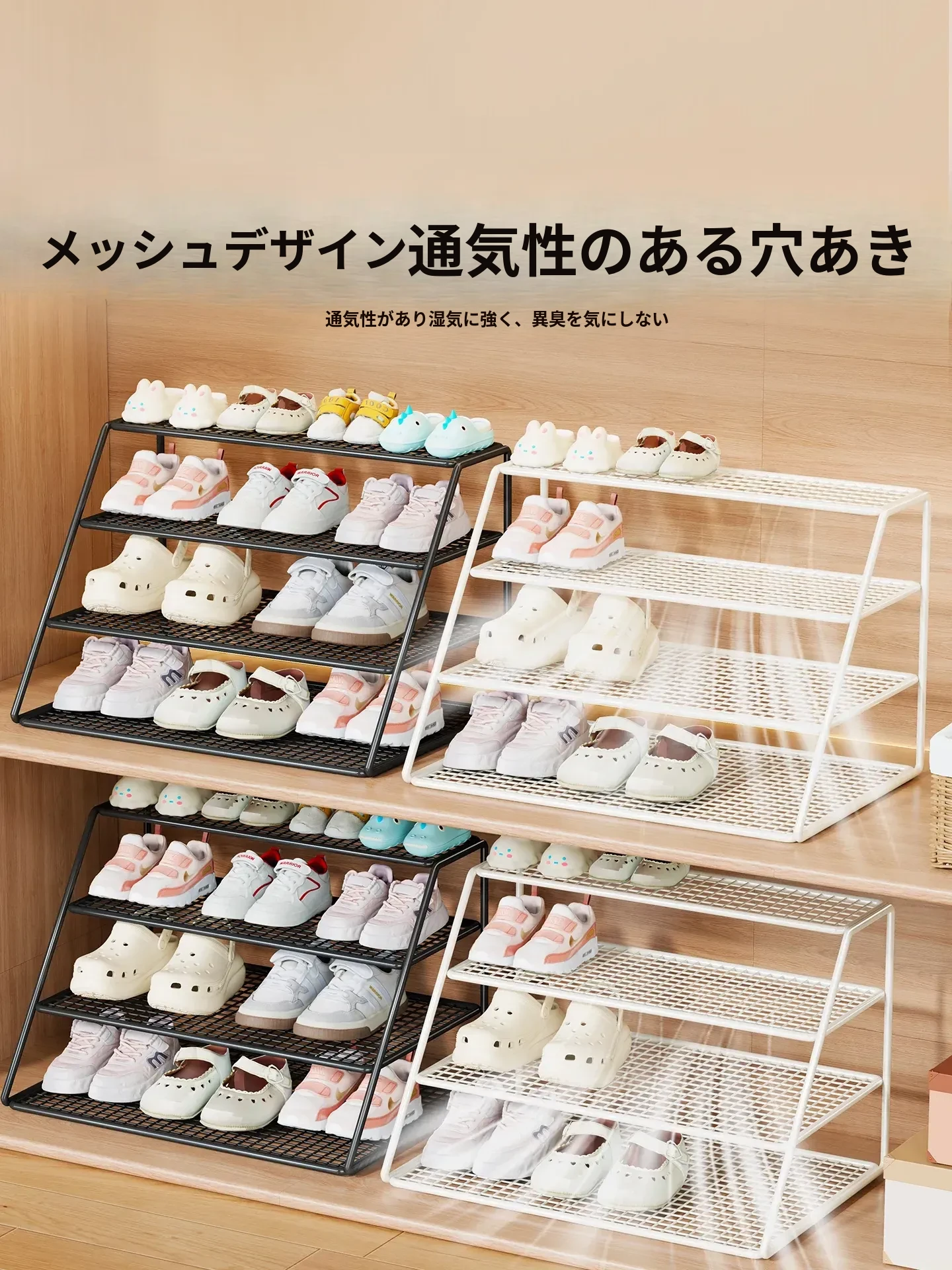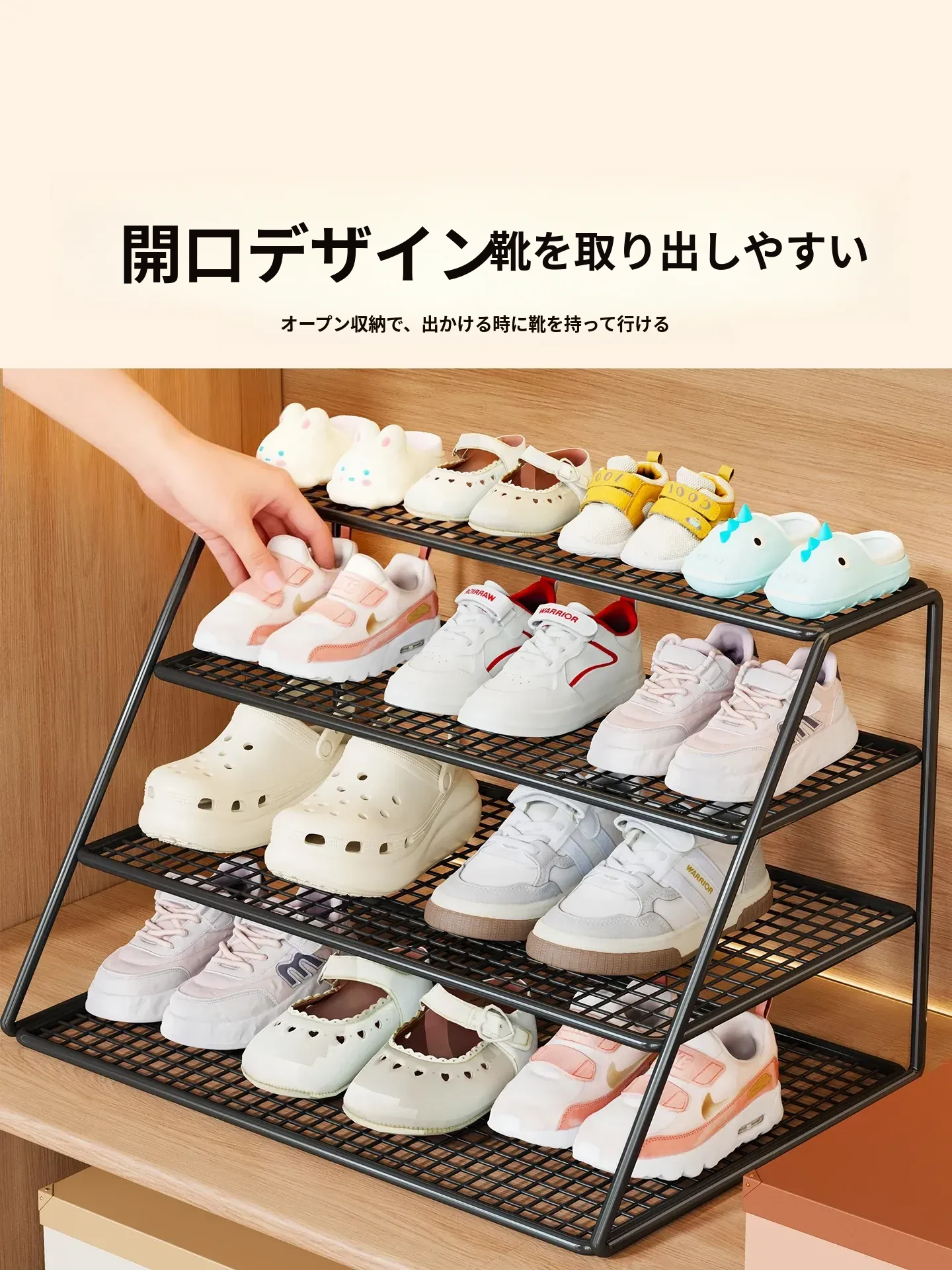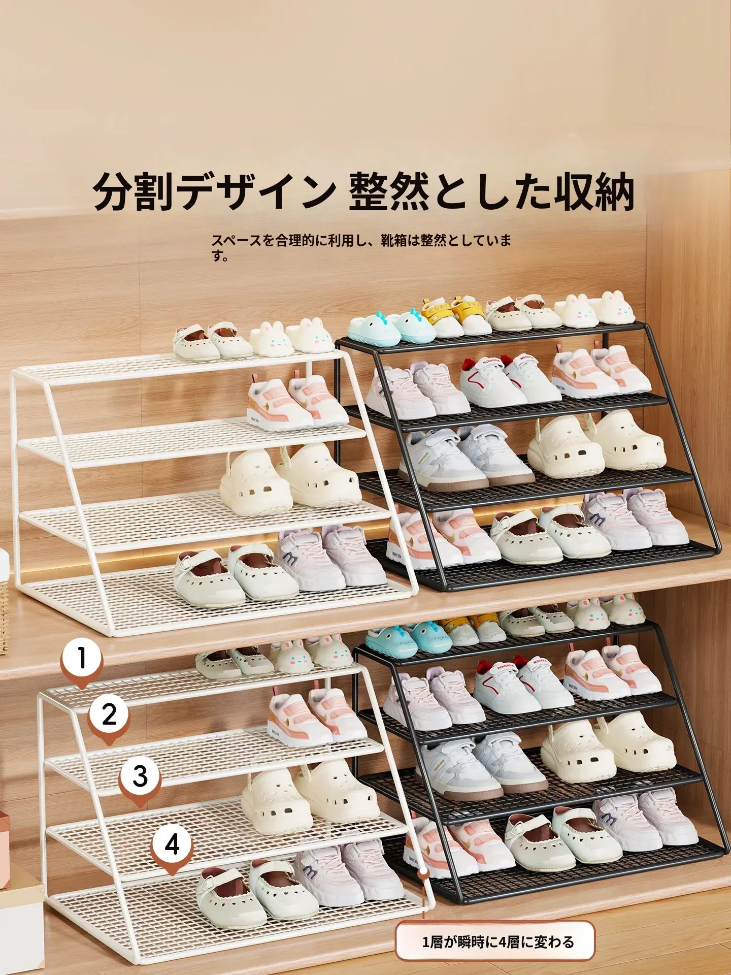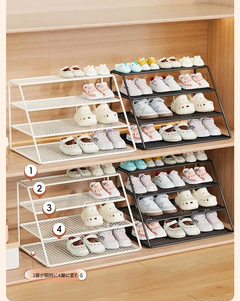 子供用シューズラック&クローゼット収納棚 - 多層設計で赤ちゃんの靴をすっきり整理!分けられた収納ボックスで使いやすく、シンプルな置物ラックでお部屋もスッキリ!