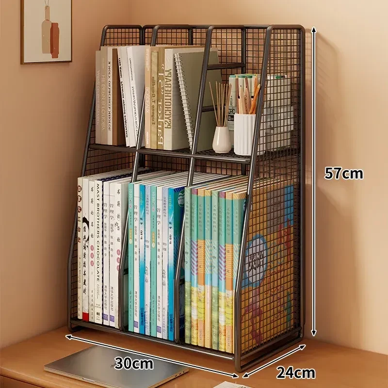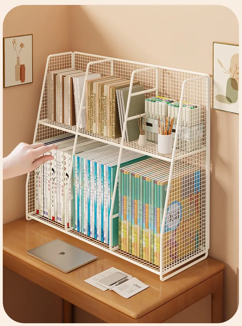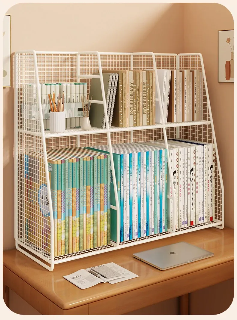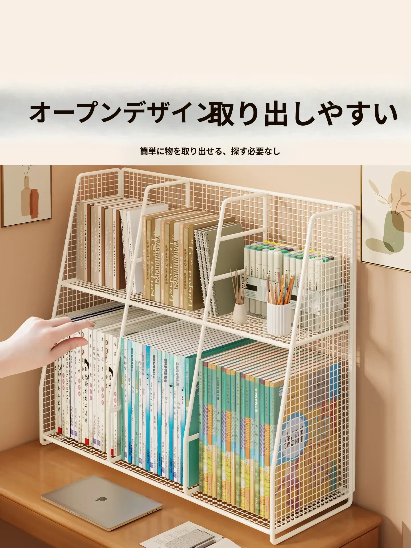 デスクトップ書棚 - 簡単組立!学生や子供に最適な多層収納ラック。オフィスやデスク上での整理整頓に最適、ファイルや本をスッキリ収納!