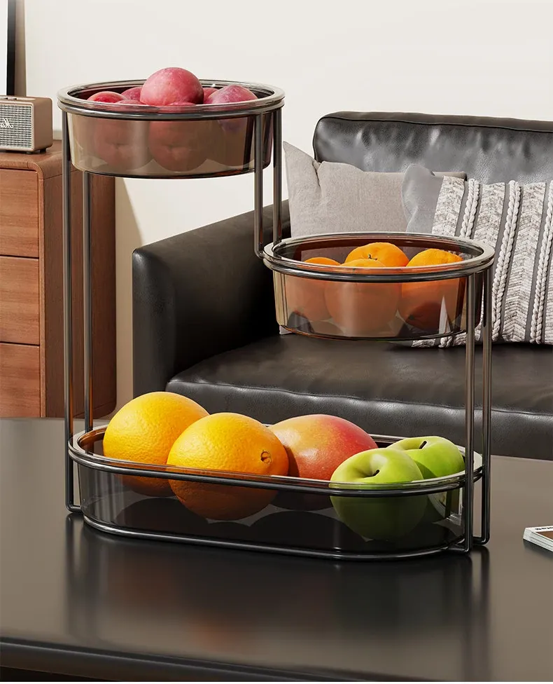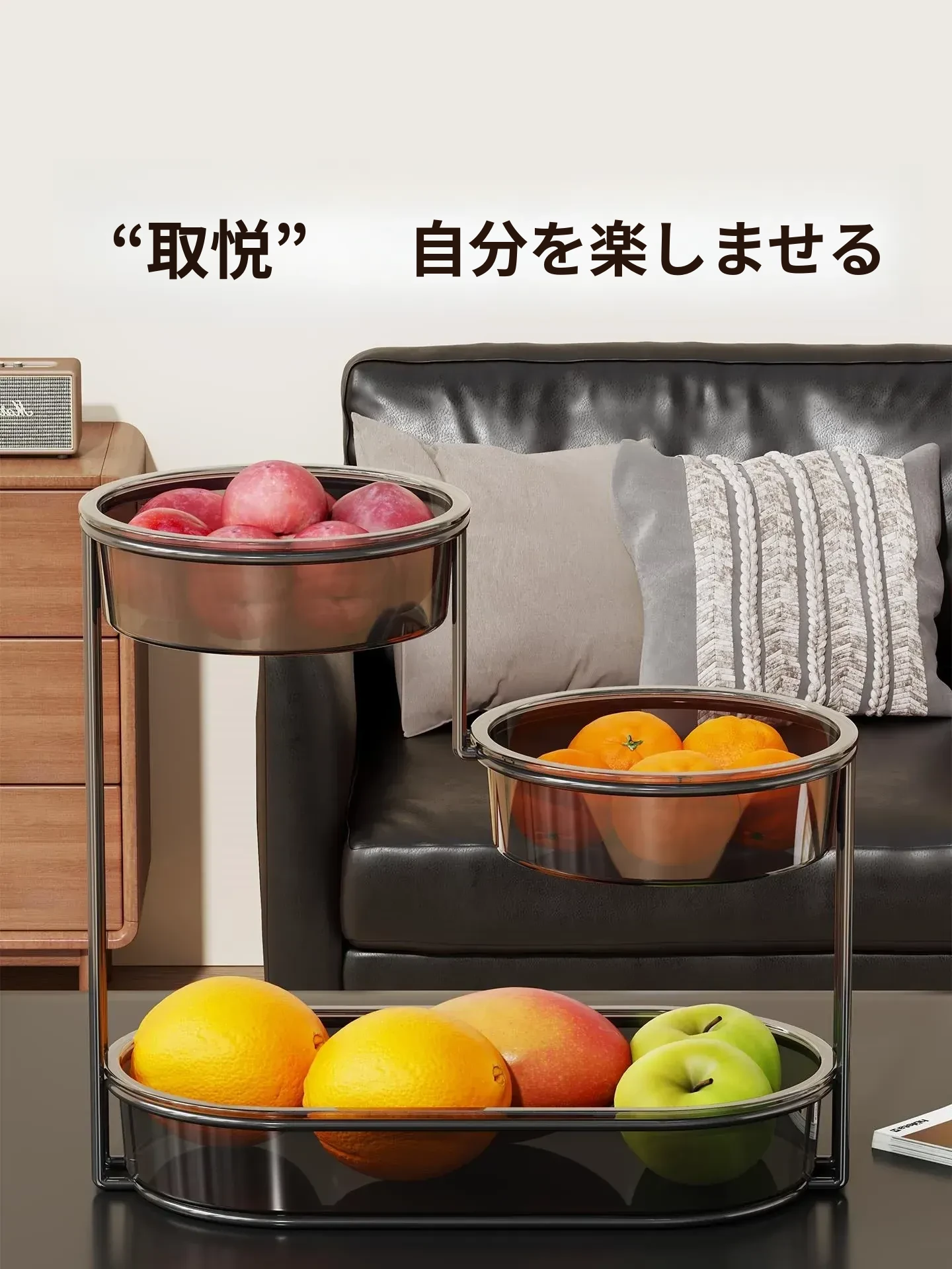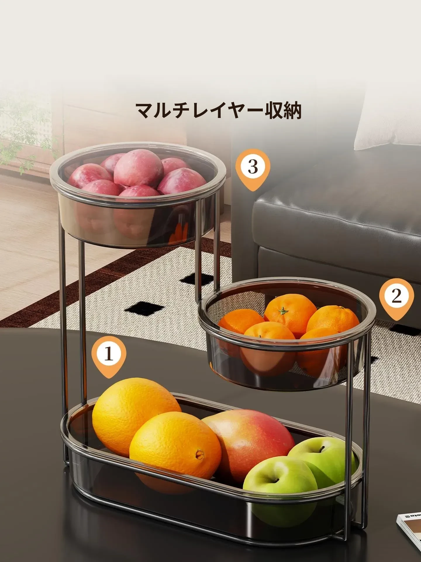 多層デスク用フルーツバスケット&野菜&パン収納ラック - シンプルでスタイリッシュなリビングに最適!お菓子や小物、化粧品の整理整頓にぴったりです。おしゃれな空間作りをサポートします!