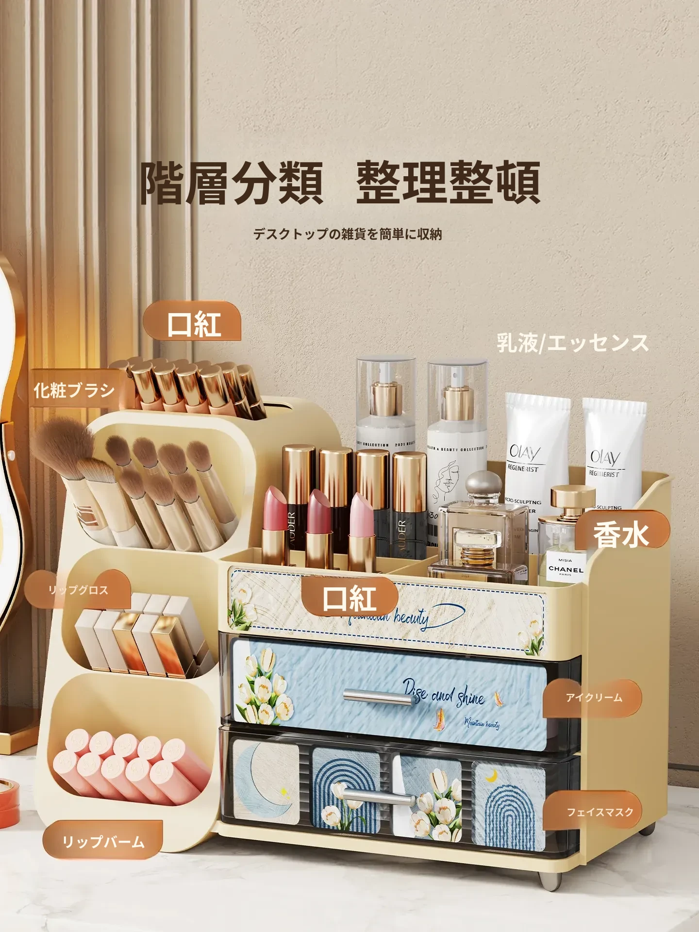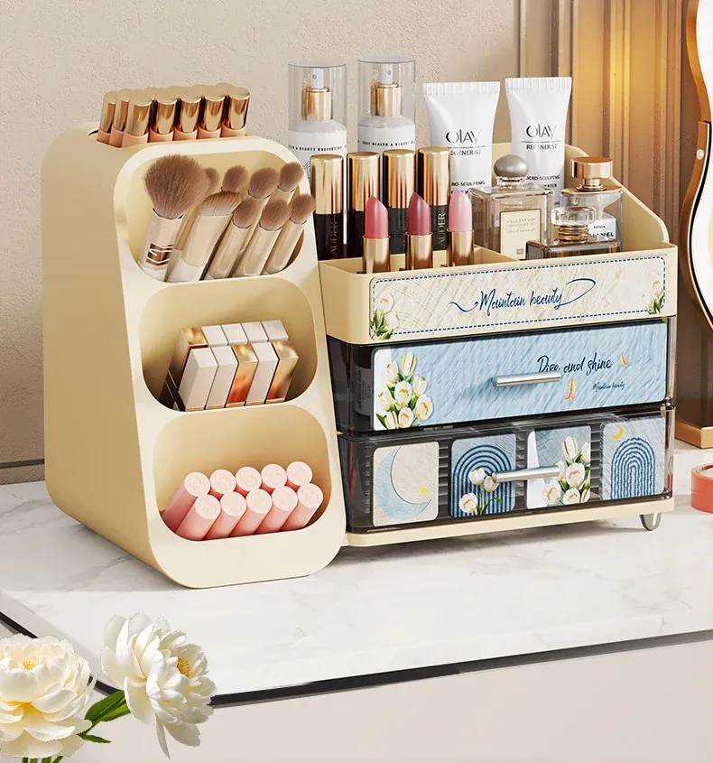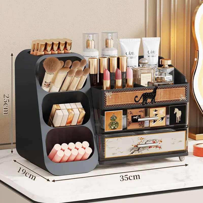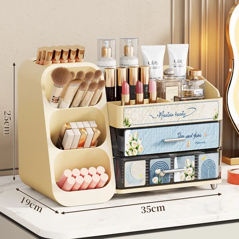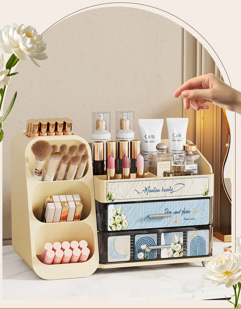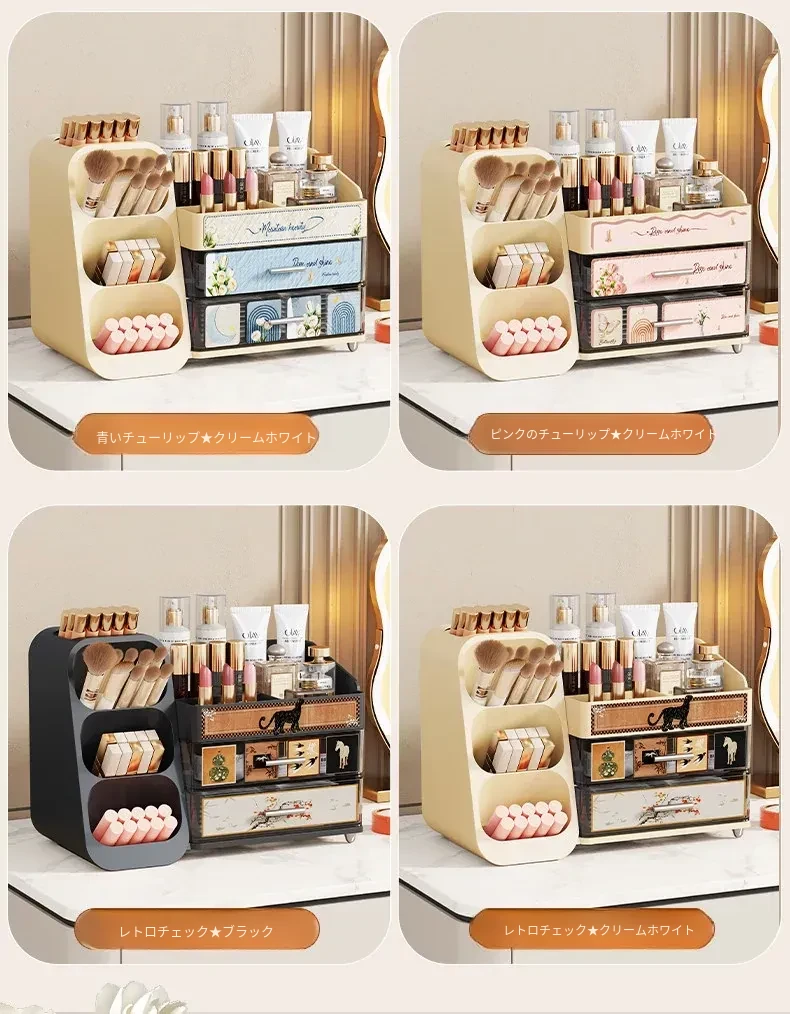 デスクトップ化粧品収納ボックス - 美しいドレッサーを演出!スキンケア製品や香水、口紅、メイクブラシを整然と収納できる多層収納キャビネット。あなたの美容アイテムをスタイリッシュに整理しましょう!