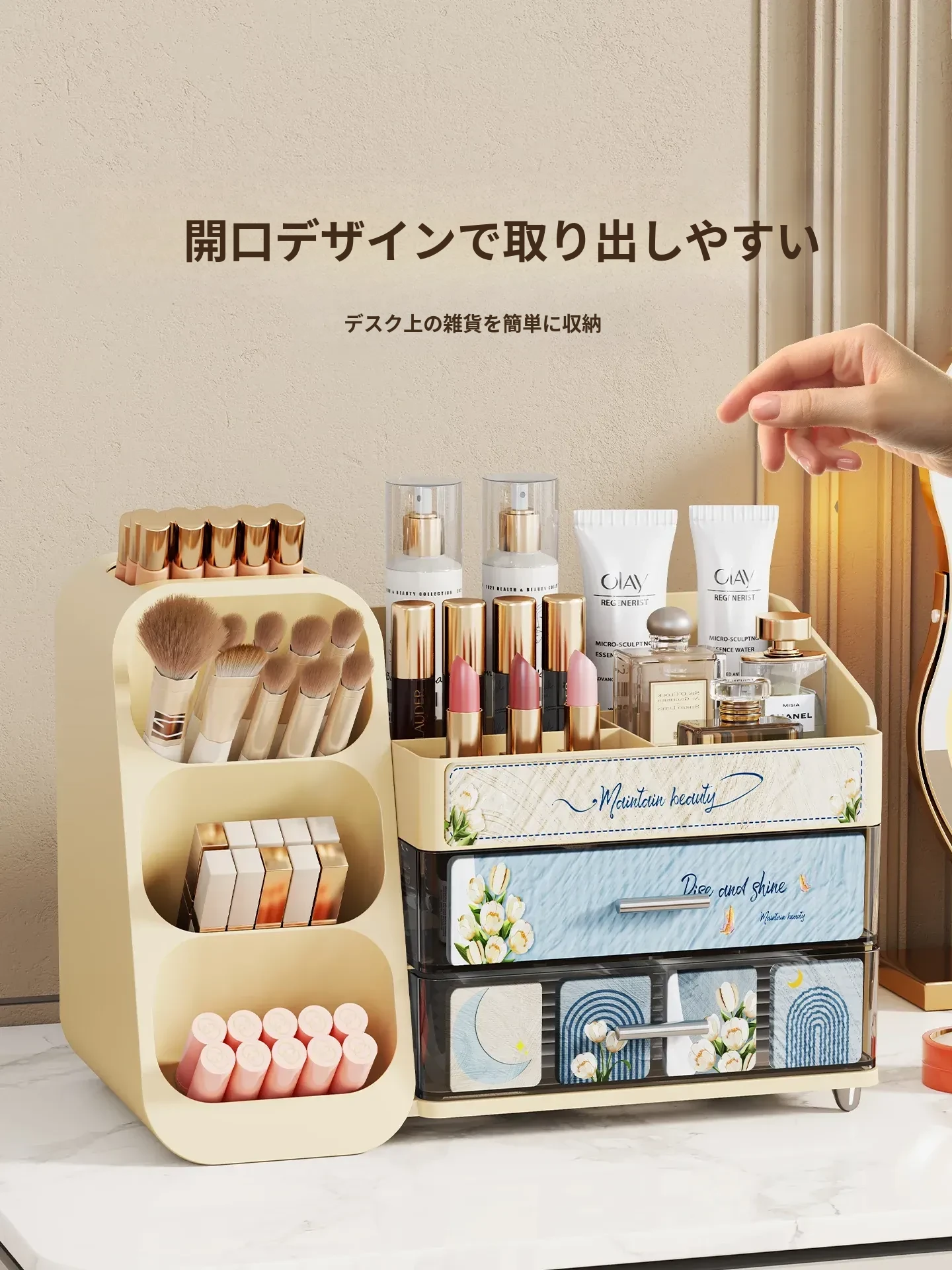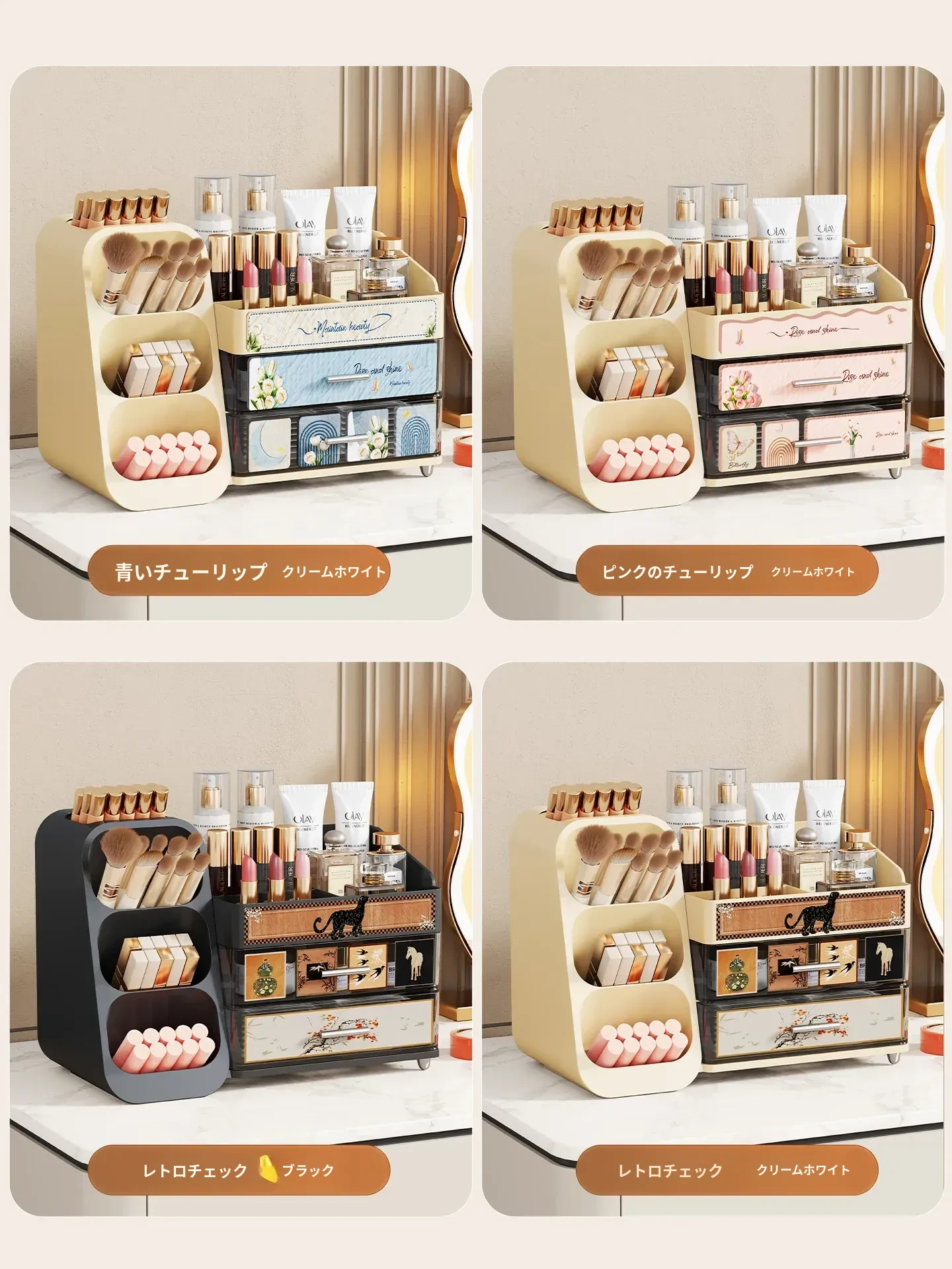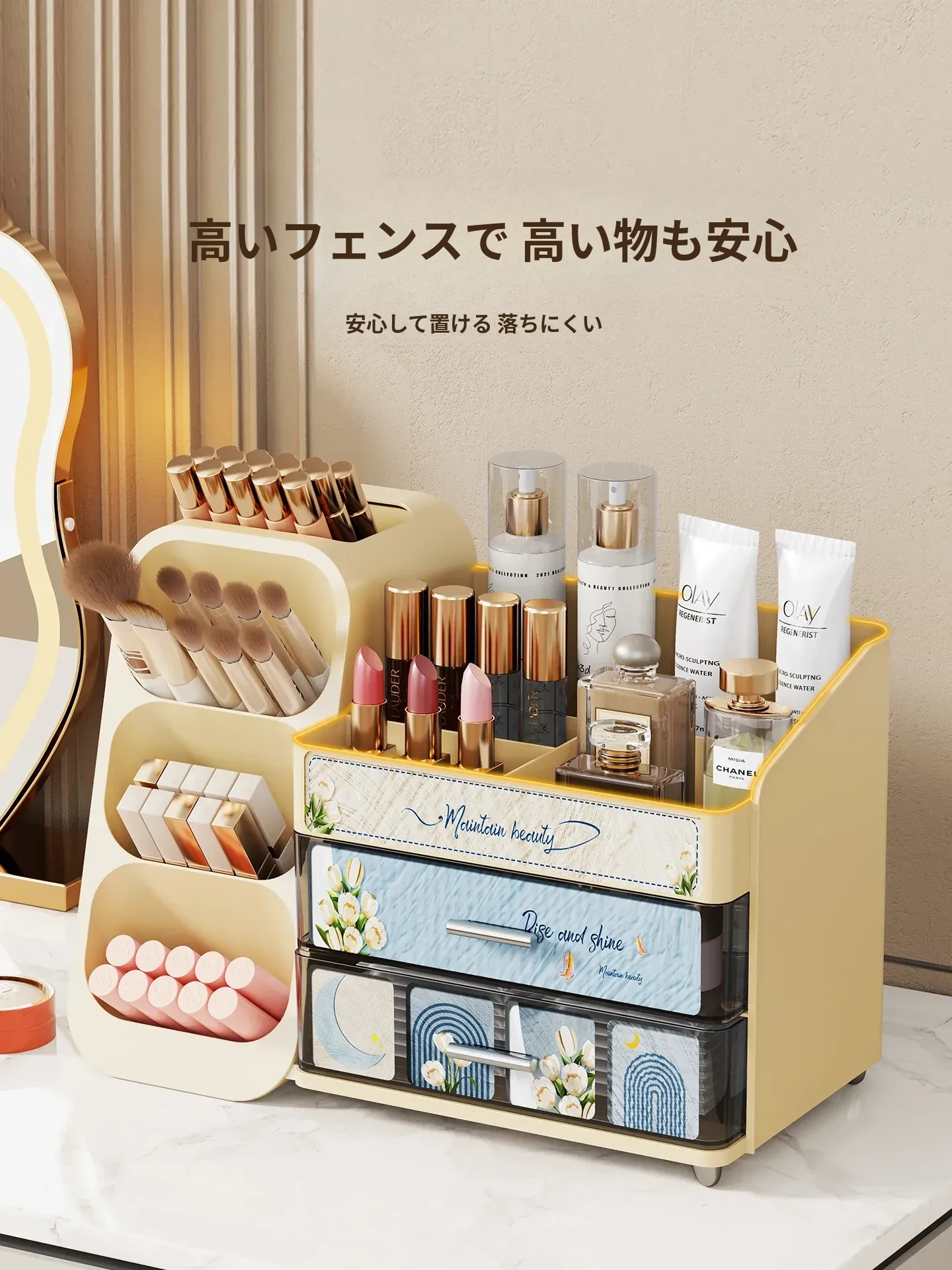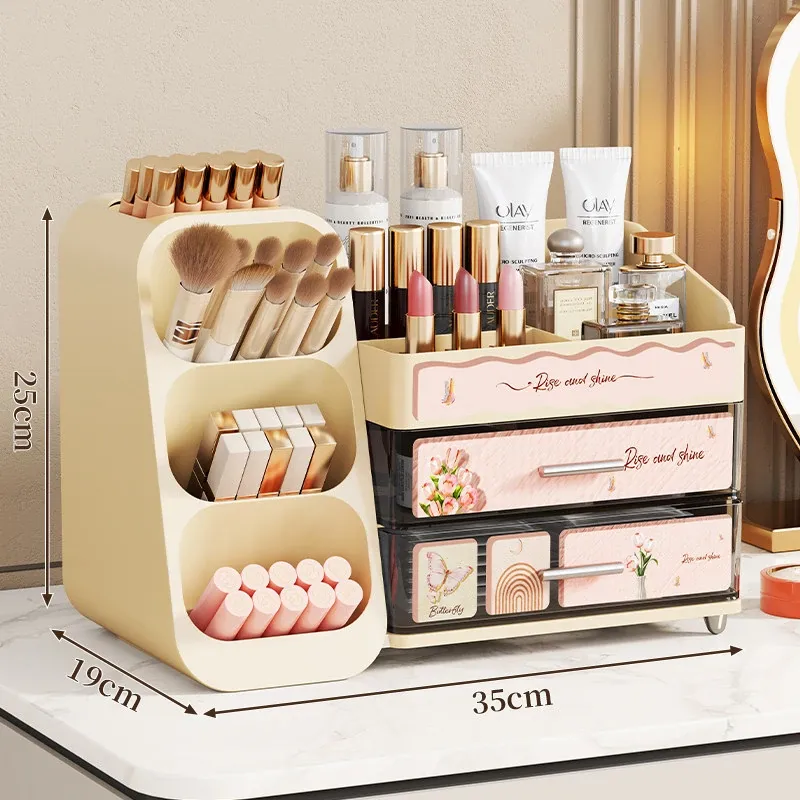 デスクトップ化粧品収納ボックス - 美しいドレッサーを演出!スキンケア製品や香水、口紅、メイクブラシを整然と収納できる多層収納キャビネット。あなたの美容アイテムをスタイリッシュに整理しましょう!