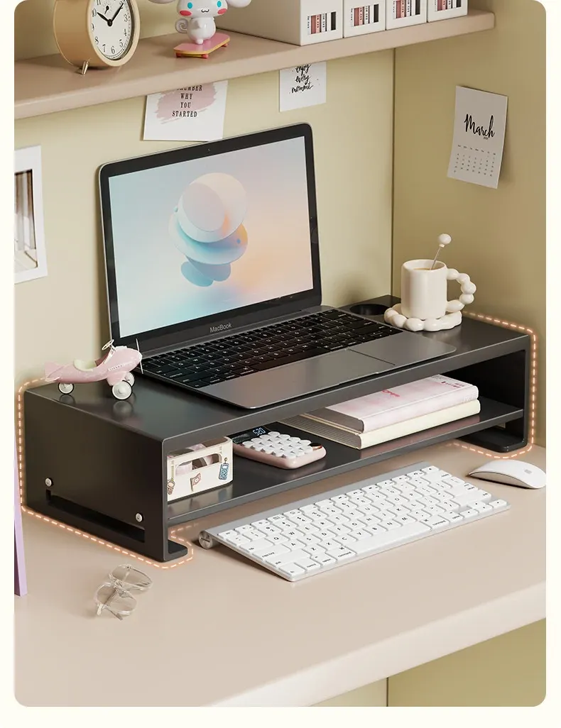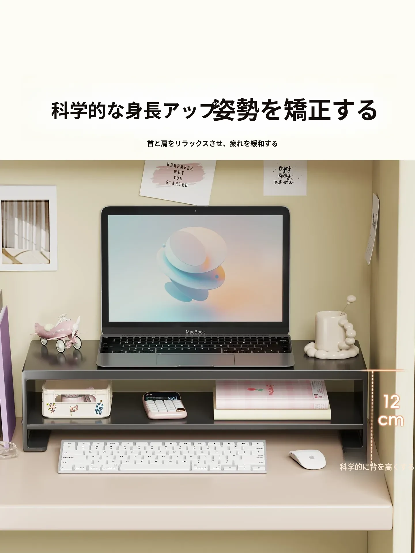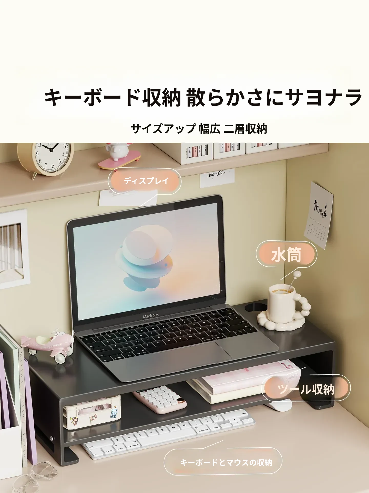 パソコン用昇降スタンド - デスクトップモニターやキーボードを整理整頓!多段階収納でノートパソコンを快適に持ち上げ、作業スペースを広げます。おしゃれで機能的なデザインで、あなたのデスクをスッキリさせましょう!