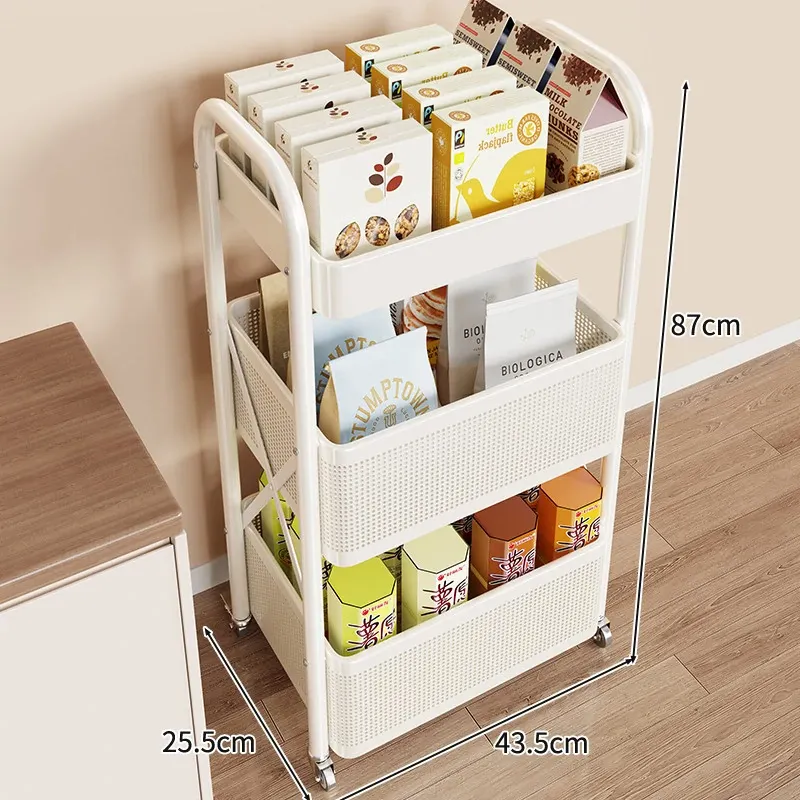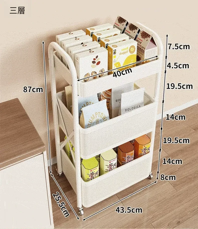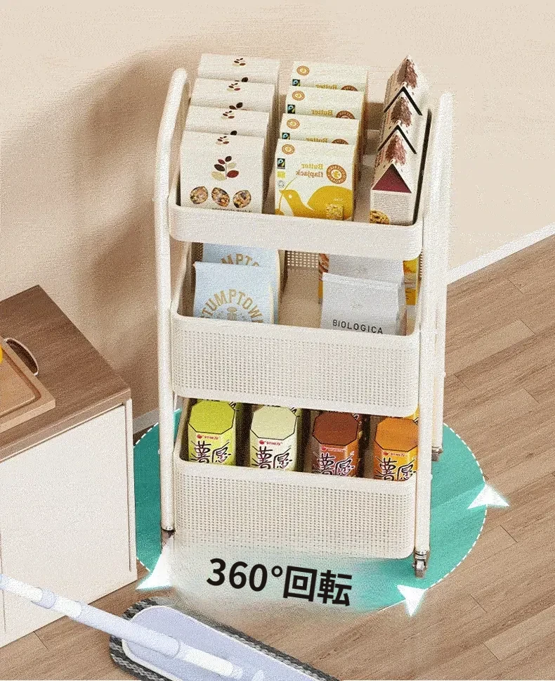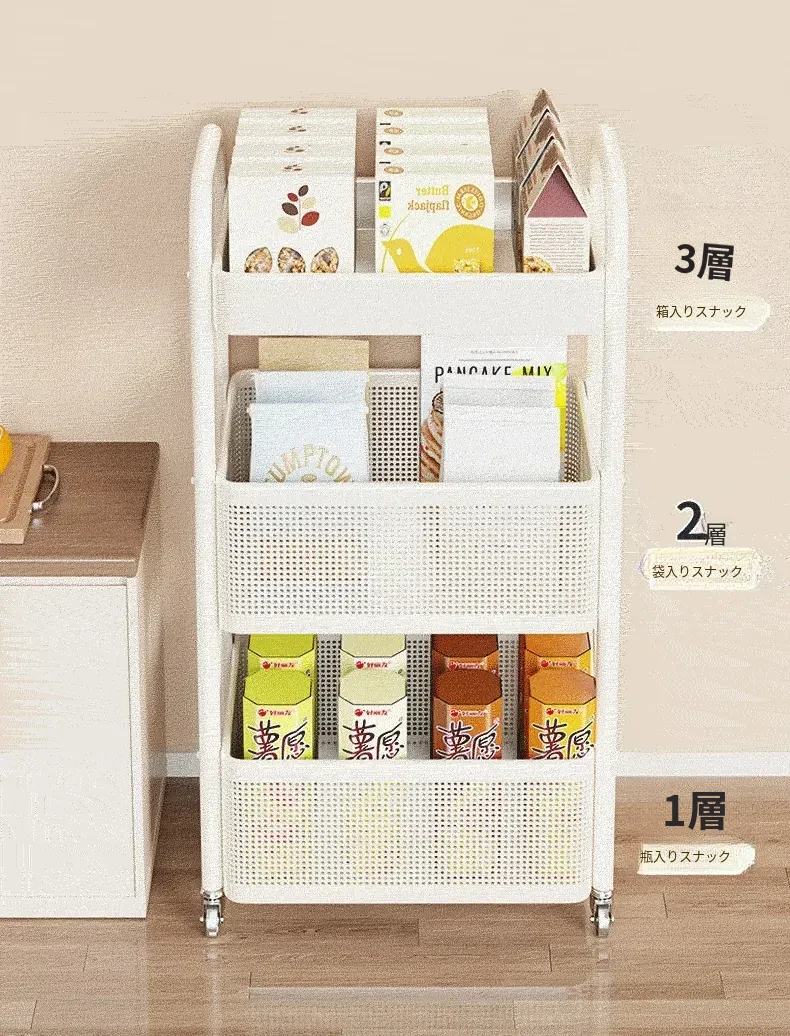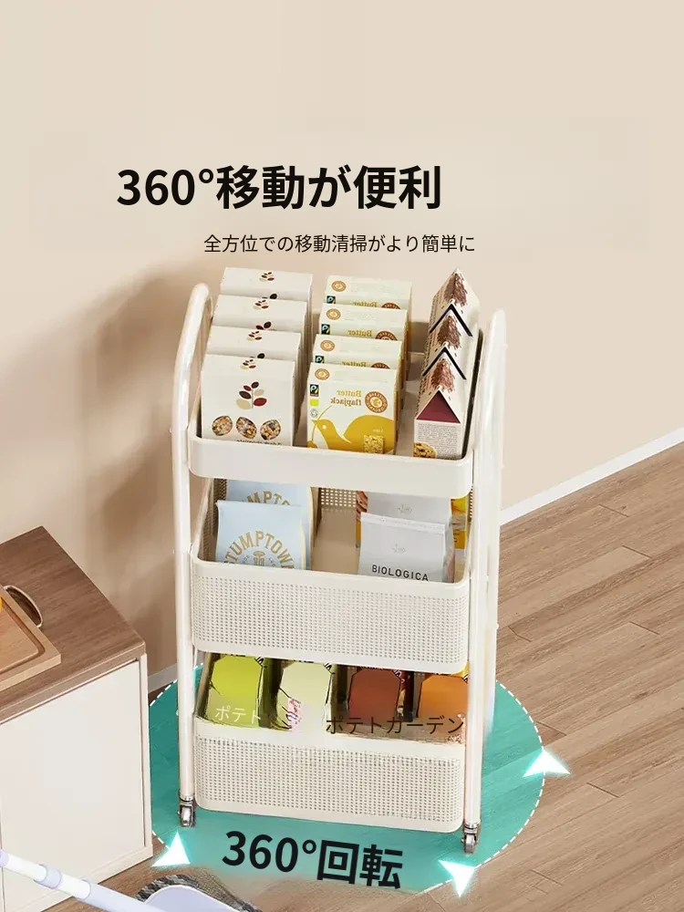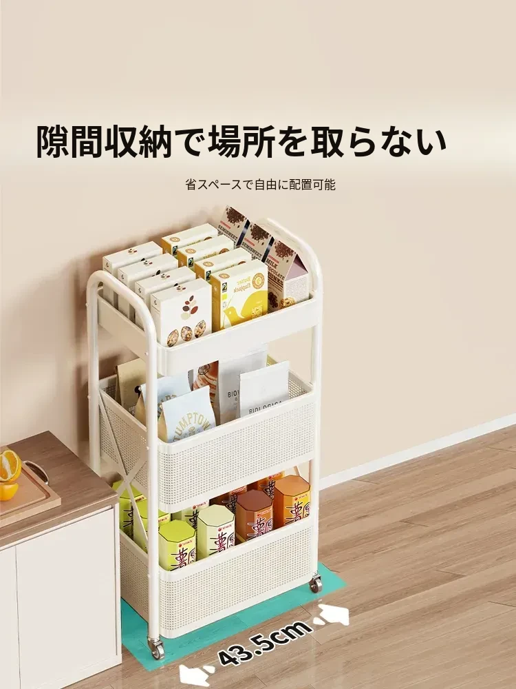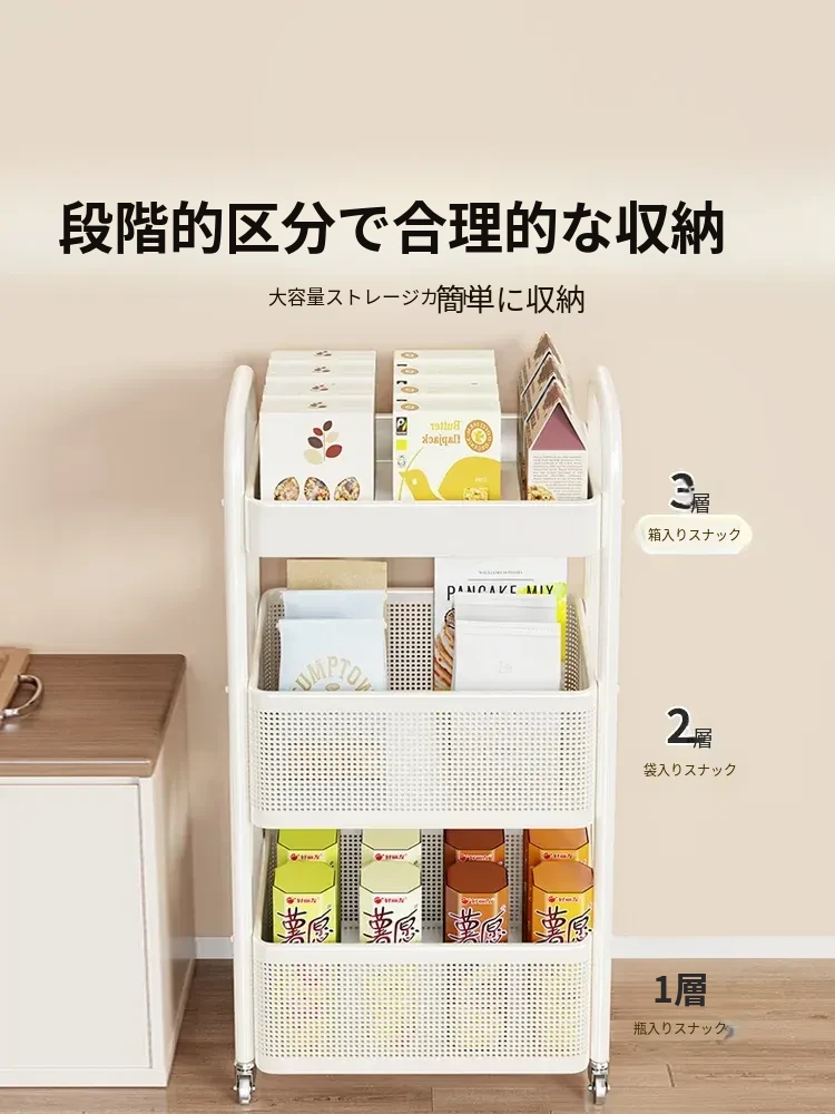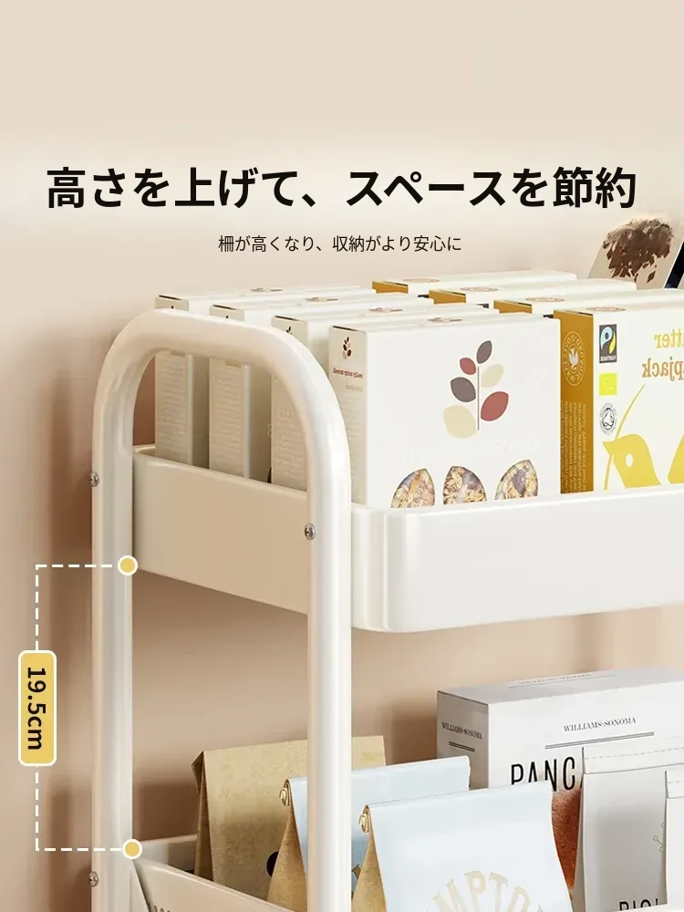 多機能小推車収納ラック - キッチンや寝室、バスルームにぴったり!スナックや日用品をスッキリ整理。移動も簡単で、スペースを有効活用!