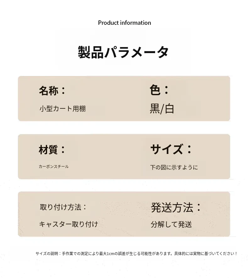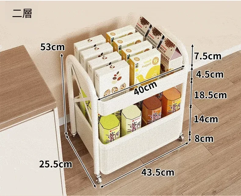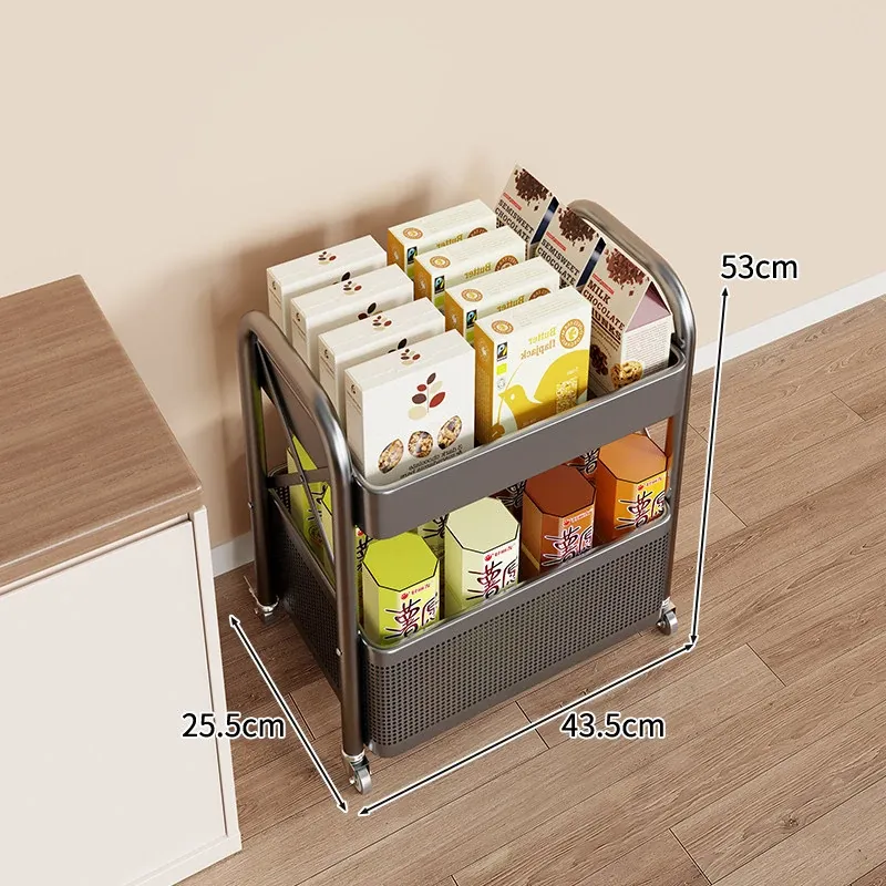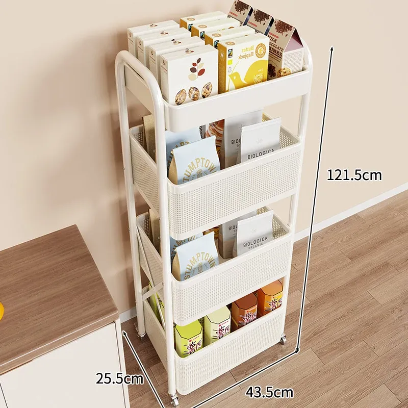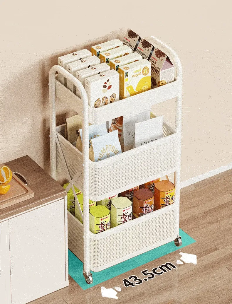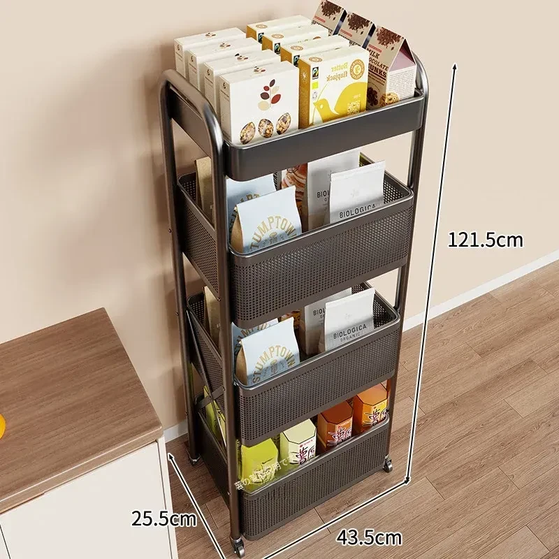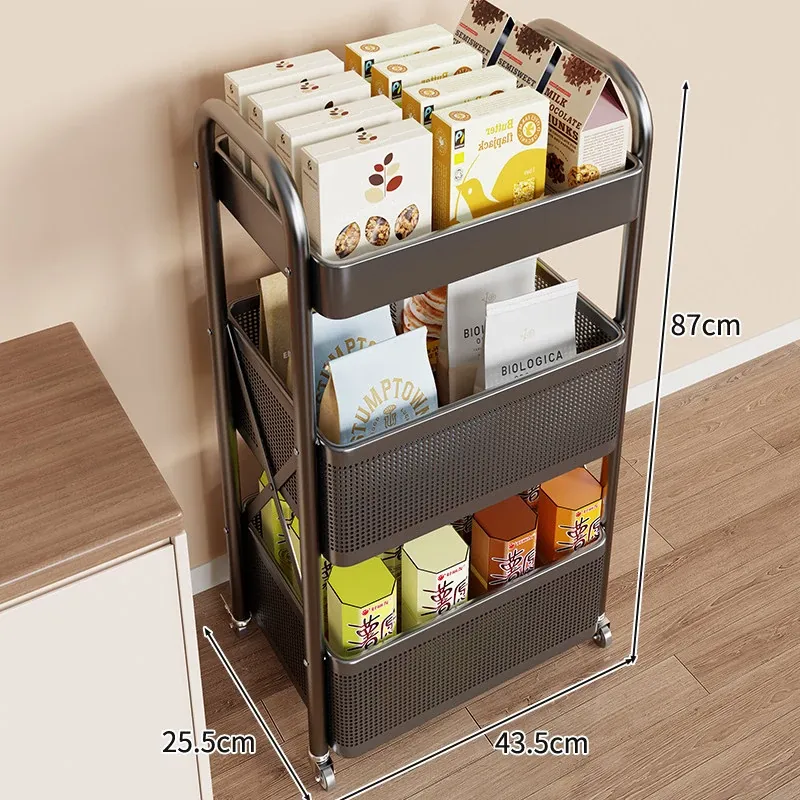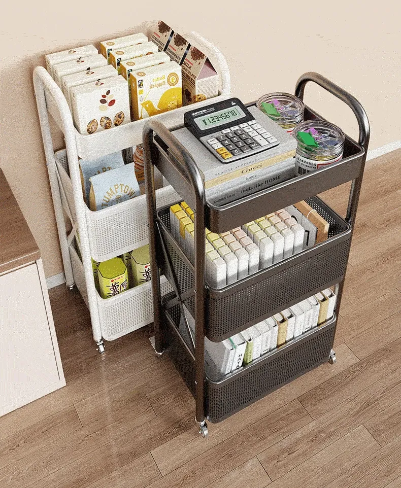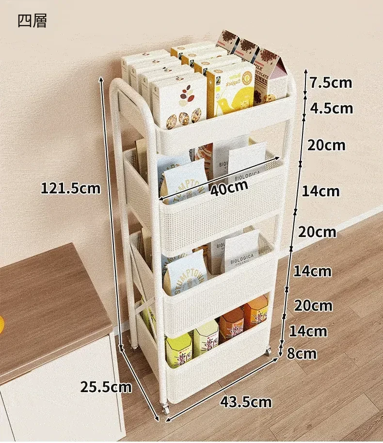 多機能小推車収納ラック - キッチンや寝室、バスルームにぴったり!スナックや日用品をスッキリ整理。移動も簡単で、スペースを有効活用!