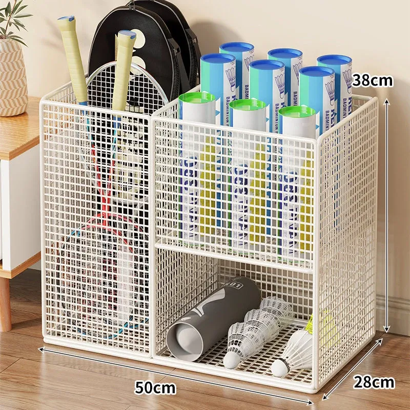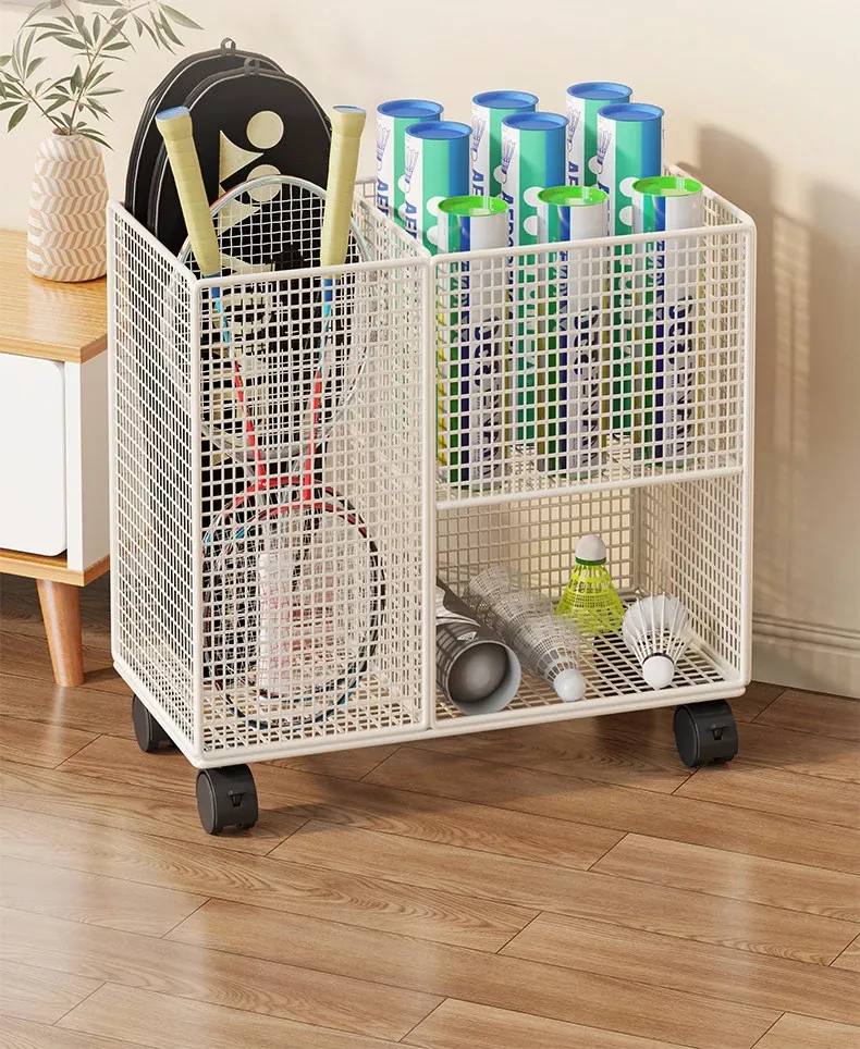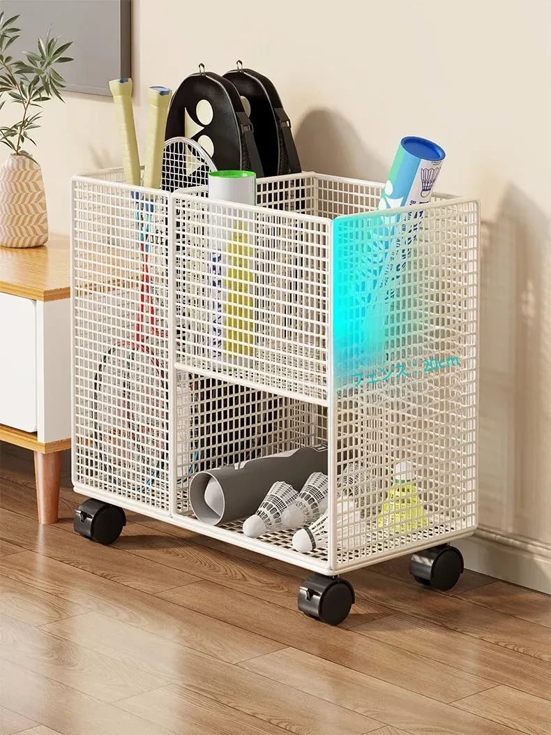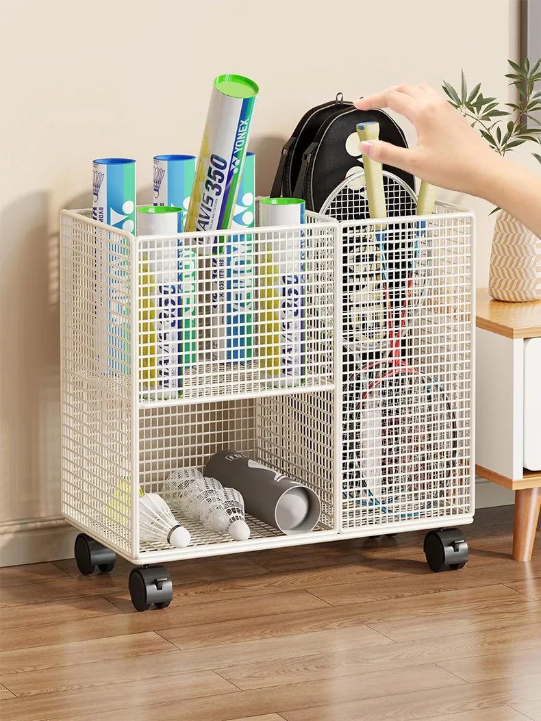 移動式バドミントンラケット収納ラック - 大容量ヨガマット収納バスケットで、フィットネス器具もスッキリ整理!快適な家でのトレーニングをサポートします!